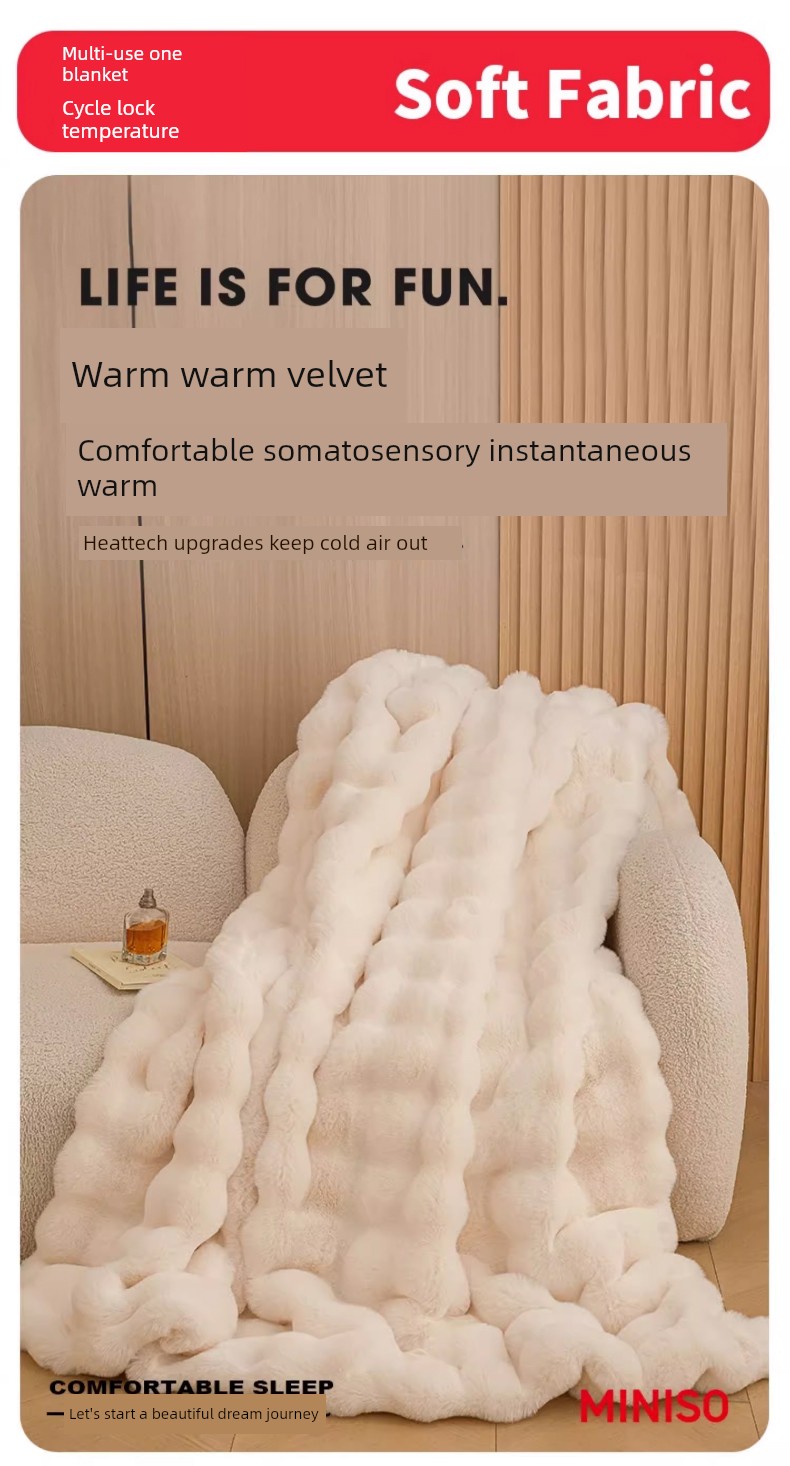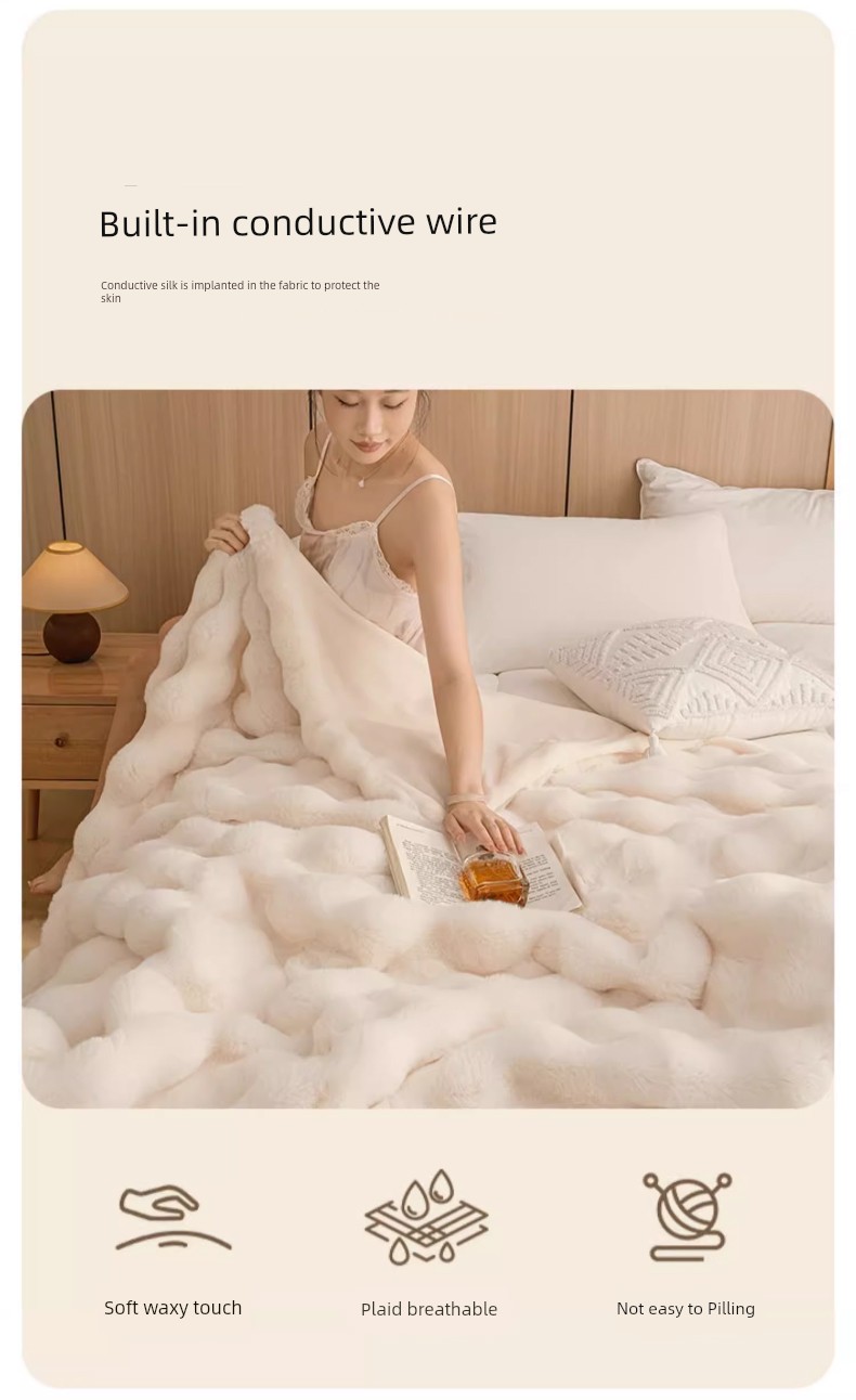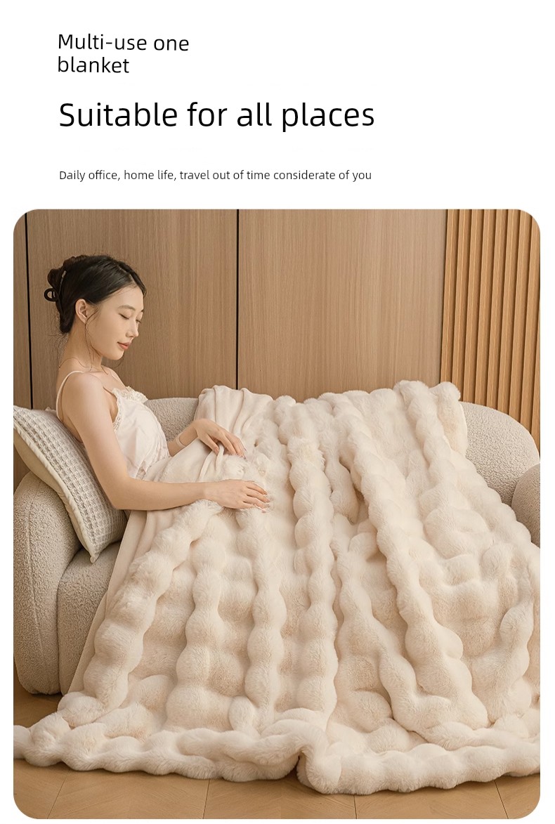 Wrap yourself in luxury with our Premium Cozy Rabbit Plush Heattech Blanket, the ultimate winter essential for warmth and style.Why you'll love it:- Ultrasoft rabbit plush fabric for indulgent coziness.- Advanced Thermal Heattech technology for lasting warmth.- Thick and warm, perfect for napping or cuddling.- Elegant velvet finish elevates home decor.- Generously sized for maximum coverage in any setting.This premium blanket is crafted from high-quality plush material with innovative Heattech technology, ensuring the best in both warmth and style. Its luxurious velvet finish adds a chic touch to your bedroom or living area, effortlessly complementing any decor.Simply drape it over your bed or sofa for an instant upgrade in warmth and luxury. Perfect for snuggling while reading, watching TV, or enjoying a cozy nap. Don't miss this exclusive limited-time offer to indulge in unparalleled comfort today!
