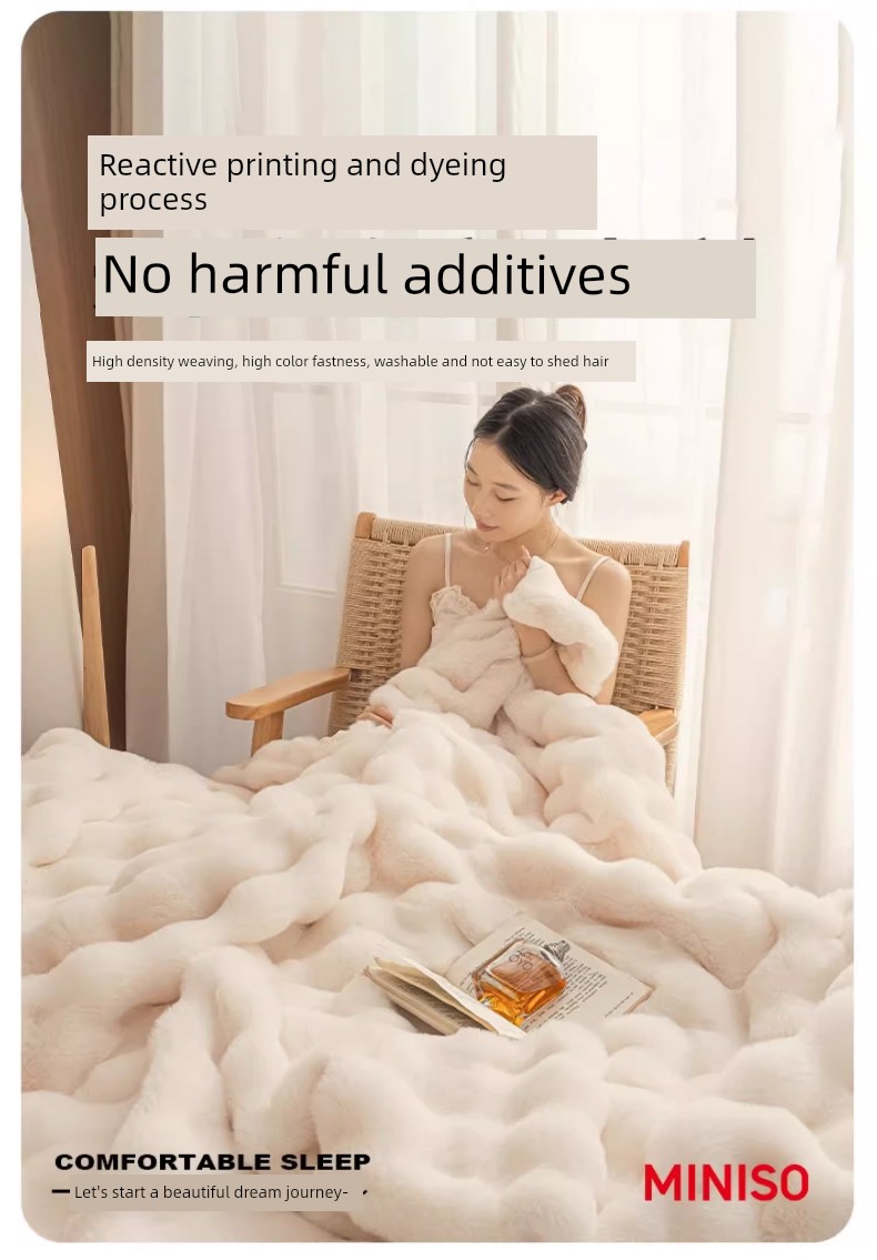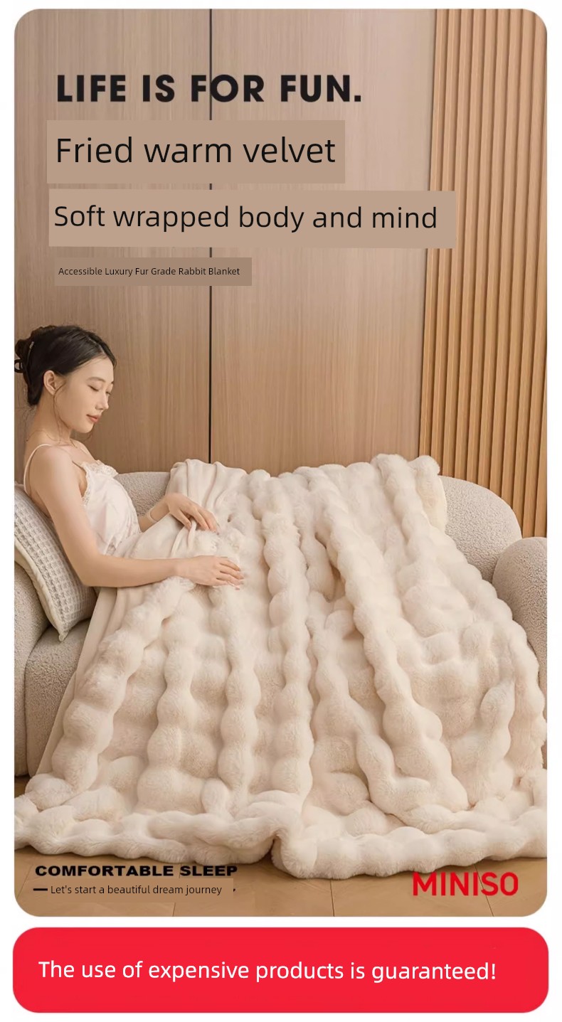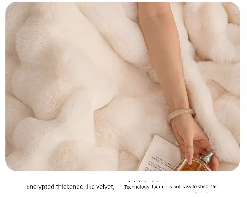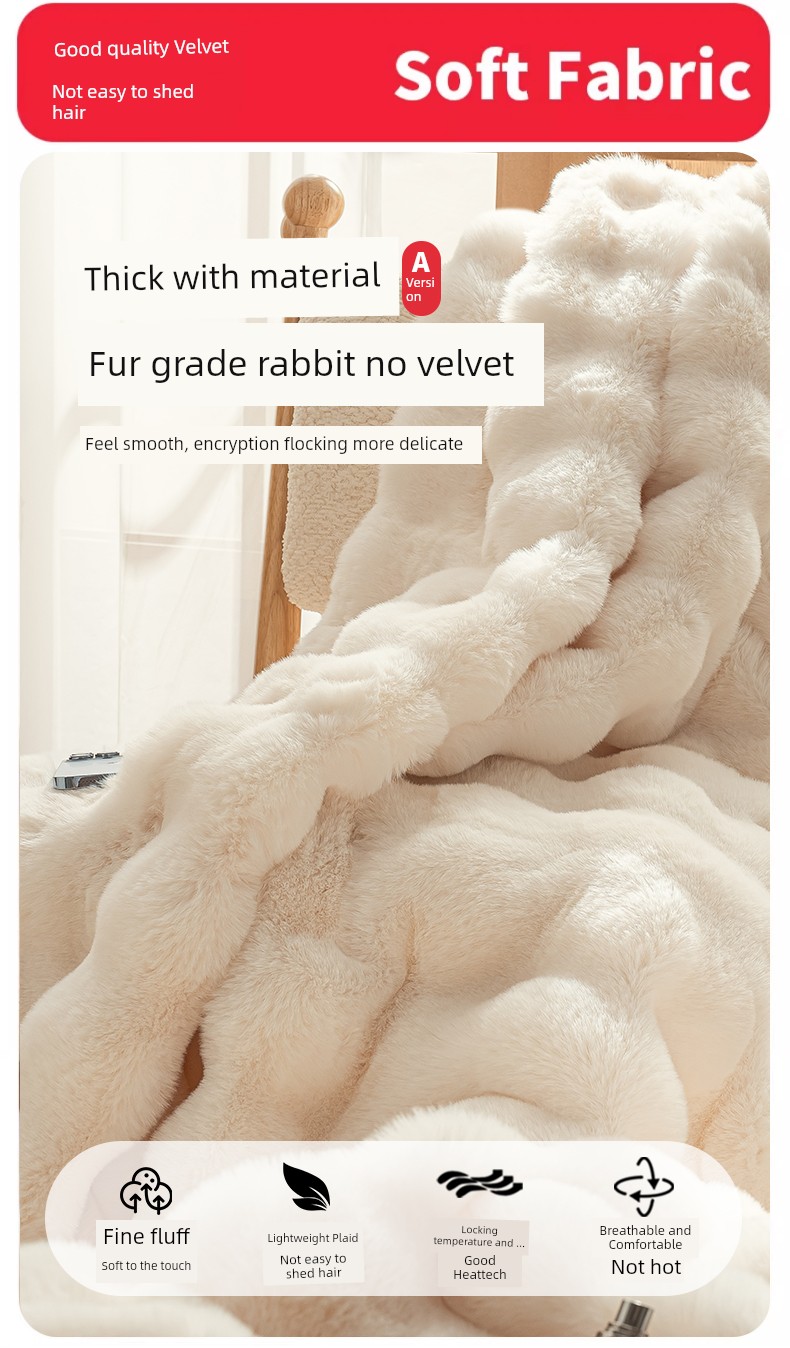 Wrap yourself in luxury with our Premium Cozy Rabbit Plush Heattech Blanket, the ultimate winter essential for warmth and style.Why you'll love it:- Ultrasoft rabbit plush fabric for indulgent coziness.- Advanced Thermal Heattech technology for lasting warmth.- Thick and warm, perfect for napping or cuddling.- Elegant velvet finish elevates home decor.- Generously sized for maximum coverage in any setting.This premium blanket is crafted from high-quality plush material with innovative Heattech technology, ensuring the best in both warmth and style. Its luxurious velvet finish adds a chic touch to your bedroom or living area, effortlessly complementing any decor.Simply drape it over your bed or sofa for an instant upgrade in warmth and luxury. Perfect for snuggling while reading, watching TV, or enjoying a cozy nap. Don't miss this exclusive limited-time offer to indulge in unparalleled comfort today!