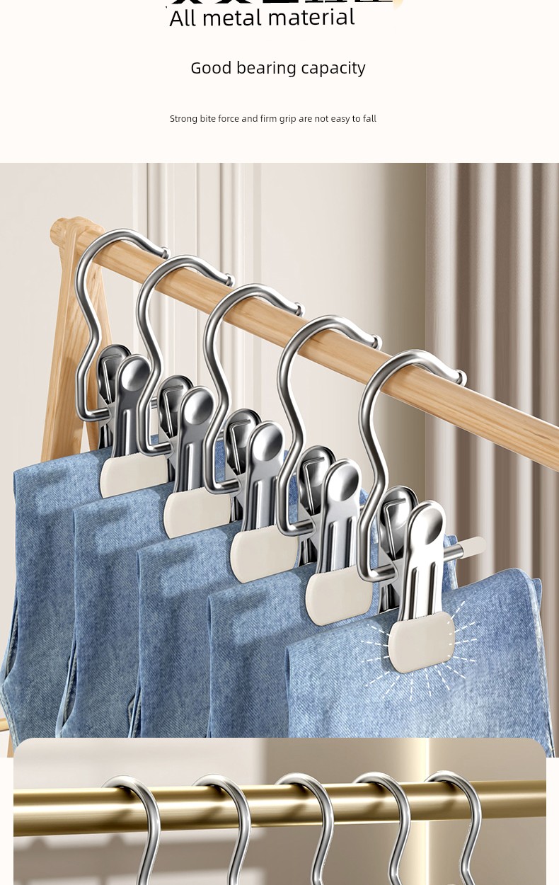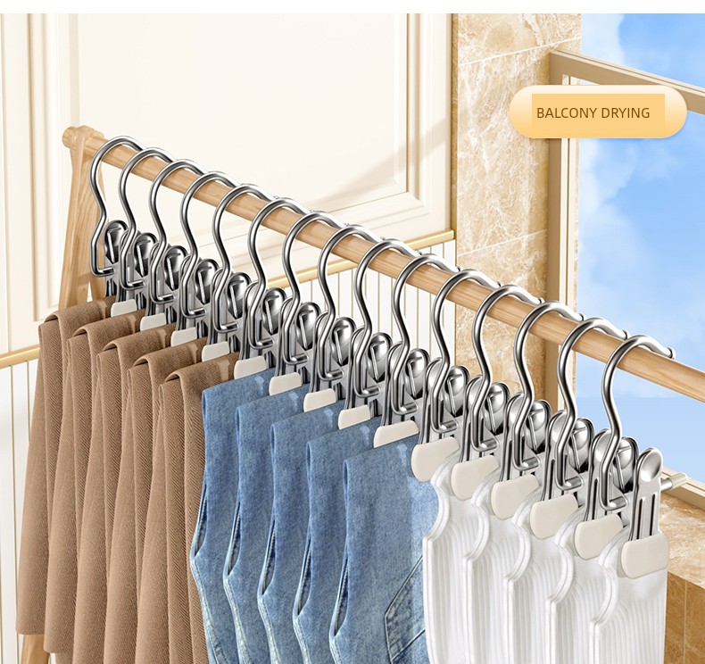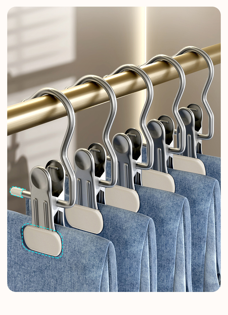 Organize with style using our Premium Multifunctional Stainless Steel Pants Clip! This exclusive clip not only keeps your clothes neatly hung but also adds a touch of elegance to your wardrobe. Why you'll love it: - Made from durable stainless steel for long-lasting use. - Versatile design functions as a clothes pin or hanger. - Invisible look keeps your garments secure without the bulk. - Perfect for all types of clothing, from pants to delicate fabrics. - Lightweight and portable, ideal for on-the-go organization. Crafted with premium stainless steel, this multifunctional hook clip ensures your clothes are well-kept and wrinkle-free. Its innovative design allows you to hang a variety of clothing items securely, making it a must-have accessory for every fashion enthusiast. Simply attach the clip to your pants or clothes, and hang it up or clip it on any surface. Perfect for travel, everyday use, or even as a gift for someone special! Get your exclusive pants clip today and elevate your organization game!