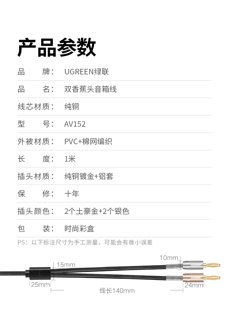 Experience exceptional sound quality with our Premium Pure Copper Speaker Cable equipped with HiFi Banana Plugs for seamless connectivity. Why you'll love it: - High-quality pure copper ensures optimal audio performance. - Easy-to-use welding-free connections for quick setup. - Compatible with a variety of audio systems for versatile use. - Ideal for audiophiles seeking the best sound experience. - Durable design built to last and maintain performance. This top-tier speaker cable is designed to provide you with the ultimate audio experience, featuring premium pure copper wiring and convenient banana plug terminals. The welding-free design simplifies the installation process, making it a perfect fit for any setup. Simply connect the banana plugs to your speakers and audio source for instant high-fidelity sound. Enjoy a richer, more immersive listening experience today with this exclusive offer!