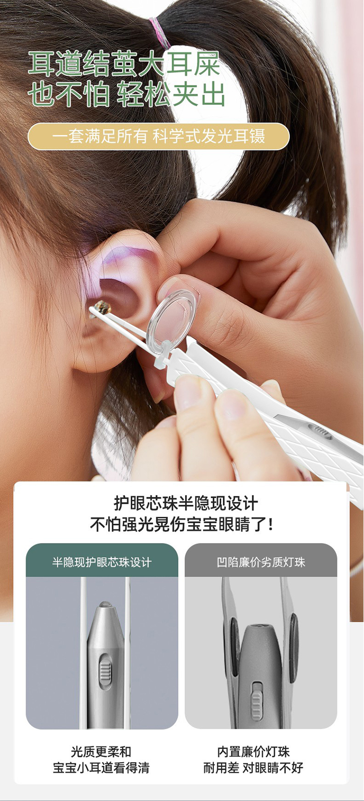 Qianyu 2 Pieces Tweezers with Lights Safety Luminous Earpick