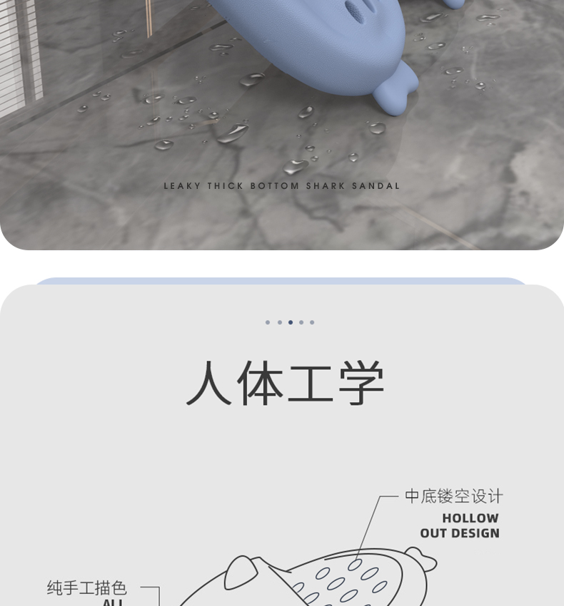 Imagine stepping out of the pool on a warm summer day, the sun glistening off the surface of the water, and your feet feeling weightless in the air. Introducing the Quick-Dry Shark Hollow Slippers – footwear designed for the adventurous spirit who loves both comfort and fun. No more damp, squishy sandals holding you back; it’s time to embrace freedom with every step you take.These slippers weren’t just created for style; they were born out of necessity. Born from the frustration of soaking wet shoes after a leisurely day at the beach or at the pool, the Shark Slippers offer a revolutionary solution. With their thick soles and innovative hollow design, they were meticulously crafted to provide optimum drainage while maintaining a lightweight feel. Get ready to dive into an experience that’s all about convenience and ease.The Quick-Dry feature means you’ll never have to deal with soggy footwear again. Imagine walking from the sand to the boardwalk, feeling the gentle breeze on your toes, while water effortlessly drains away. Pair that with the stylish shark design and thick cushioning that provides support with every step, and you've got footwear that transforms your day into a joyful experience.How does it feel to wear these slippers, you ask? Close your eyes and picture this: the soft cushioning beneath your feet, providing support as you stroll along the shoreline; the laughter of friends echoing in the background as you dash from the waves back to your beach towel. These slippers are more than just protective wear; they create moments of enjoyment, making every outing a memory worth cherishing.And don’t just take our word for it. Customers can’t get enough of their Shark Slippers: \