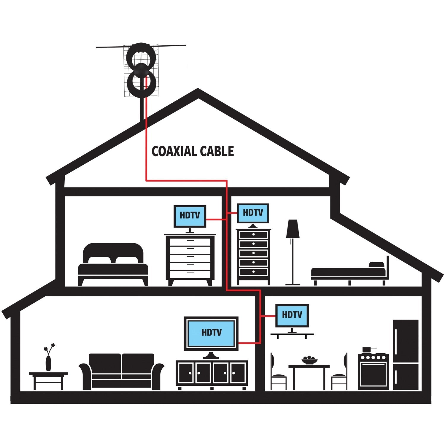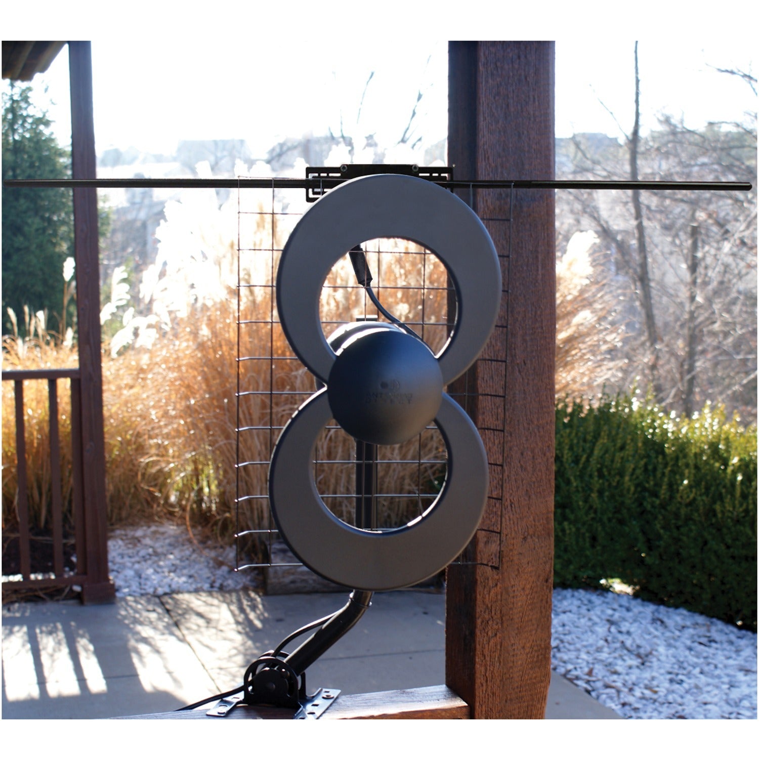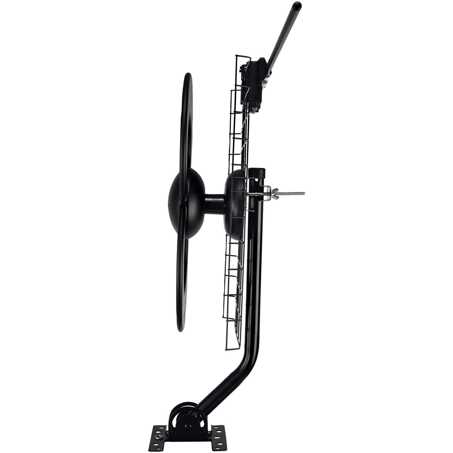 • Range: 50+ miles ;• Receives crystal-clear UHF/VHF HDTV signals ;• Unique integrated diplexer combines UHF & VHF signals;• Tabletop option for indoor use;• Includes 20" J-mount & roof sealant strips ;• Does not include coaxial cable;• Dim: 20"H x 35.5"W x 6.5"D;• Lifetime warranty;