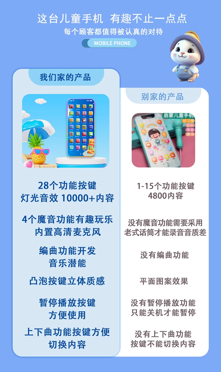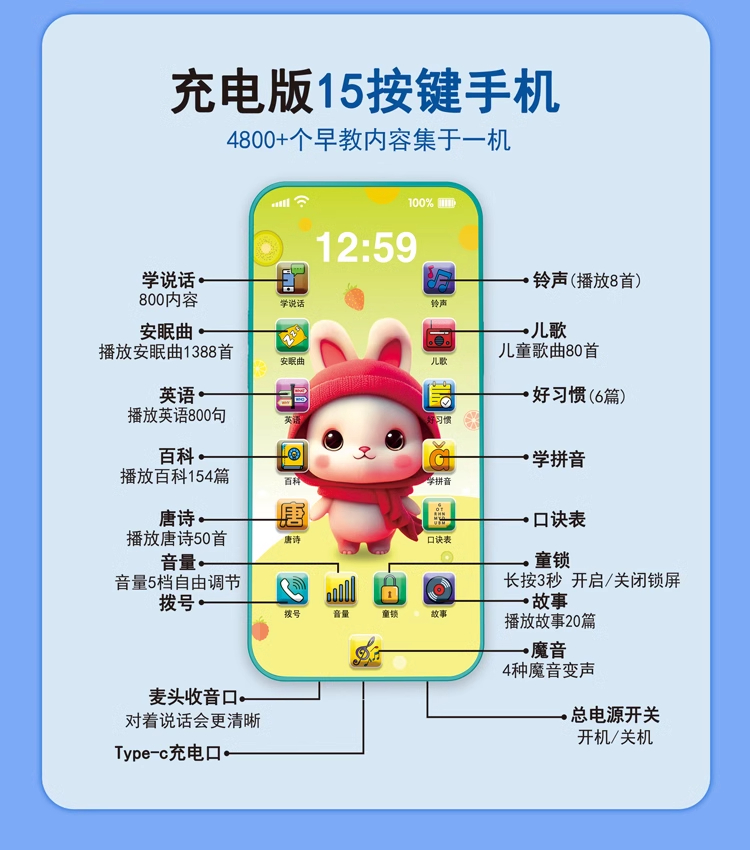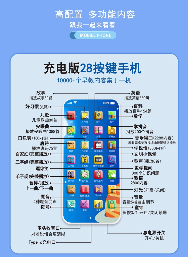 Ignite your child's imagination with our Rechargeable Kids Mobile Phone Educational Toy, designed for early childhood development!    Why you'll love it:        - Realistic mobile phone design for imaginative play.        - Rechargeable feature for endless fun on the go.        - Safe, biteable material perfect for curious toddlers.        - Great educational tool to enhance learning through play.        - Ideal for both boys and girls, stimulating interest in technology.    Crafted with premium materials, this mobile phone model mimics real devices, ensuring a fun yet safe experience for your little ones. Its rechargeable function means they can enjoy hours of uninterrupted play.    Let your child explore and learn by simply turning on the phone and encouraging imaginative scenarios. Perfect for play dates, at home, or during travel! Don't miss this opportunity to provide your child with an exclusive educational tool – order now for a limited time offer!