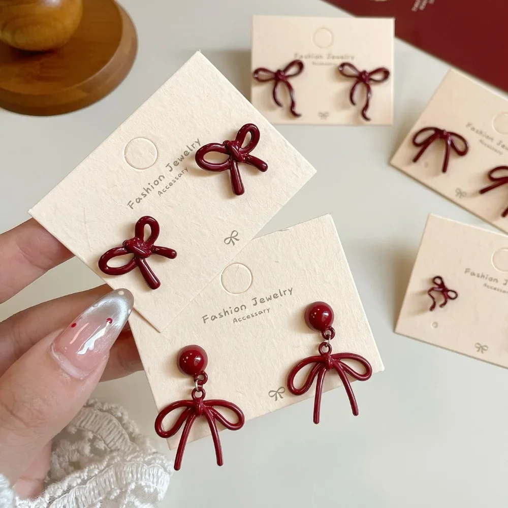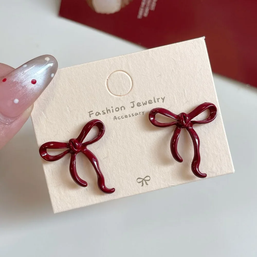 Retro Style Red Bowknot Stud Earrings for Women Girls Simple Earings Piercing Ballet Ribbon Aesthetics Elegant Ear Jewelry Gifts