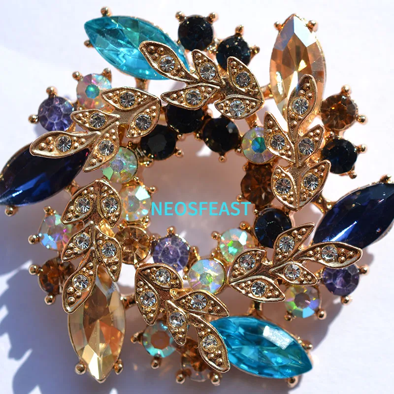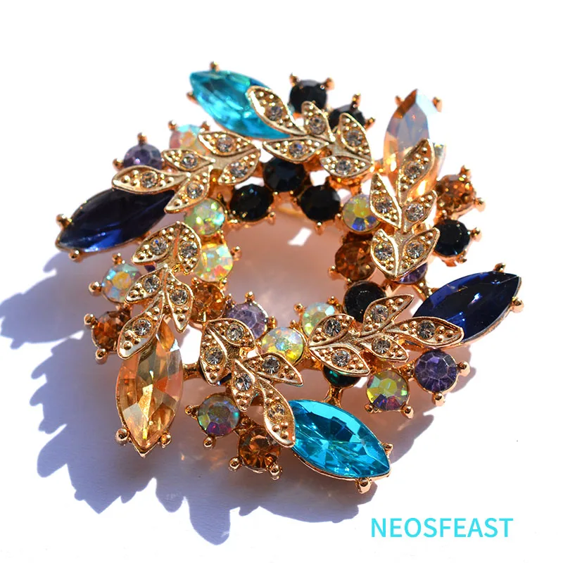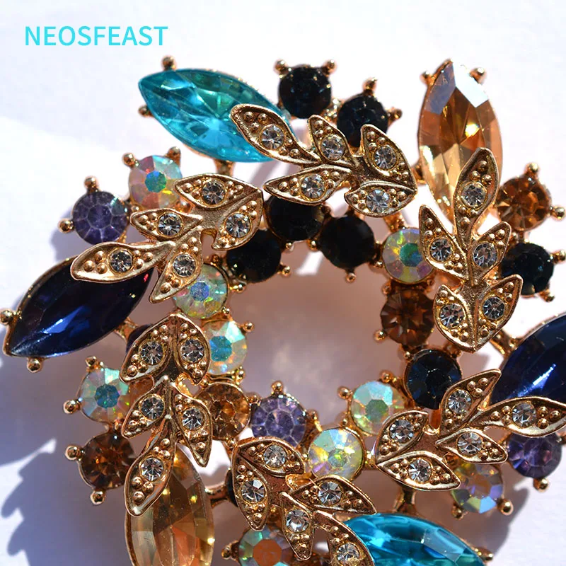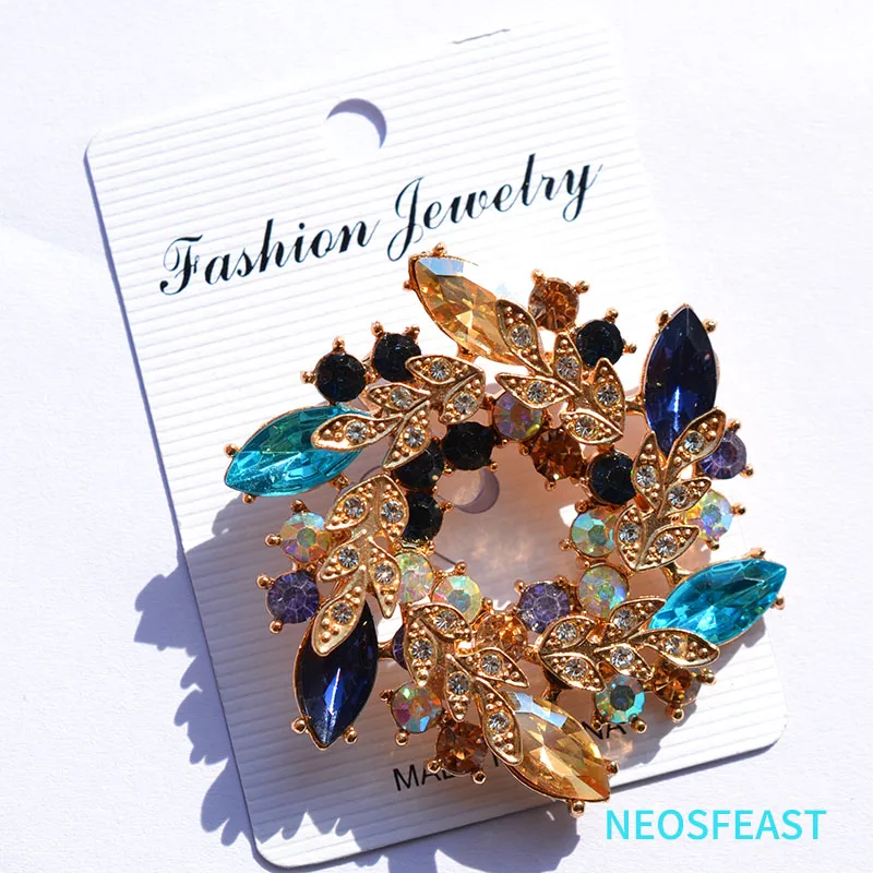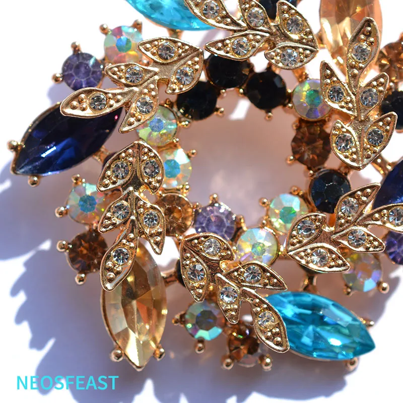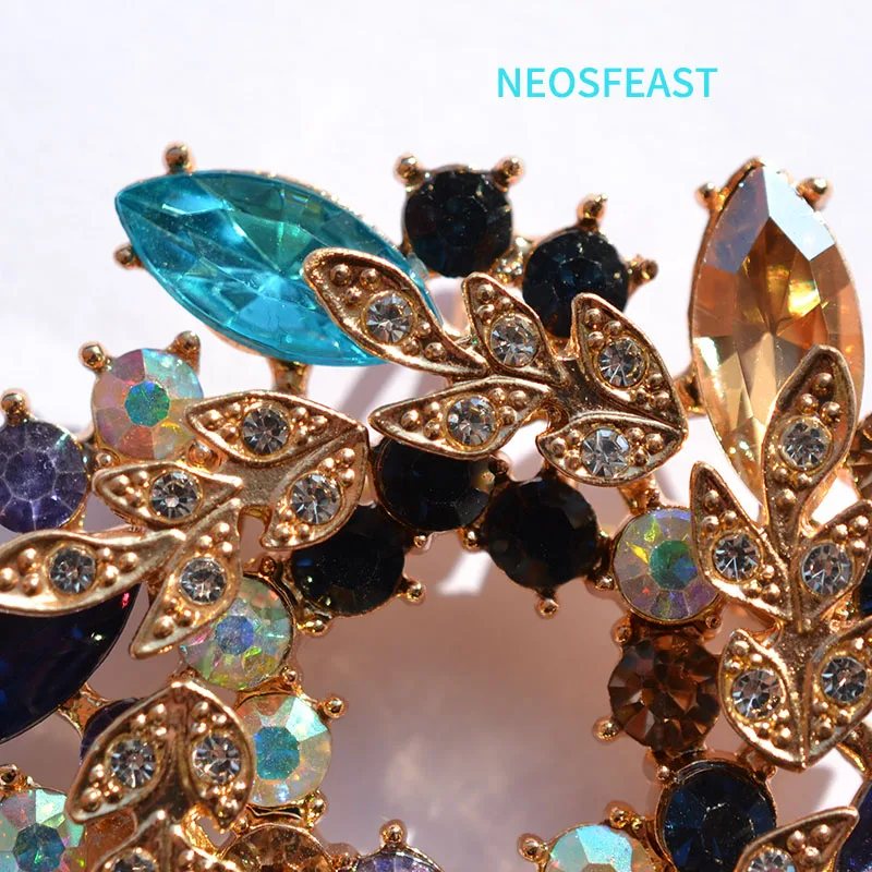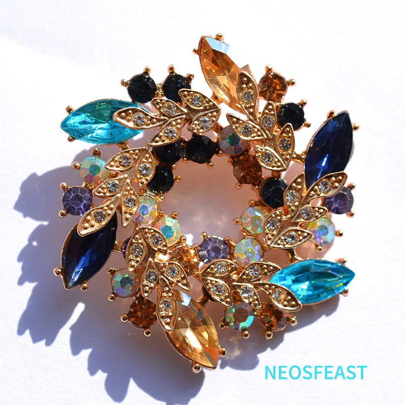 Rhinestone Floral Brooches for Women Trendy Crystal Brooch Fashion Jewelry Pin Flower Garments Lady Coat Accessories Multi Color