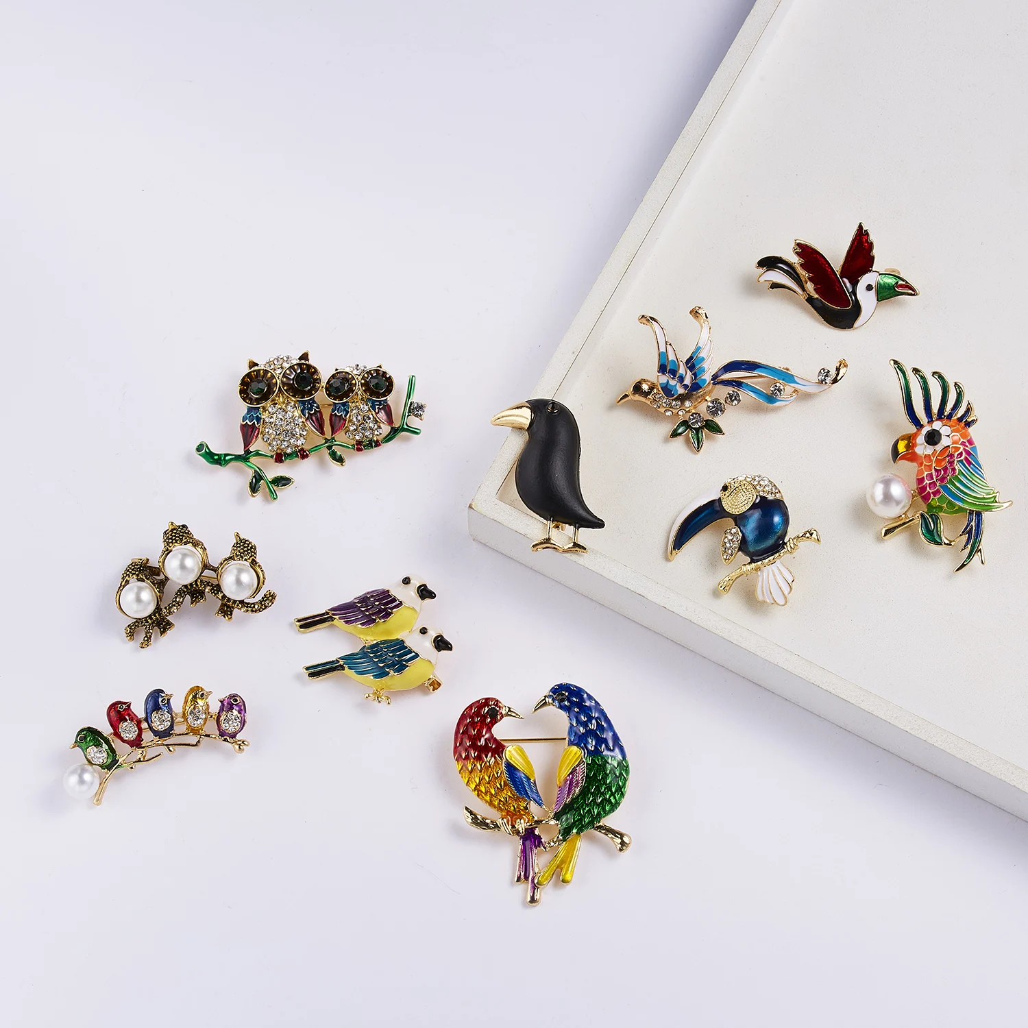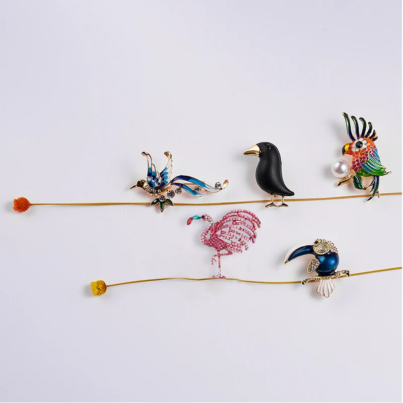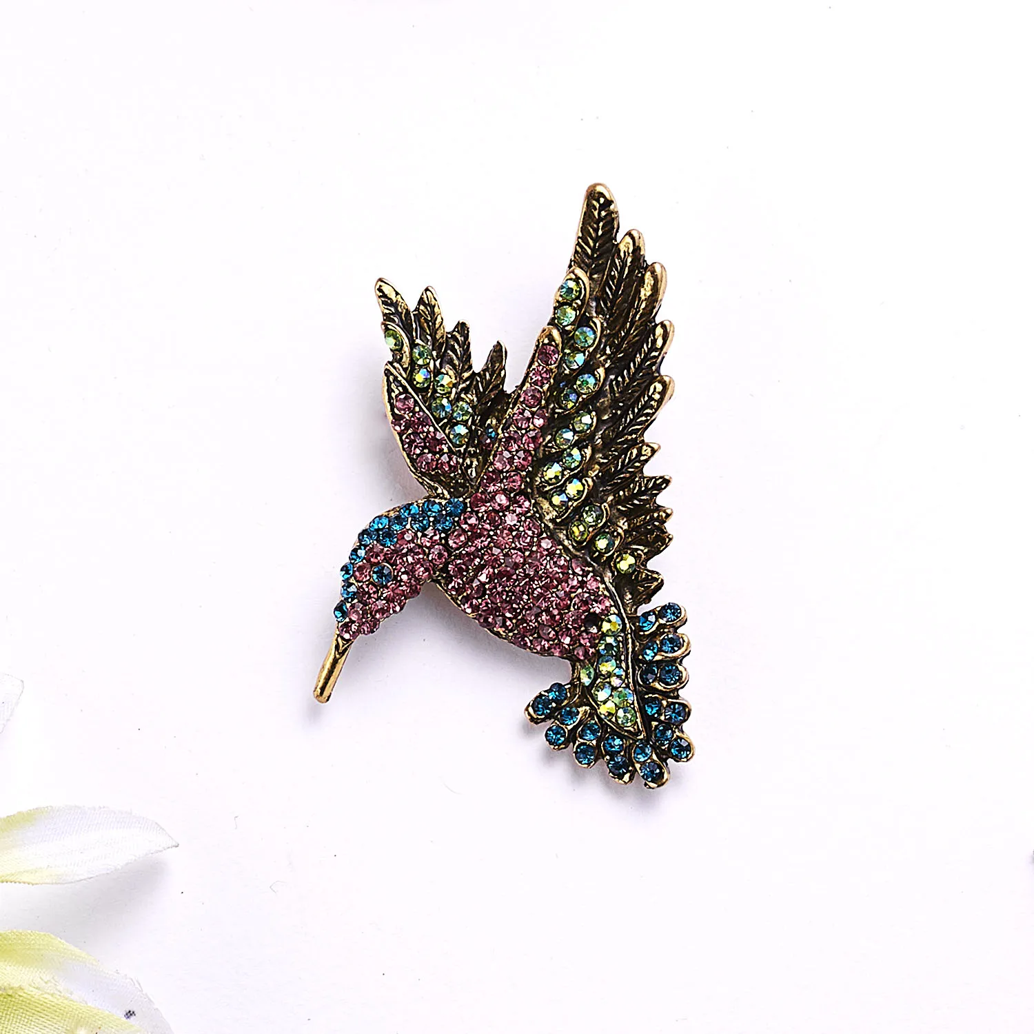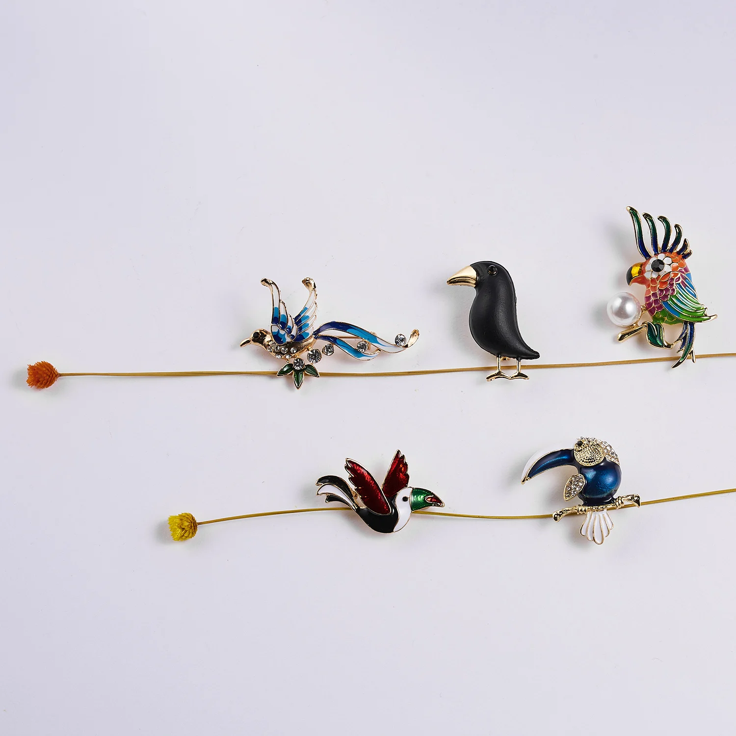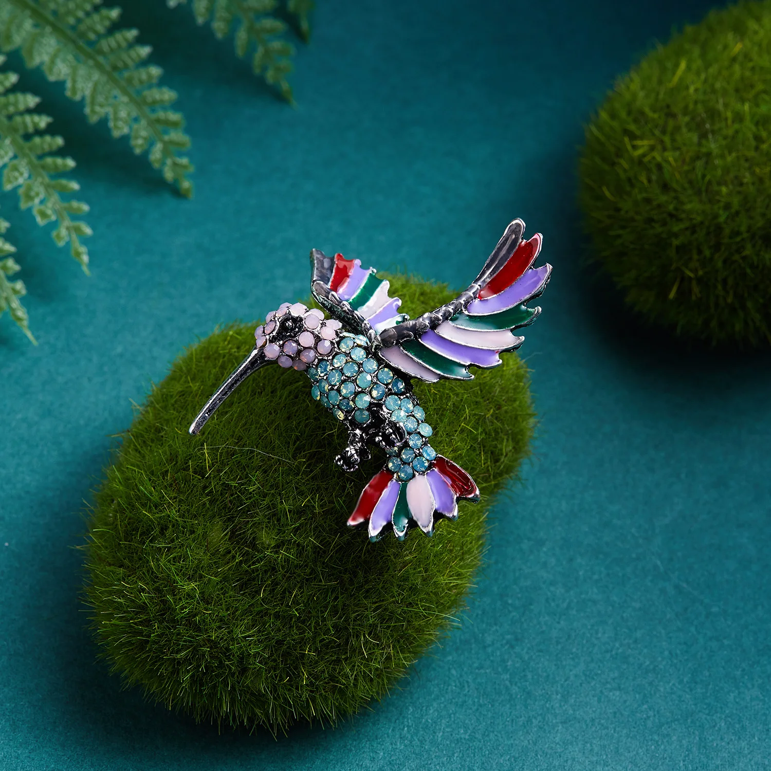 Rinhoo Cute Vivid Flying Bird Brooches For Women Winter Animal Hummingbird Parrot Clothes Lapel Pins Buckle Party Casual Badge