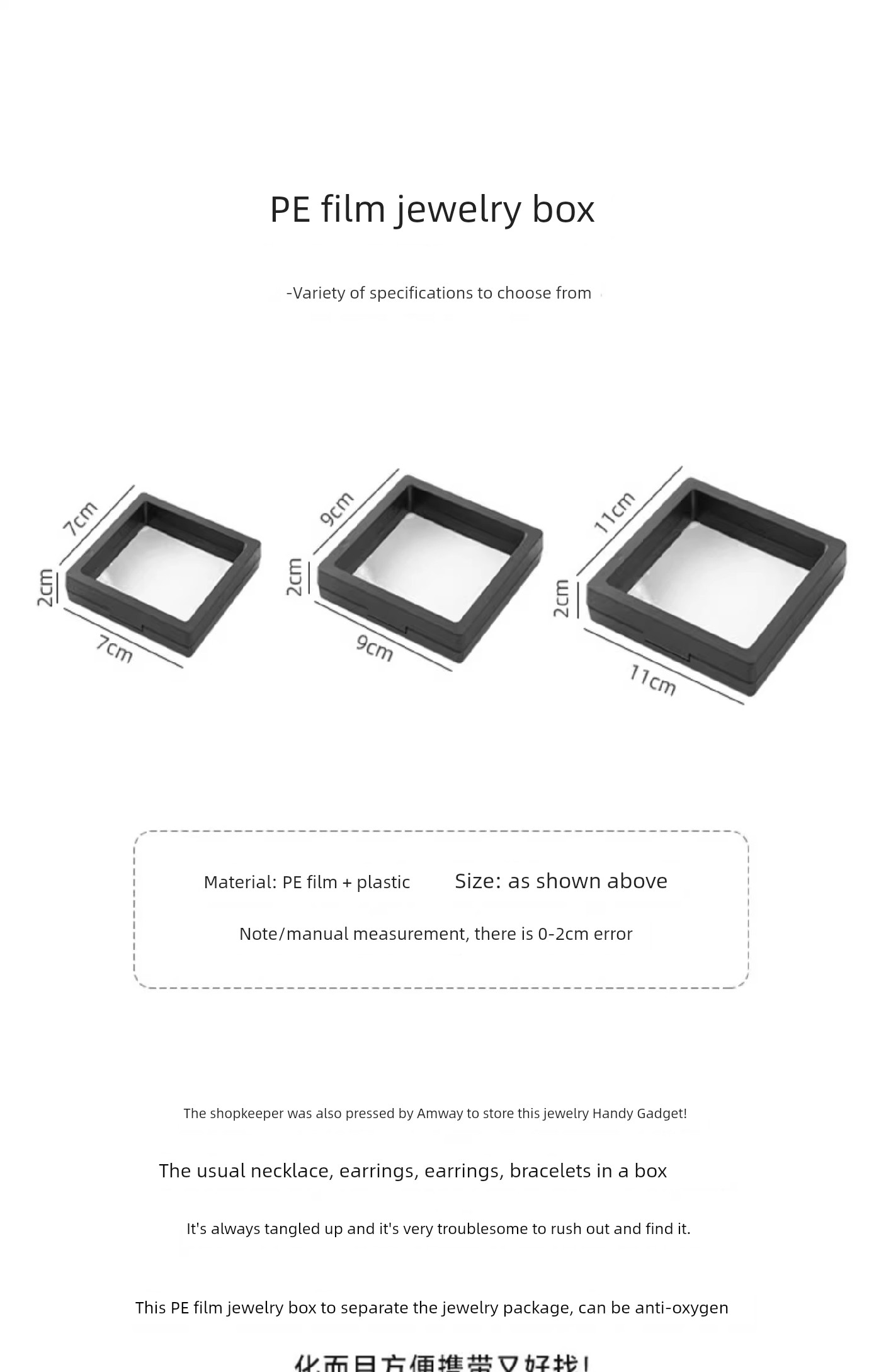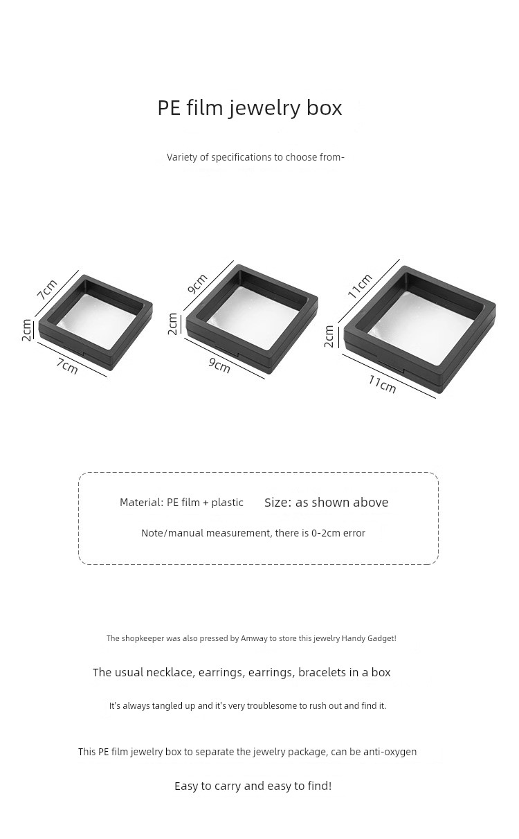Imagine a world where your precious jewelry is forever shielded from the perils of time and wear. Welcome to the realm of the Anti-Oxidation PE Film Bracelet and Ring Sealed Jewelry Box, a sanctuary where your cherished pieces await, untouched by tarnish and the effects of the elements. Born from the desire to protect sentimental treasures, this jewelry box uses cutting-edge anti-oxidation technology, ensuring that every charm, every ring, remains radiant and as brilliant as the day you first wore it. No longer will you be haunted by the specter of fading luster; this box aspires to preserve your jewelry not just as possessions, but as keepsakes filled with memories. What makes this jewelry box truly special is its sealed PE film, designed specifically to create an airtight environment. This means your rings and bracelets are not just stored; they’re carefully maintained, allowing you to reach for your favorite pieces without a hint of worry. The design seamlessly blends functionality with elegance—crafted not only to store, but to showcase your beloved adornments as the beautiful art they are. Picture this: as you open the box, it reveals a soft, plush interior that cradles your jewelry, making each interaction feel special. It’s not just about storing your jewelry; it’s about the experience of retrieving those cherished memories. The gentle embrace of the box whispers tales of elegance and history, inviting you to wear your favorite pieces again and again. But don’t just take my word for it: Jimmy R. shared, “I had been struggling with tarnishing on my rings for years. This box has truly kept them looking brand new!” And Emily K. added, “Not only does it protect, but it looks stunning on my dresser. It’s become a part of my decor!” Are you ready to elevate the way you care for your precious jewelry? Don’t let time dictate the beauty of your favorite pieces. Invest in the Anti-Oxidation PE Film Bracelet and Ring Sealed Jewelry Box today, and give your jewelry the sanctuary it deserves. Act now and experience the peace of mind in knowing your treasures are safe!