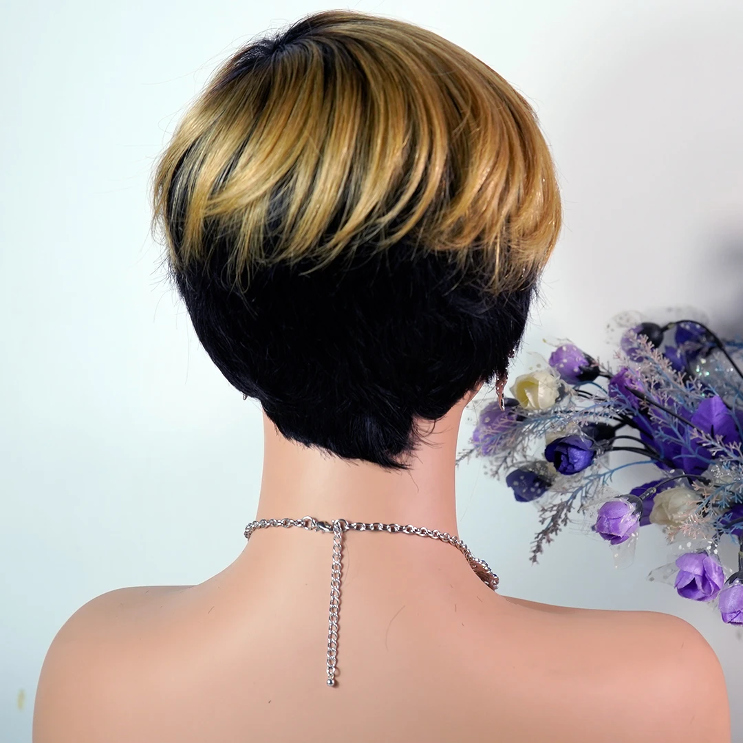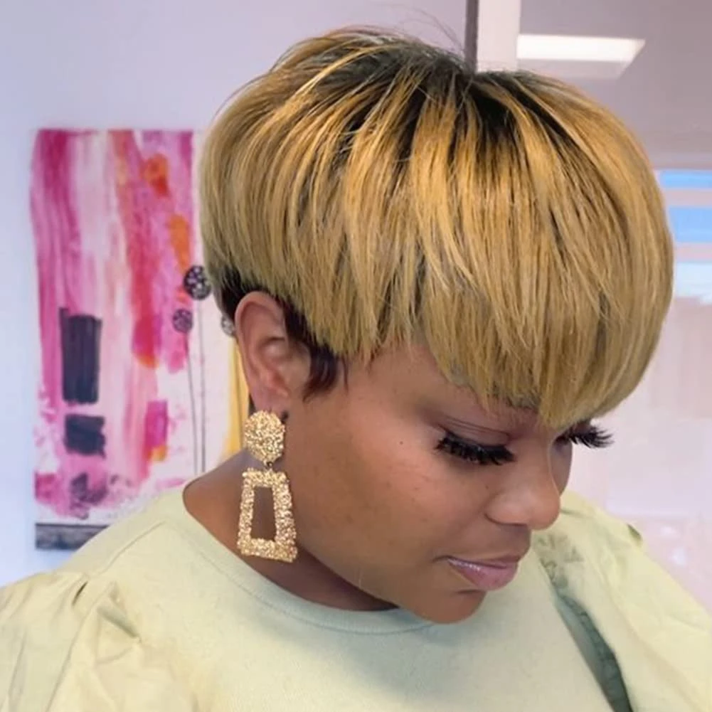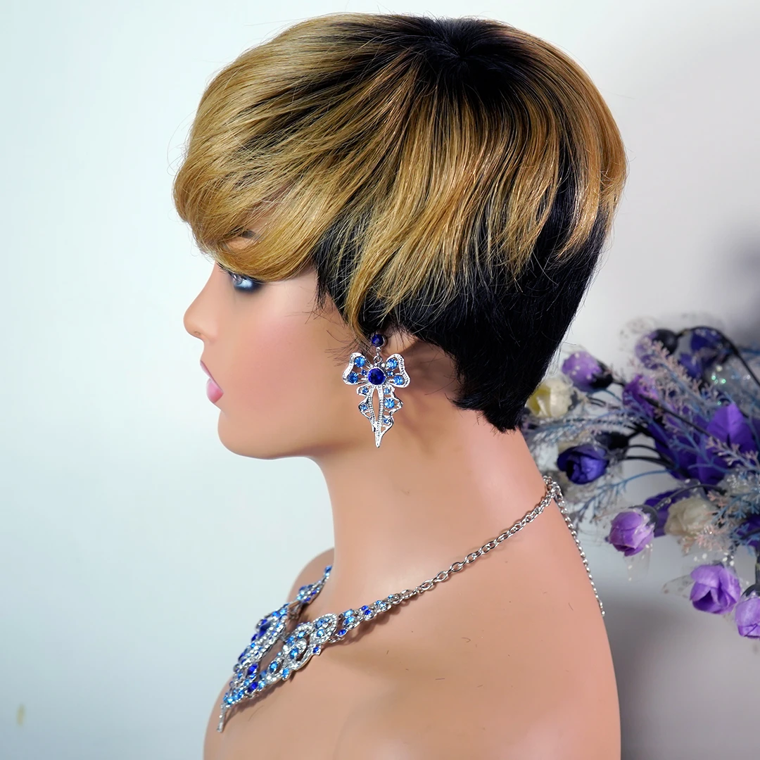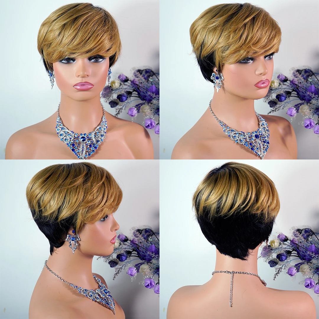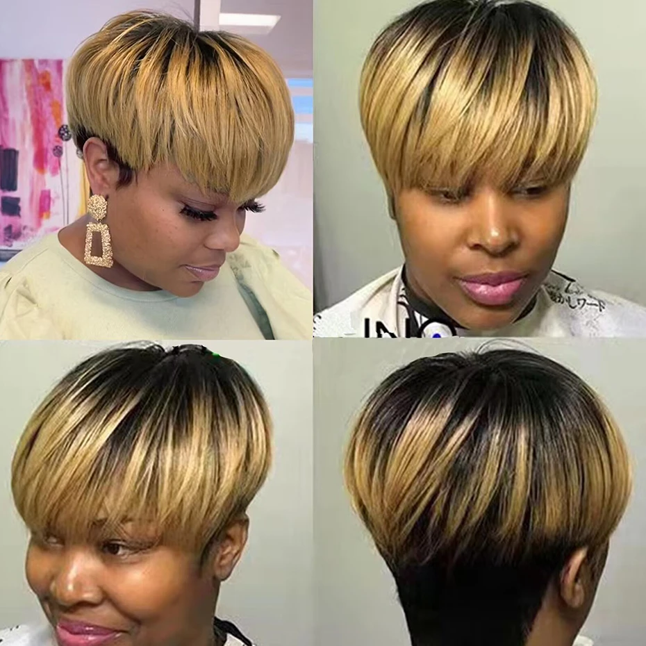 Short Human Hair Wigs Pixie Cut Wigs with Bangs for Black Women Blonde Color Pixie Wigs for Women Full Machine Made Wigs
