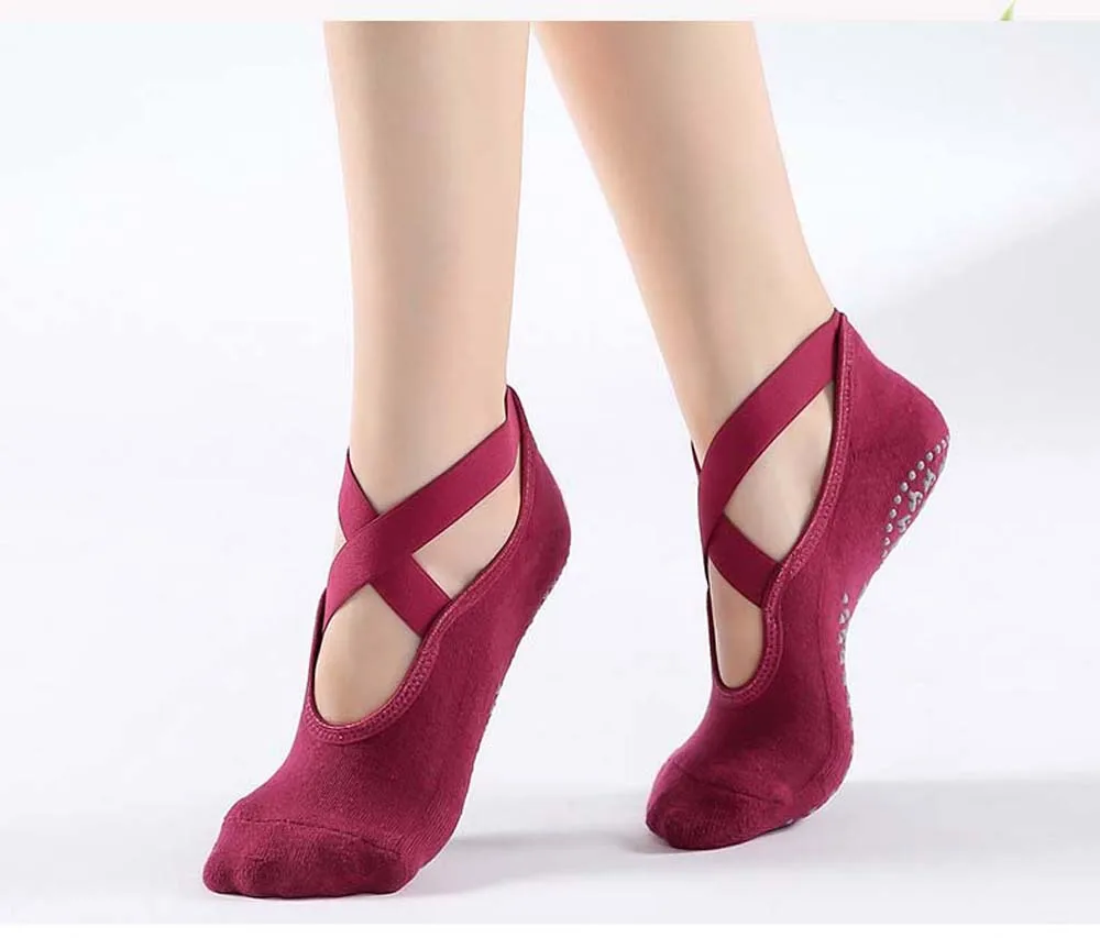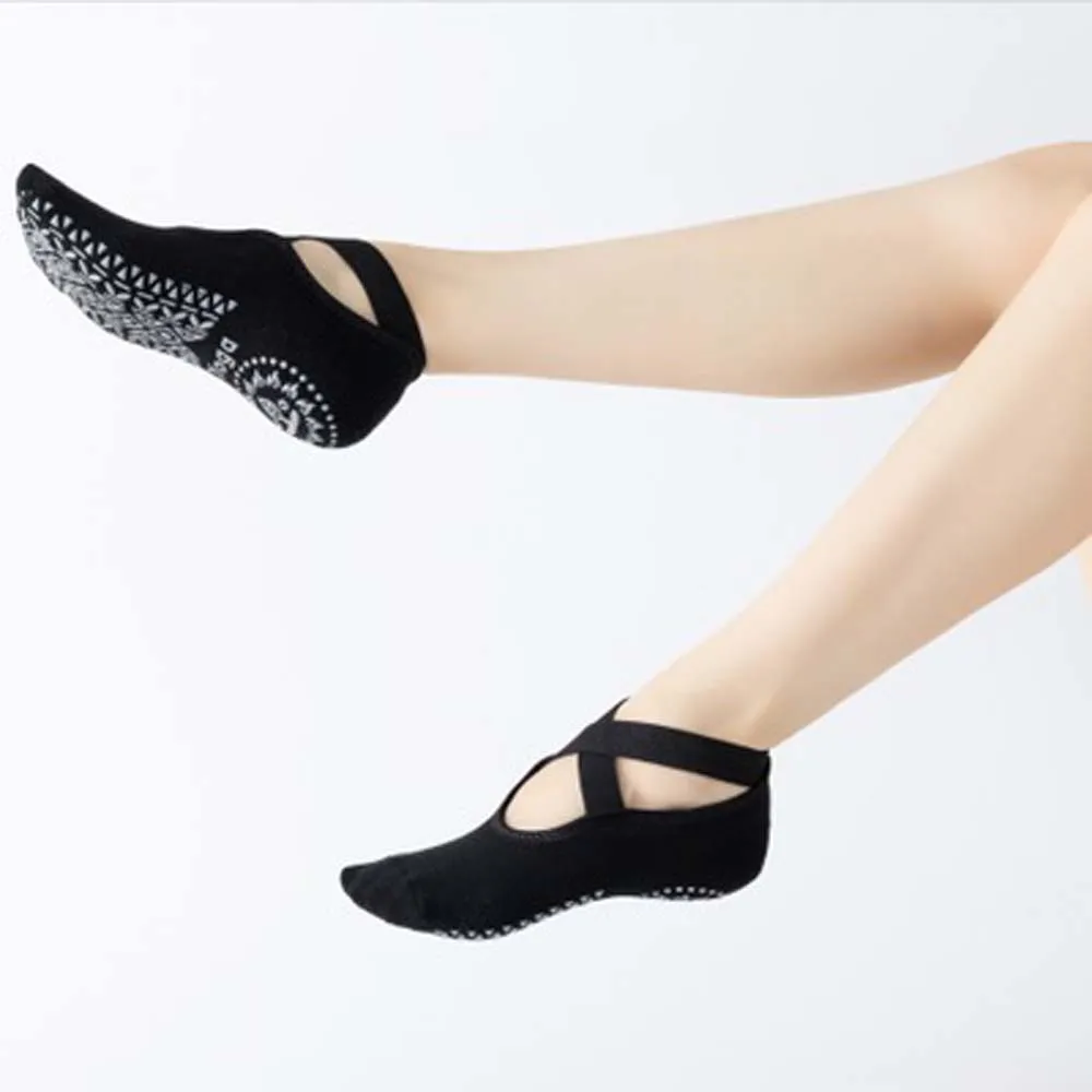1Pair Bandage Yoga Socks Women Anti-Skid Comfort Ballet Breathable Pilates Grip Cotton Elasticity Dance Training Particles Socks