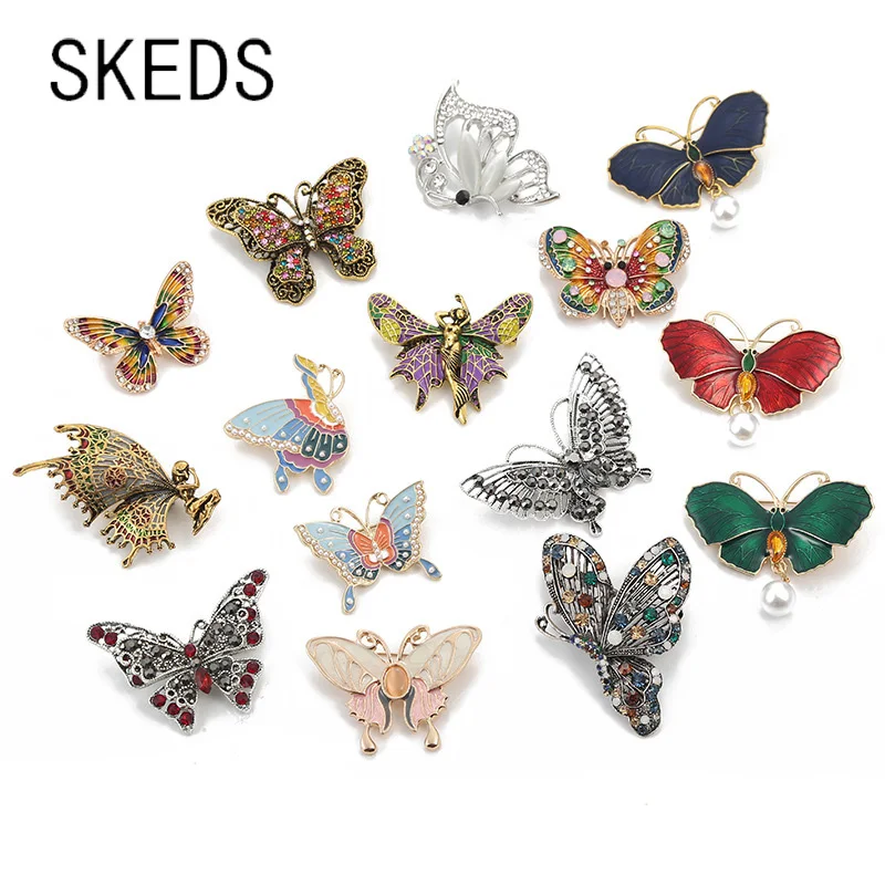 SKEDS Retro Elegant Women Butterfly Crystal Brooches Pins Insect Pearl Rhinestone Jewelry Brooch Pin Lady Party Accessories
