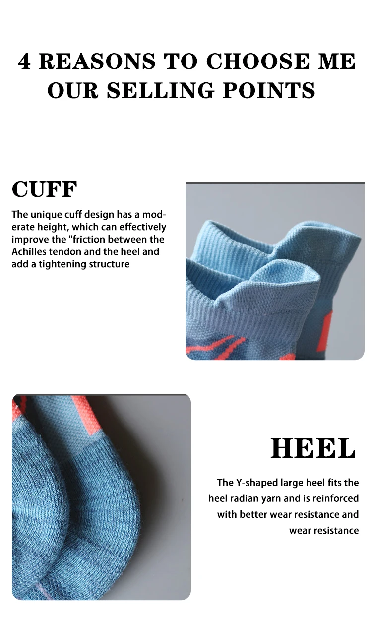 4. Non-slip: Our label socks have proper compression at the arch of the foot to protect you when you walk, jog and run, and add stability for a perfect fit. The elastic cuff locks the heel and ensures that our sports socks are non-slip to prevent the sports socks from slipping during daily walking, running, cycling, hiking, tennis.