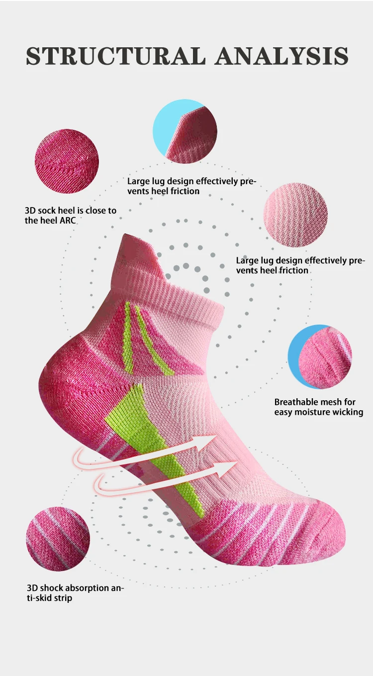 2. Breathability: These running socks are made of combed cotton to help absorb moisture quickly and release sweat, and the mesh ventilation of the arch releases heat to keep your feet dry throughout the day. This sports socks have great elasticity and recovery. You can wear these sports socks for a long time without worrying about easy breakage.