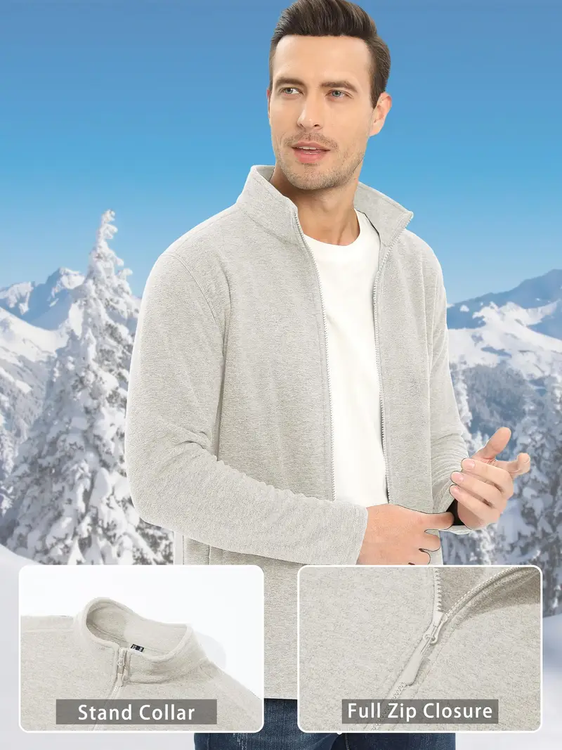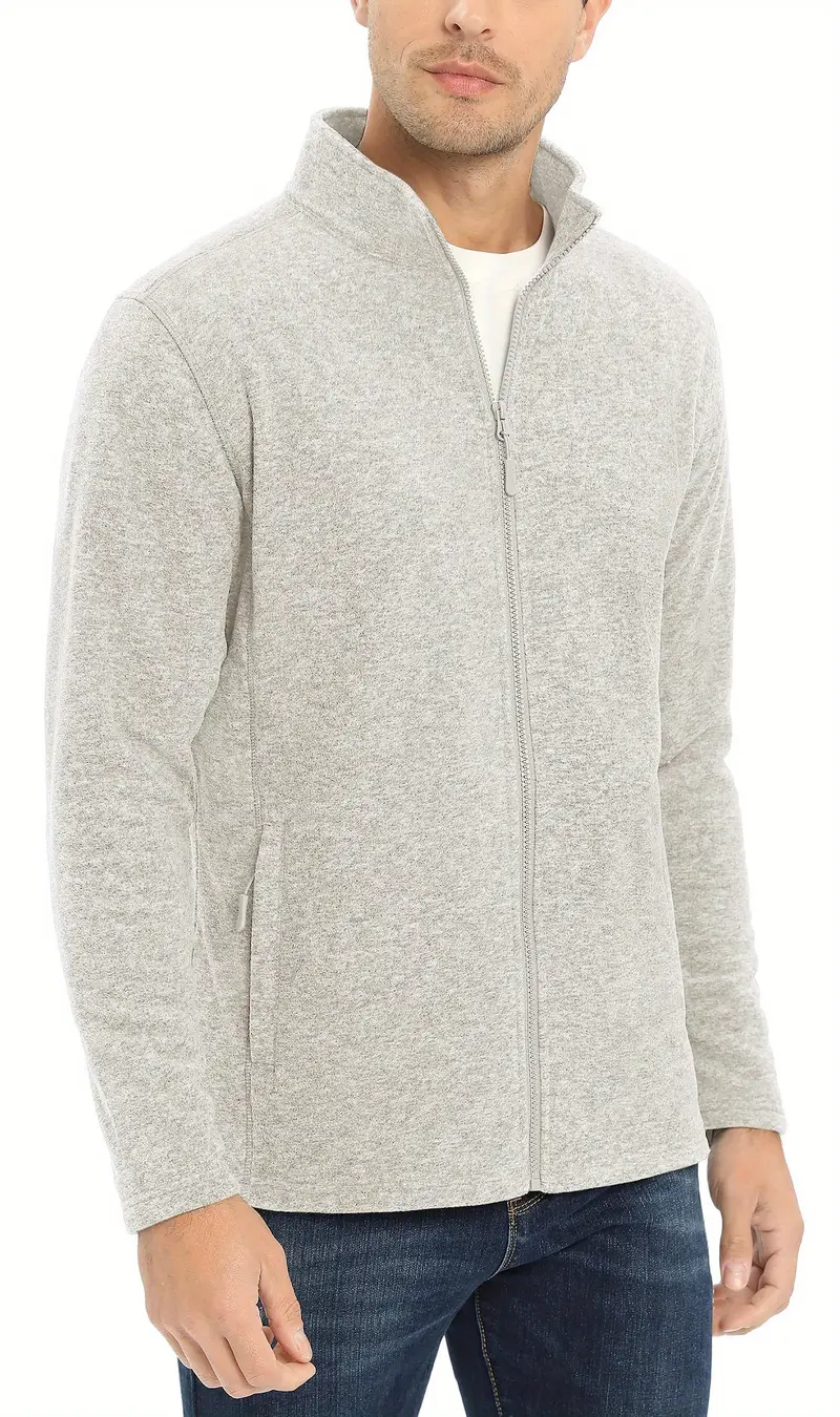 Soft and Warm Full Zip Lightweight Men's Sport Stand Collar Jackets with Quick Dry Moisture Wicking Material, Multi Pockets, and Classic Design for Running, Fishing, Cycling, Camping, and Gym
