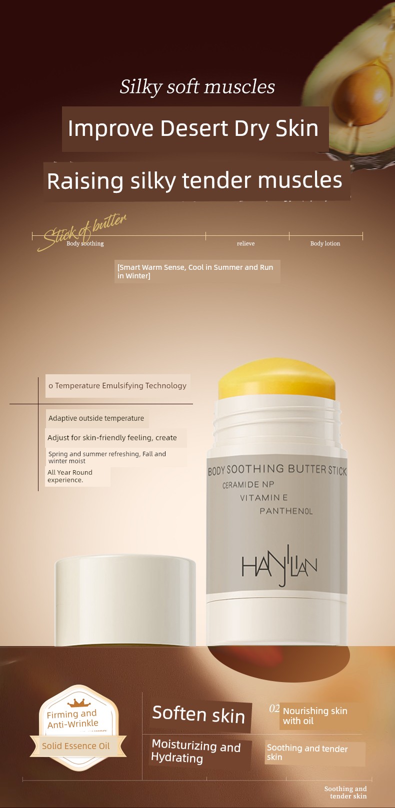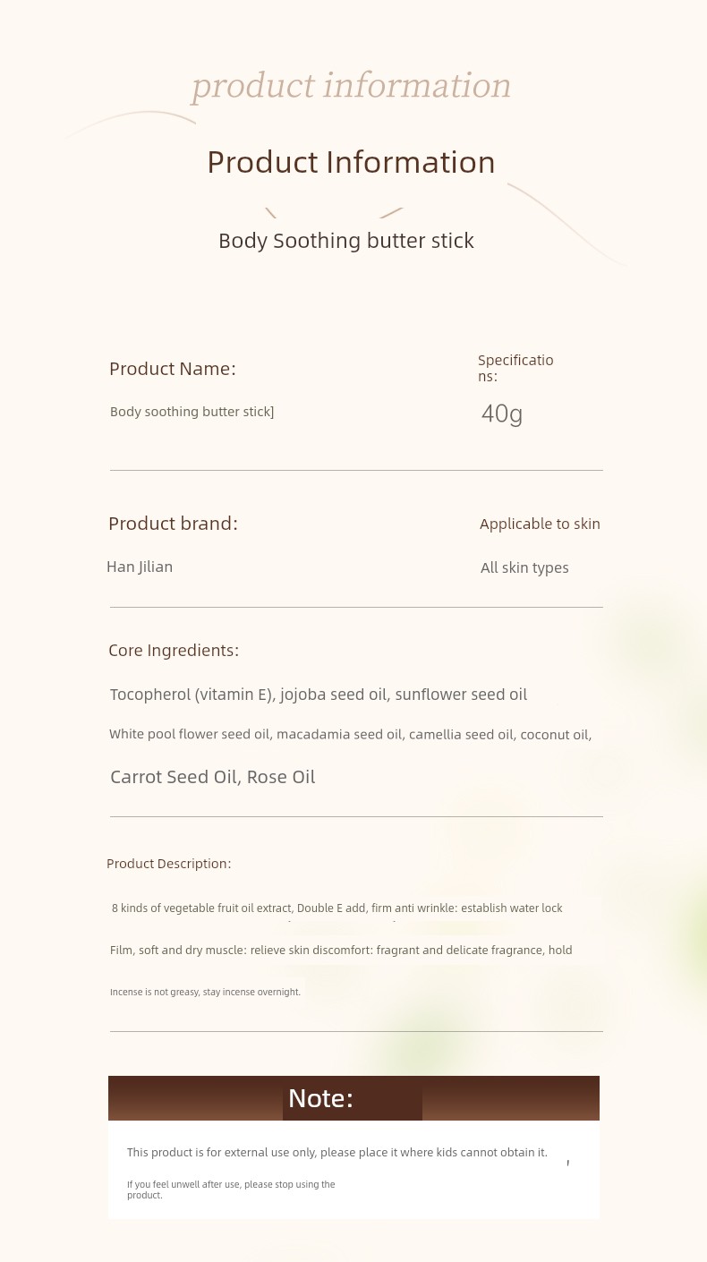 Solid Body Essence Oil Butter Stick Body Lotion Moisturizing and Nourishing Body Essential Oil Stick Skin Moisturizing Cream Skin Cream Men and Women