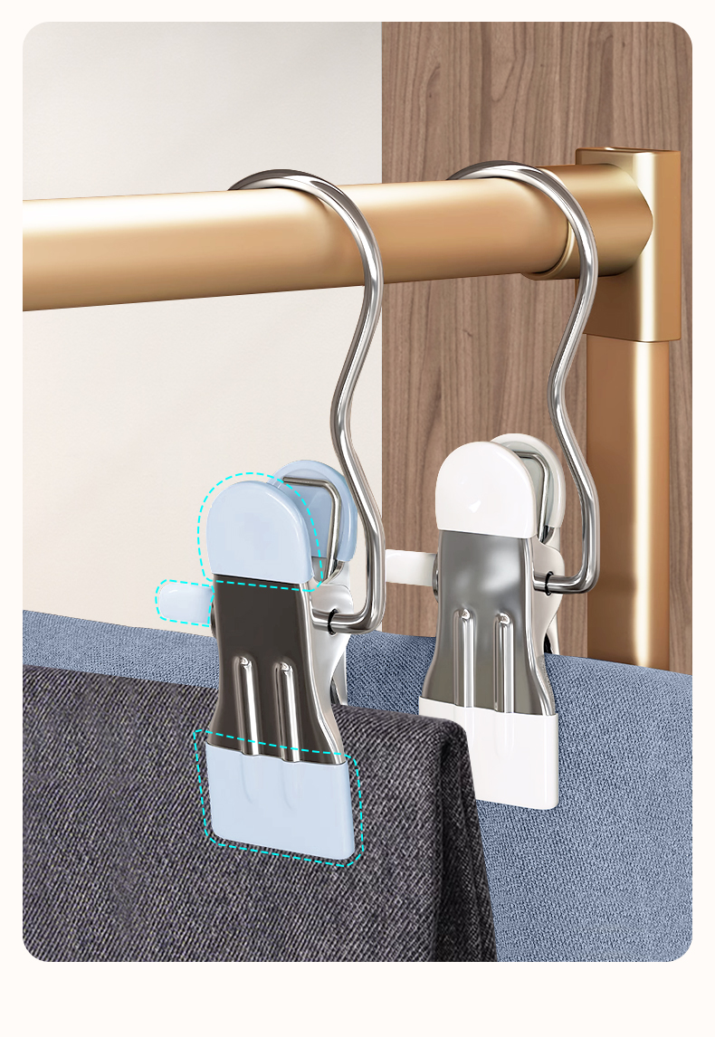 Upgrade your laundry game with our Strong Stainless Steel Multi-Function Clothes Clip, designed for durability and ease of use. Why you'll love it: - Premium seamless stainless steel construction for long-lasting use. - Multi-function design includes hooks for versatile hanging options. - Strong grip ensures your clothes stay secure while drying. - Perfect for indoor and outdoor use, even in windy conditions. - Sleek, modern design complements any laundry setup. Our seamless stainless steel clothespins are not only built to last but also feature hooks to accommodate various hanging needs. Their strong grip ensures your clothes remain securely in place, making these clips a must-have for any household. To use, simply secure the clip to your clothing or fabric and hang it from the designated hook or line. Perfect for reduced drying times and optimized organization, these clips are an exclusive, limited-time solution for all your laundry needs!