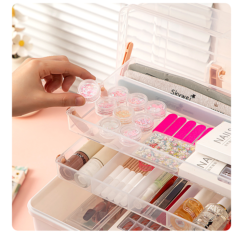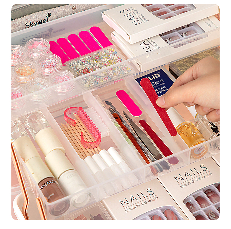 Transform your beauty routine with this Stylish Dustproof Cosmetics Storage Box! Keep your favorite beauty products organized and accessible, adding a touch of elegance to your vanity. Why you'll love it: - Effortlessly organize your makeup, skincare, and accessories. - Dustproof design keeps your products pristine and ready. - Thoughtfully designed compartments for all your favorites. - Perfect for beauty enthusiasts, students, and artists alike. - A clutter-free space enhances your daily beauty routine. Constructed with a sleek and modern exterior, this cosmetics storage box not only looks good but is functional too. Each compartment caters to various products, ensuring everything has its place. Say goodbye to messy drawers and hello to an orderly beauty haven. To use, simply place your cosmetics and accessories in the designated compartments, and enjoy the ease of finding what you need at a glance. This is your exclusive opportunity to elevate your space—get yours today and embrace the charm of organized beauty!