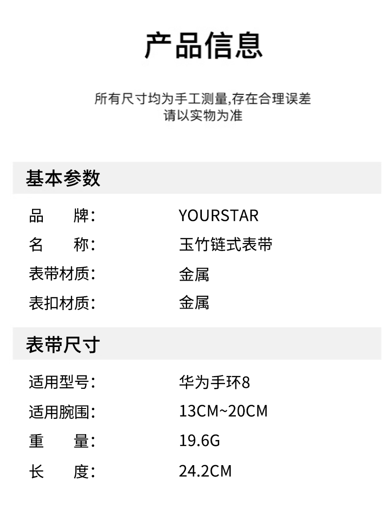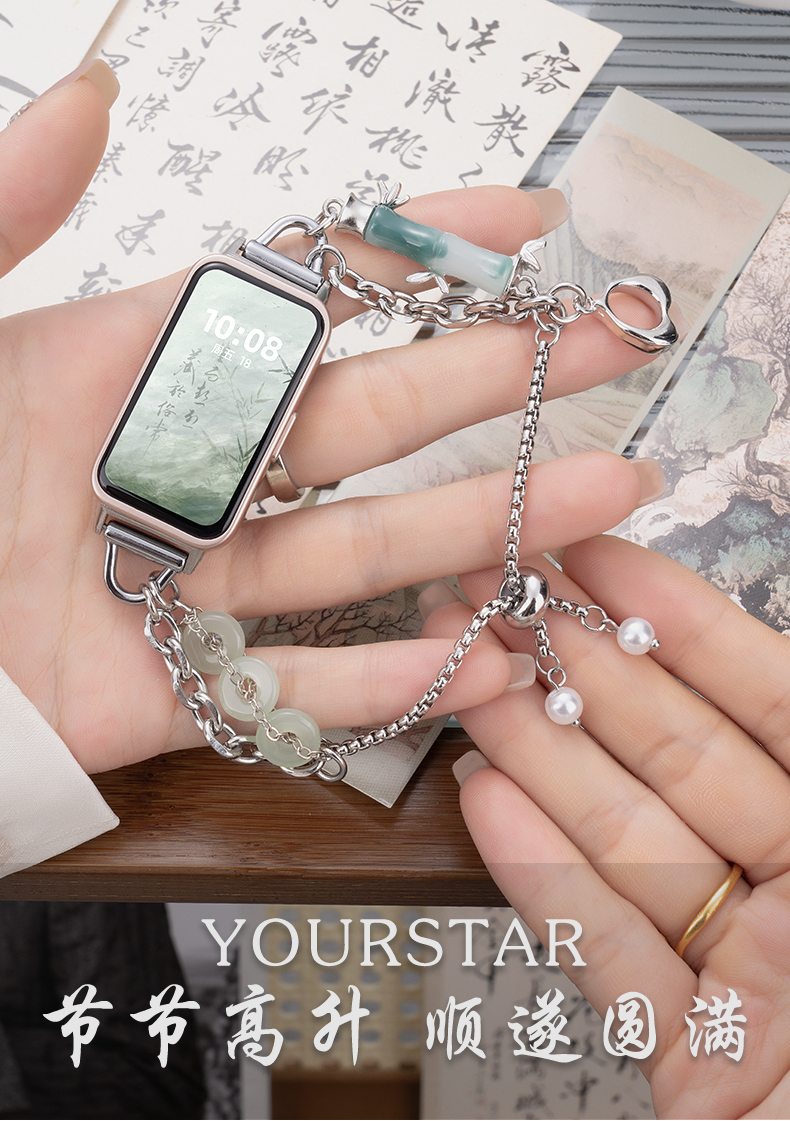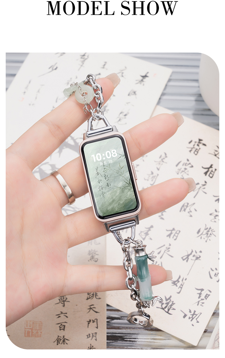 Elevate your style with our Elegant Replacement Bands for Huawei Bracelet 8/9 – the perfect accessory for every trendsetter.Why you'll love it:- Exclusive Elegant Chinese Style with Unique Peace Buckle Design.- Durable Metal Construction perfect for daily wear.- Comfortable Fit ideal for sports and everyday activities.- NFC Compatible for seamless smart features.- Crafted from premium materials for both sophistication and functionality.Made from high-quality metals, these stylish replacement bands feature a unique jade and bamboo design that blends elegance with practicality. They provide a secure fit, making them perfect for all your daily activities.To use, simply detach your current band and attach the new one to your Huawei Bracelet 8 or 9 for an instant style upgrade. Don’t miss out on this limited-time offer to stand out in any crowd and enhance your wristwear collection!