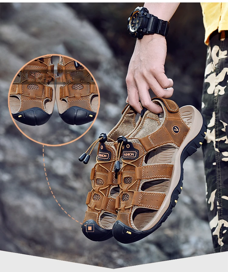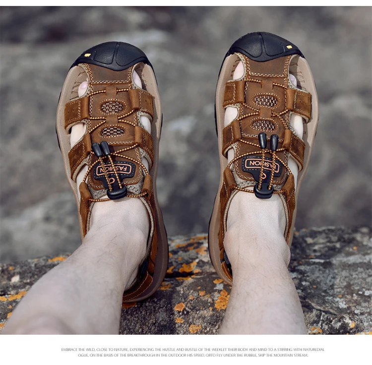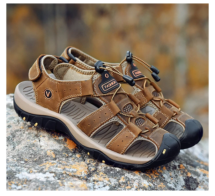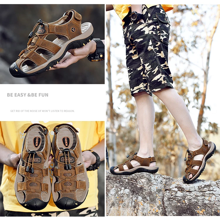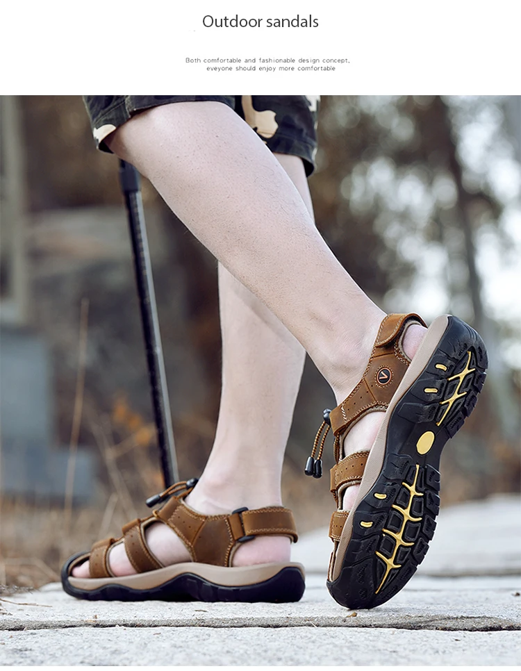 Summer Men Sandals Leather Mens Casual Shoes Outdoor Men Leather Sandals for Men Beach Shoes Roman Shoes