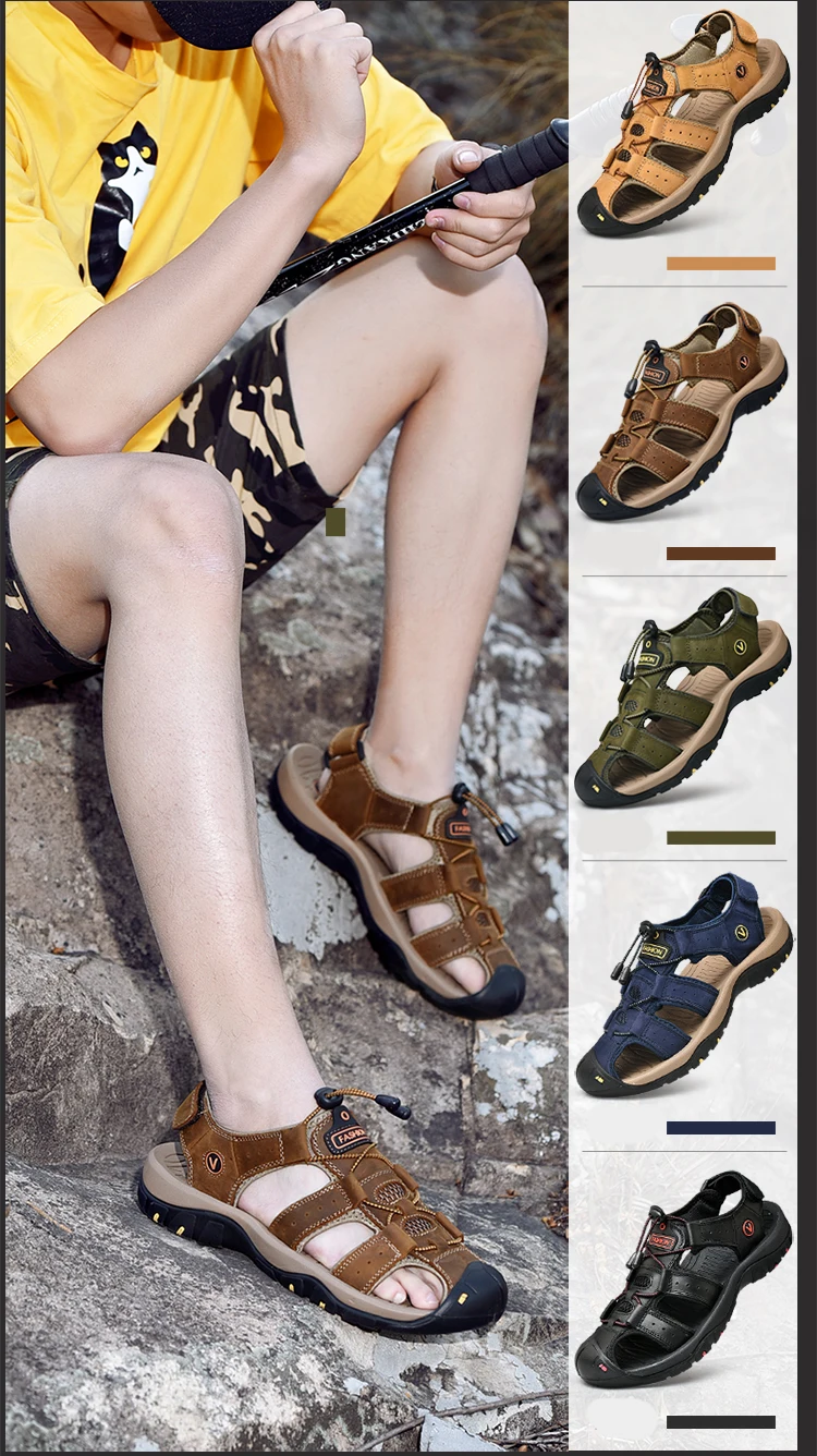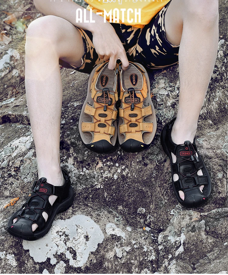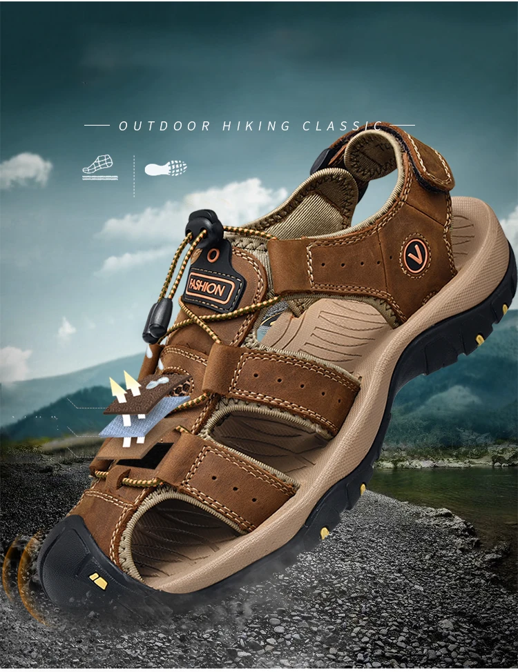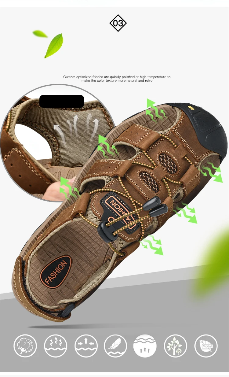 Summer Men Sandals Leather Mens Casual Shoes Outdoor Men Leather Sandals for Men Beach Shoes Roman Shoes