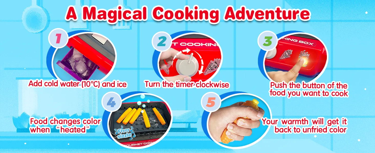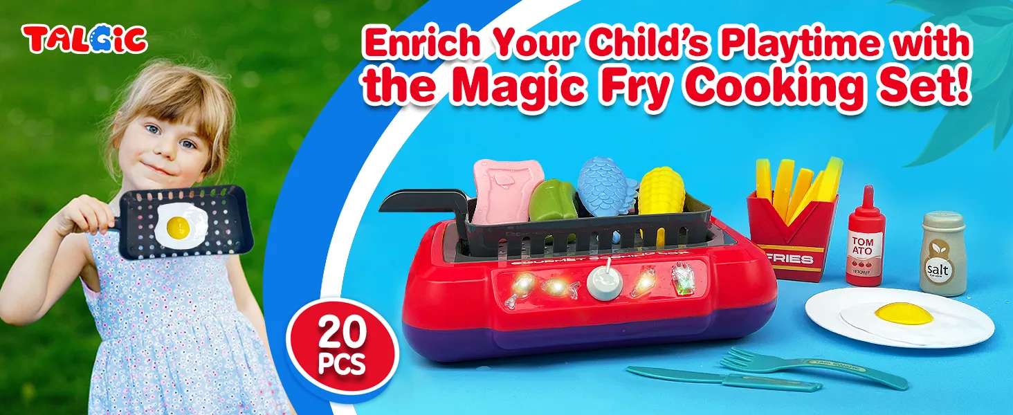 TALGIC DIY Magic Fry Gourmet Cooking Box, Kitchen Set Toy for Kids, Pretend Play 20 PCS Play Food for Kids Kitchen Playset, The Best Birthday Gift for Children