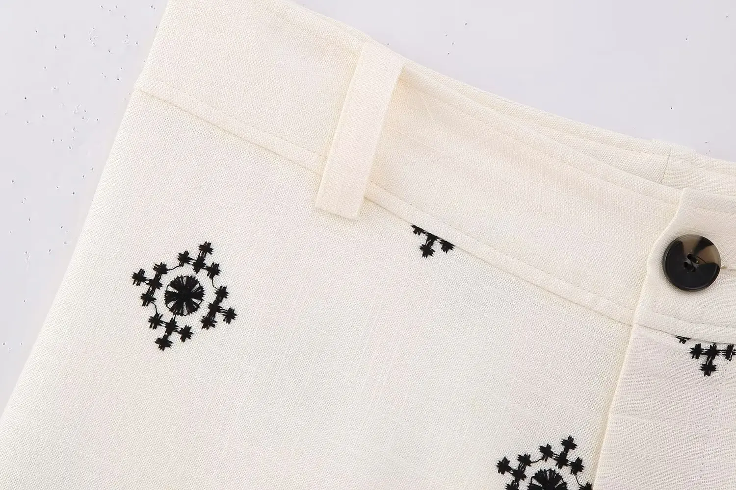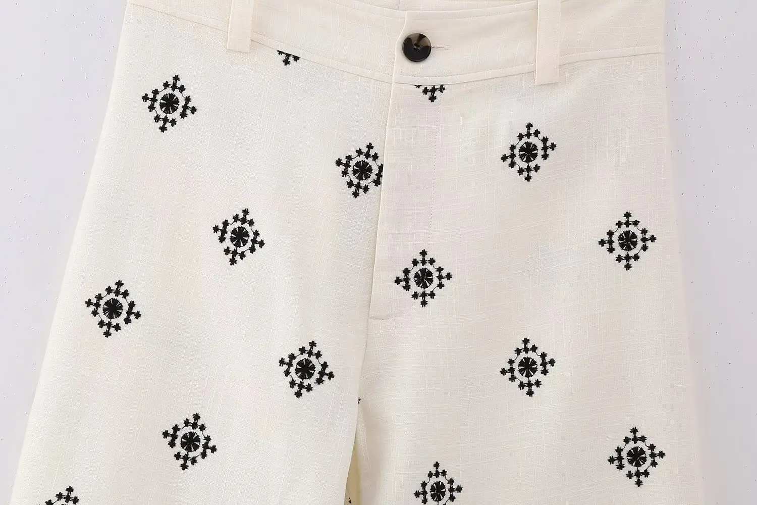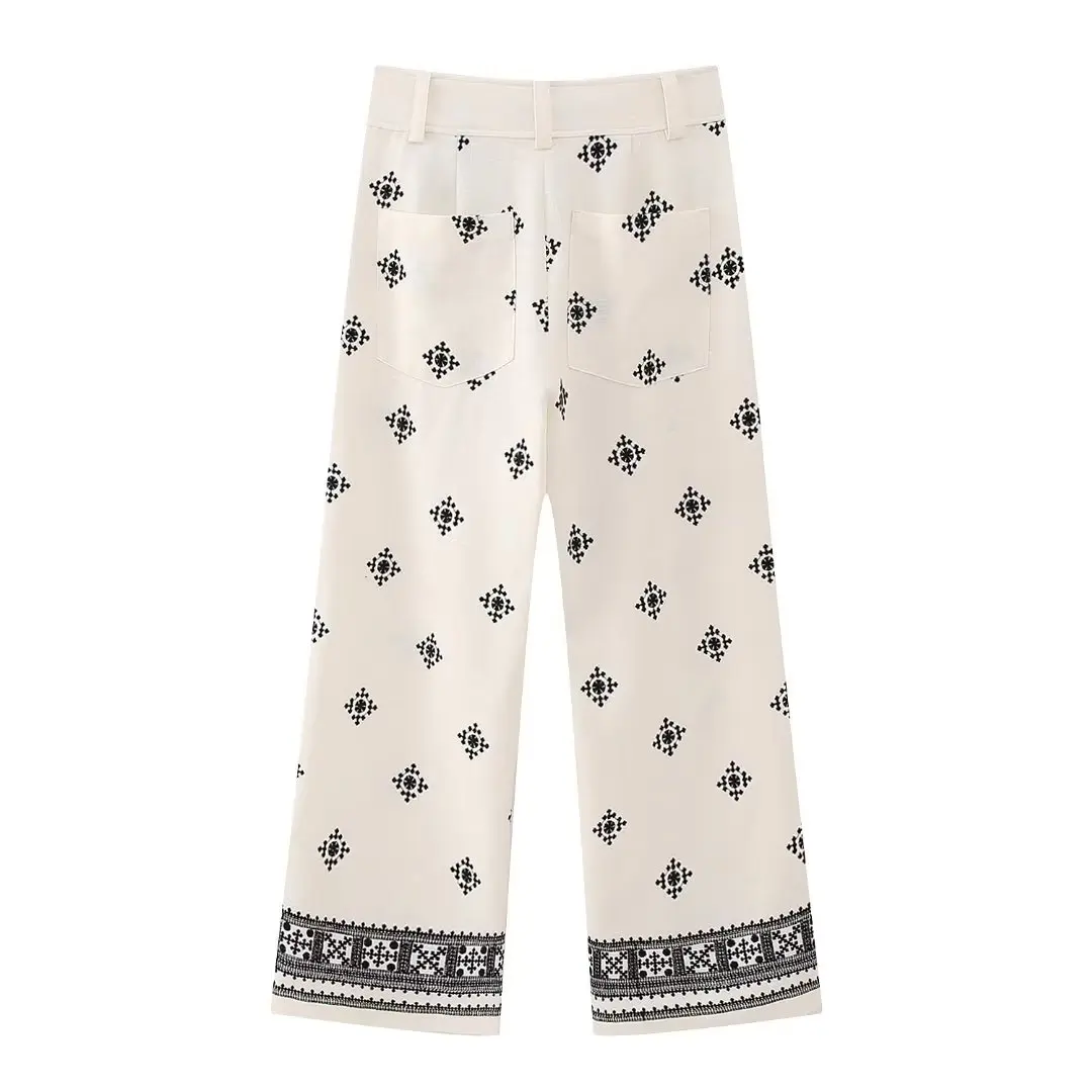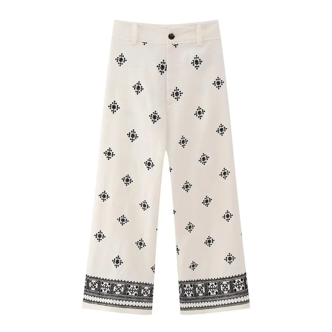 TRAFZA Embroidery Wide Leg Pants for Women Trousers Women Streetwear Casual Mid Waist Women Pants Summer Baggy Pants
