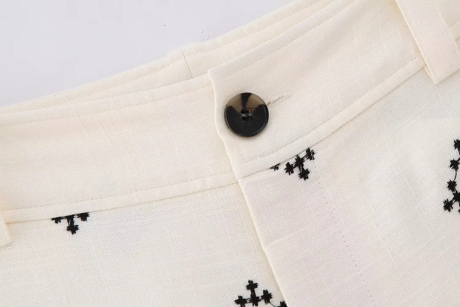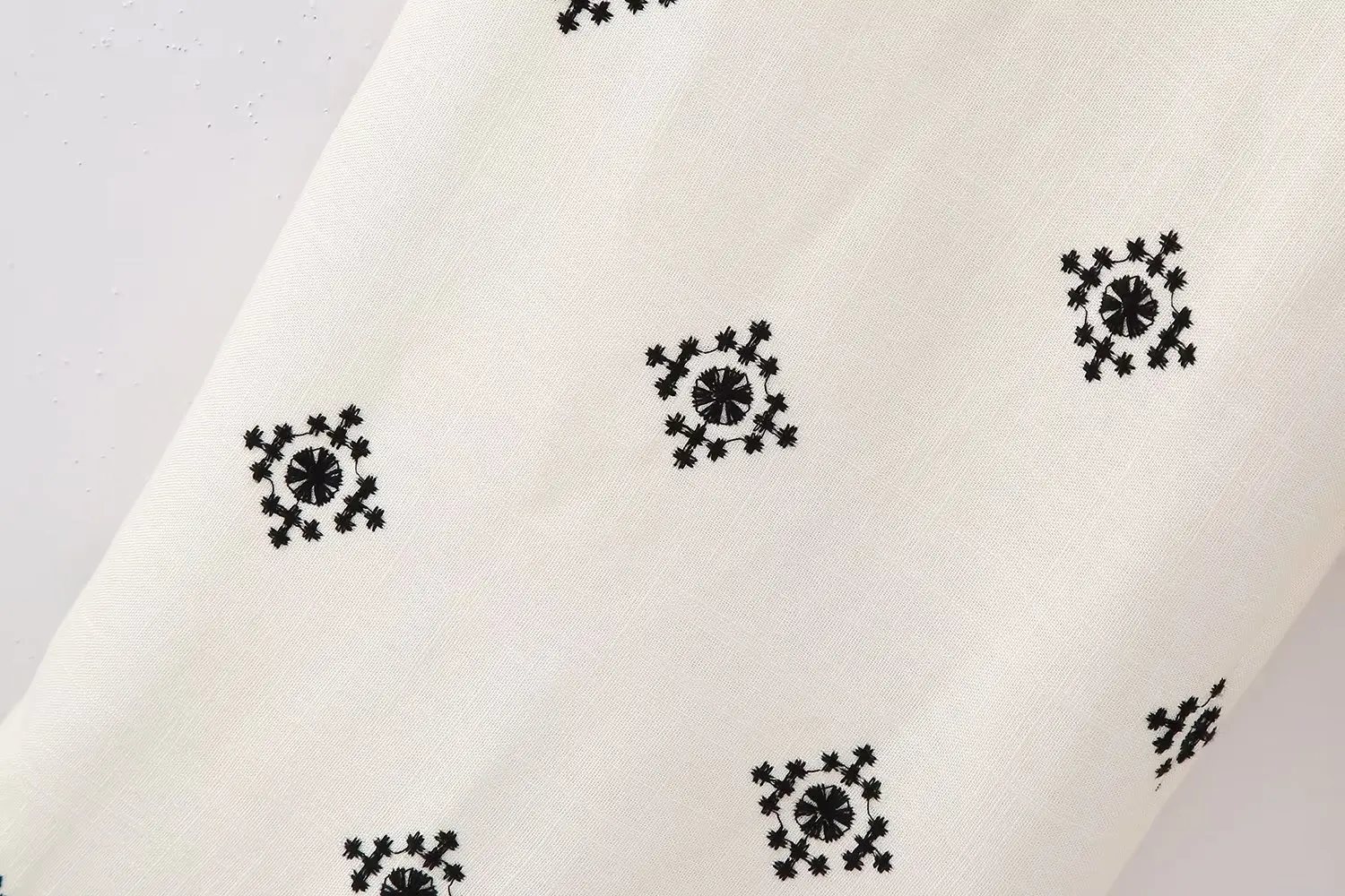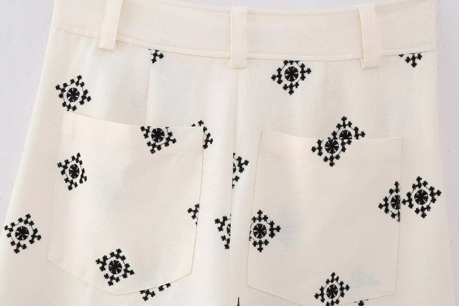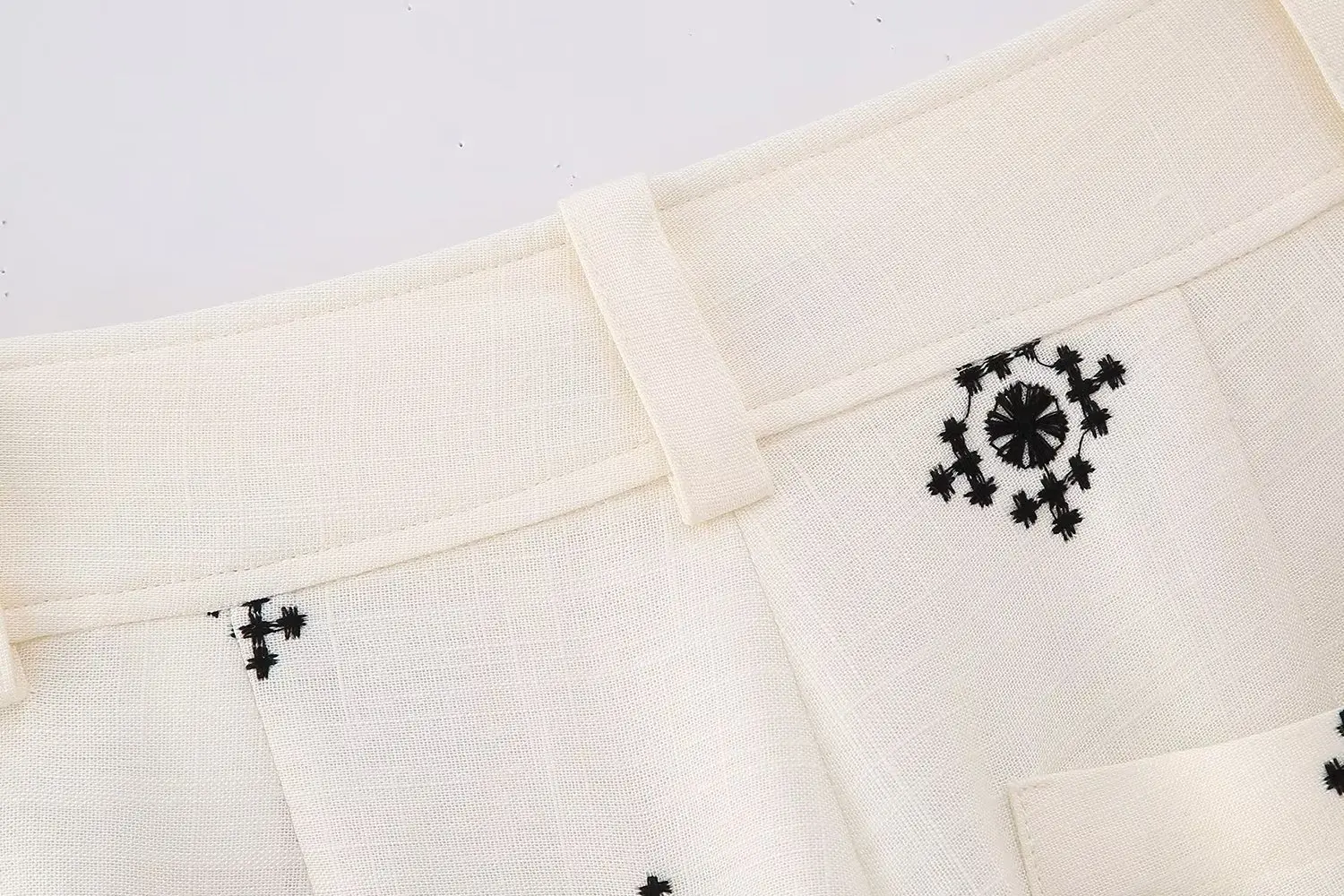 TRAFZA Embroidery Wide Leg Pants for Women Trousers Women Streetwear Casual Mid Waist Women Pants Summer Baggy Pants