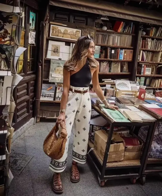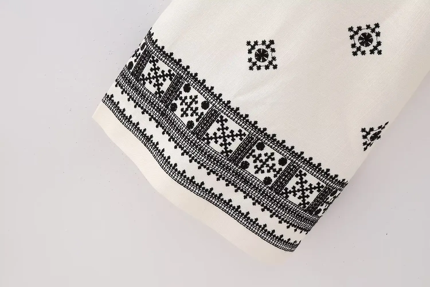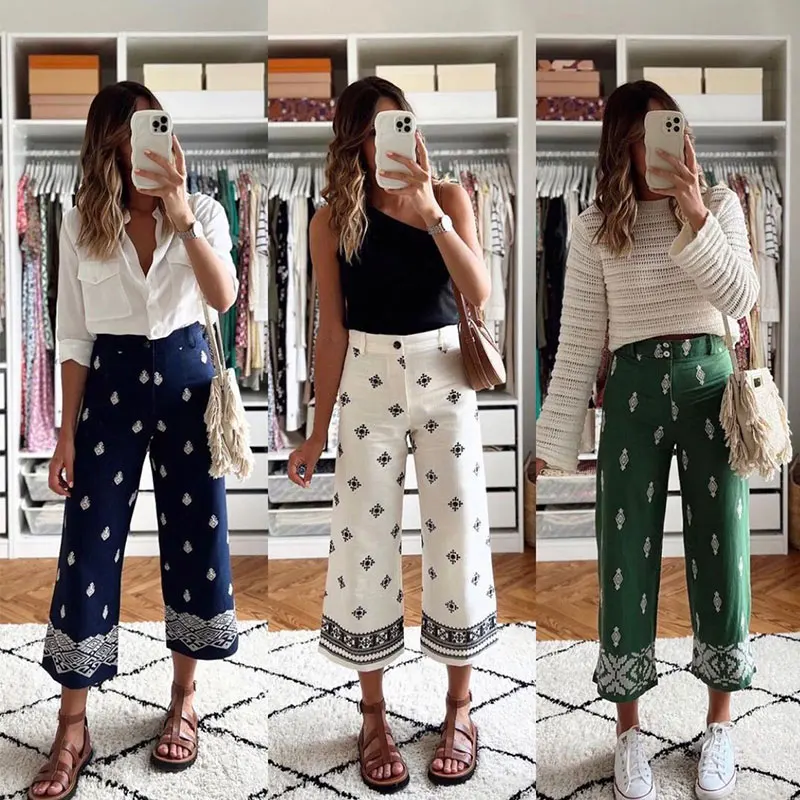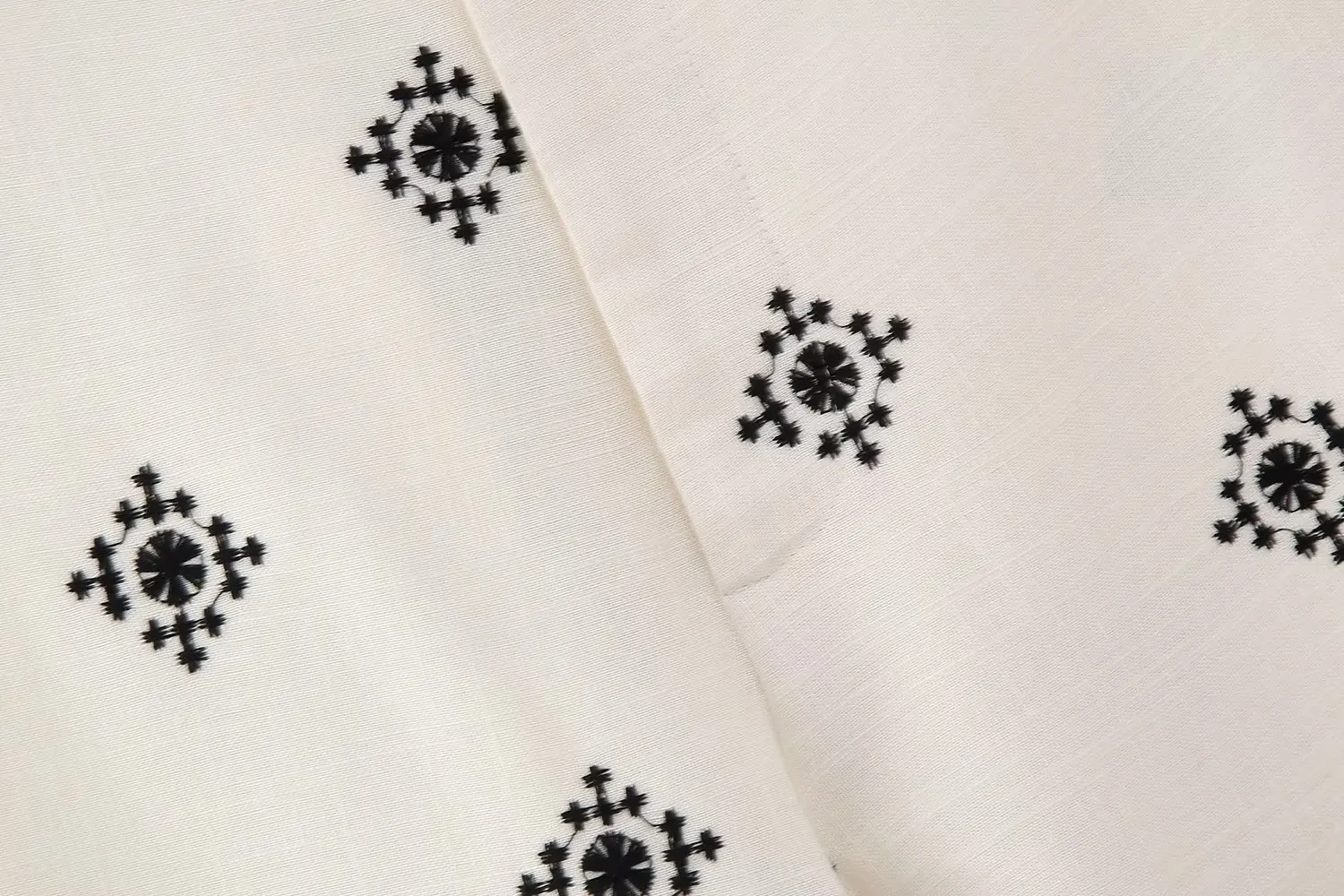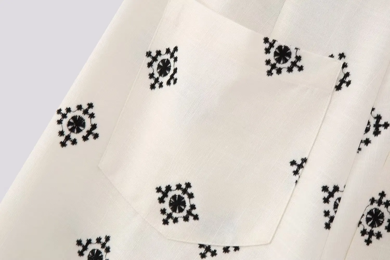 TRAFZA Embroidery Wide Leg Pants for Women Trousers Women Streetwear Casual Mid Waist Women Pants Summer Baggy Pants