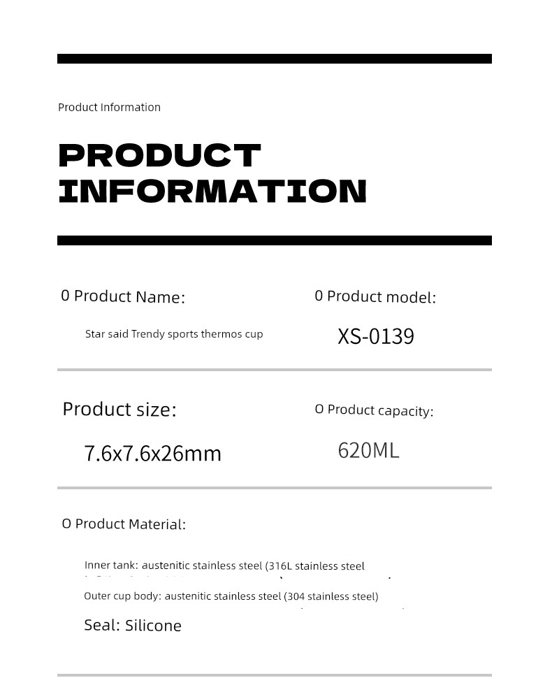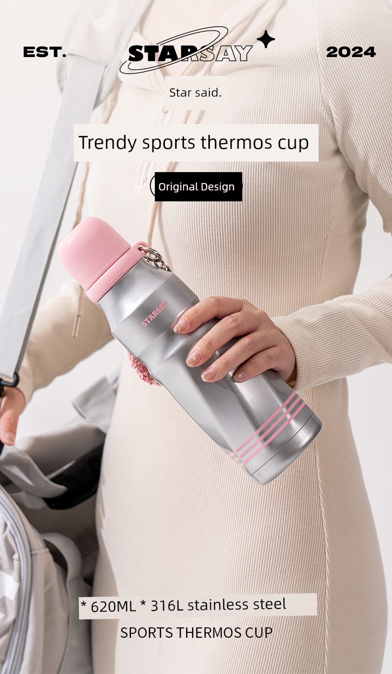Stay stylish and hydrated with our Trendy Stainless Steel Vacuum Cup, perfect for students and sports enthusiasts alike! Why you'll love it: - 620ml capacity keeps you hydrated all day. - Durable stainless steel construction for long-lasting use. - Sleek and modern design that fits any lifestyle. - Vacuum insulated to maintain beverage temperatures. - Ideal for on-the-go sipping, workouts, or school. This premium vacuum cup features a sleek stainless steel body that is not only trendy but also built to withstand everyday use. Its 620ml capacity makes it perfect for carrying your favorite drinks, whether hot or cold, ensuring you enjoy them at the perfect temperature throughout the day. Simply fill it with your beverage of choice, secure the lid, and you're ready to take it with you, whether you're heading to class, gym, or a weekend adventure. Grab yours today and elevate your hydration game!
