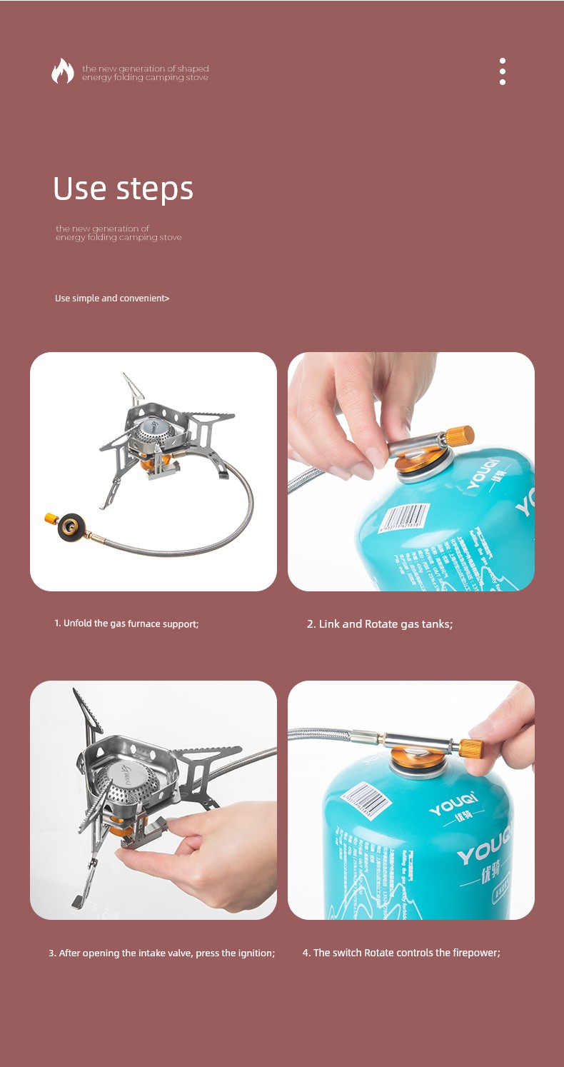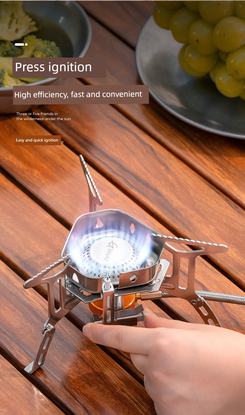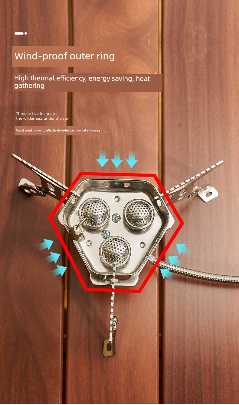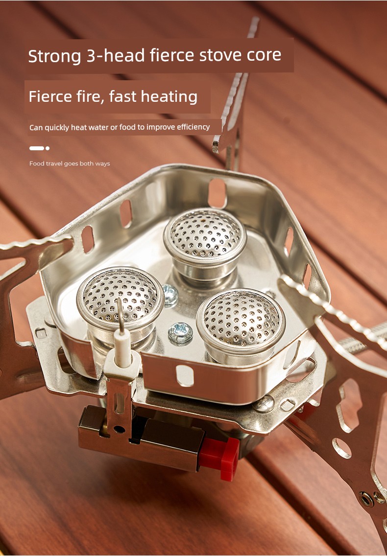 Elevate your outdoor cooking experience with our Windproof 3-Head Portable Gas Stove, designed for fierce fire and effortless boiling.Why you'll love it: - Powerful three-head design ensures efficient heating. - Windproof feature allows for stable cooking in any weather. - Compact and foldable for easy transport and storage. - Ideal for boiling water, making tea, or cooking meals on the go. - Made with premium quality materials for long-lasting performance.Perfect for camping, hiking, or backyard cooking, this stove delivers a robust flame to meet all your outdoor culinary needs. Its foldable design makes it a practical choice for enthusiasts who love to cook outdoors.Simply set up the stove on a flat surface, connect your gas canister, and ignite for instant flames. Enjoy the best camping meals and warm drinks whenever adventure calls!