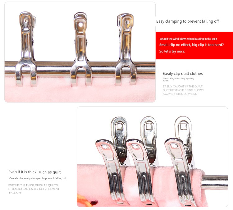 Hang with confidence using our Premium Windproof Stainless Steel Clothespins, designed for heavy-duty use. Why you'll love it: - Durable stainless steel construction for long-lasting use. - Large size offers a secure grip for quilts and heavy clothing. - Windproof design keeps your laundry secure, even on breezy days. - Rust-resistant finish ensures they stay looking new. - Versatile for both indoor and outdoor use. These large clothespins are perfect for securing quilts, clothes, and other laundry items during drying. Made from premium stainless steel, they’re designed to withstand the elements while providing a perfect fit for your needs. To use, simply clip onto your laundry to keep them securely in place while hanging. Ideal for both regular laundry days and those windy days when you need extra holding power. Don't miss out on keeping your laundry safe - grab yours today! Limited time offer!