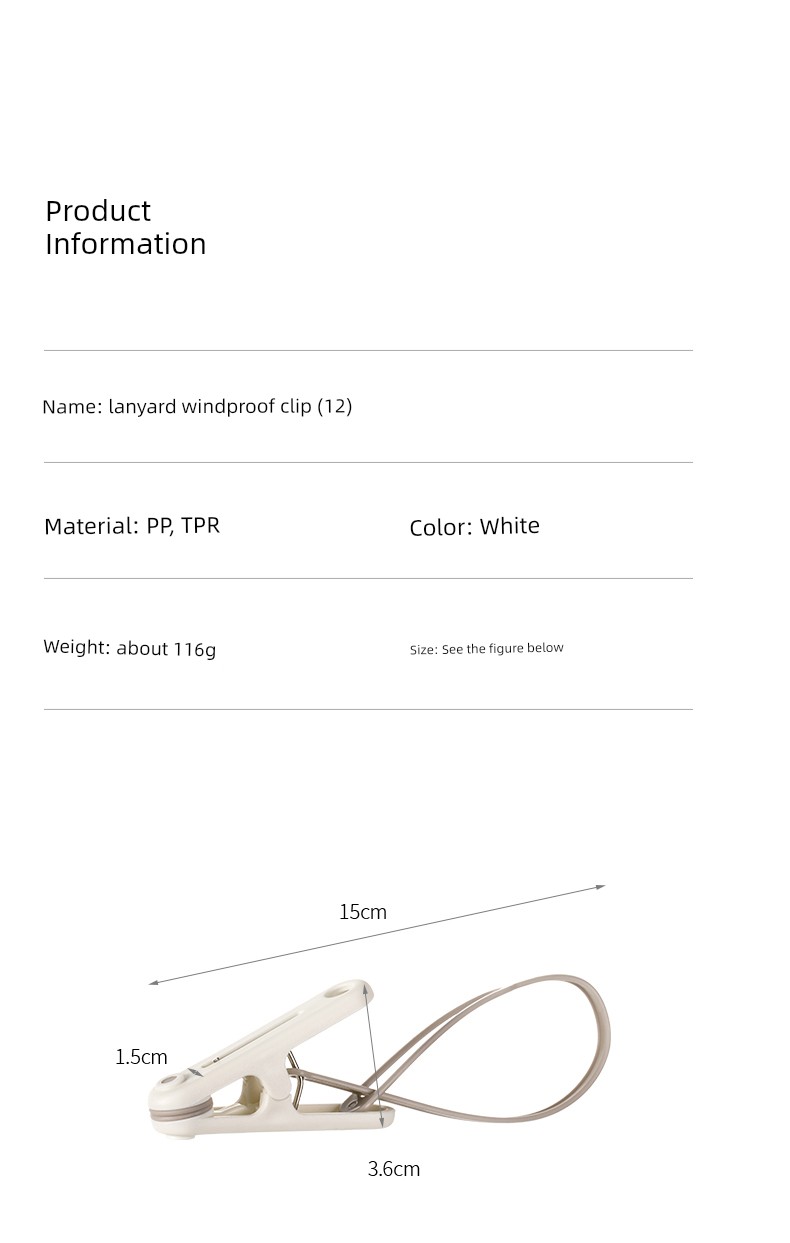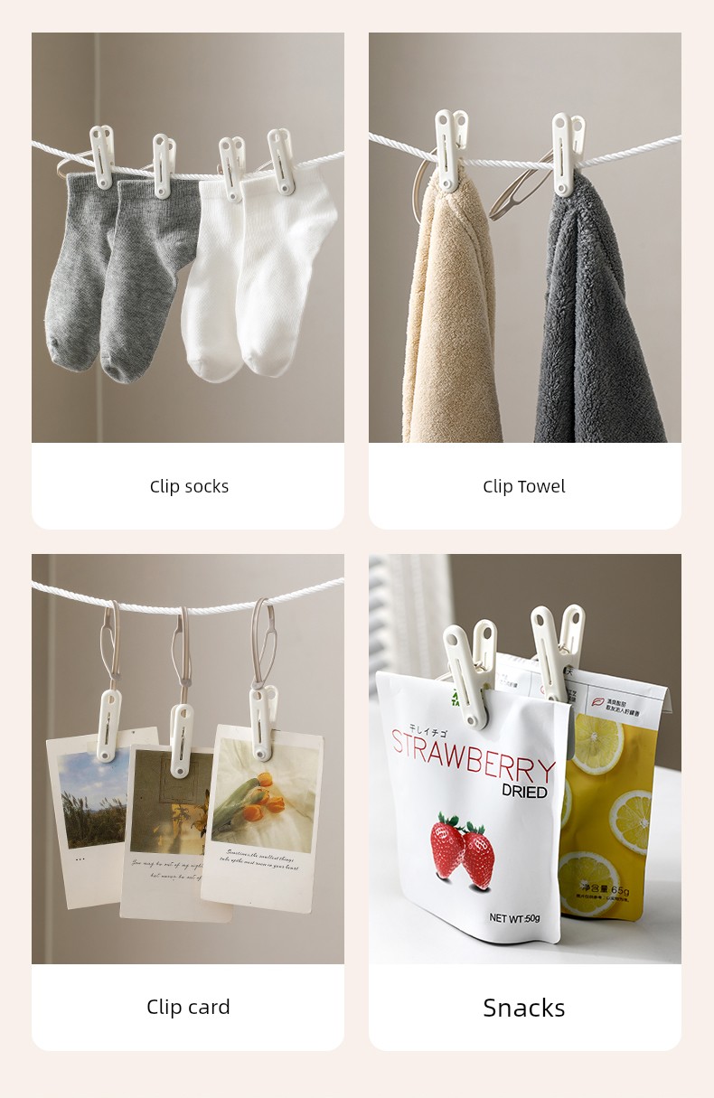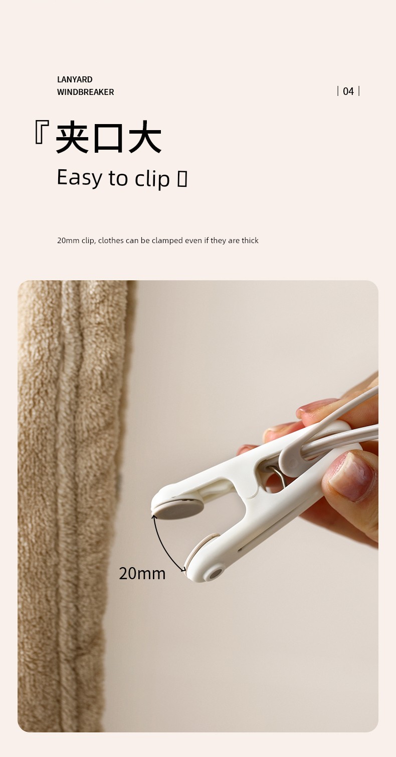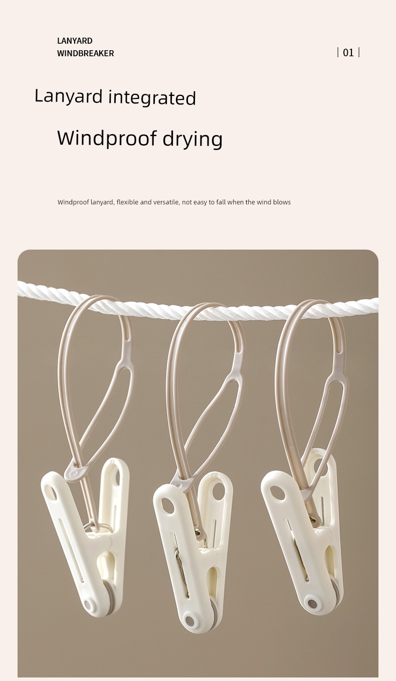 Keep your clothes secure anywhere with our Windproof Travel Clothespin Clips, the ultimate solution for hassle-free drying! Why you'll love it: - Innovative windproof design ensures clothes stay secure. - Versatile use, perfect for clothes, socks, and towels. - Compact and lightweight, ideal for travel on the go. - Durable plastic construction for long-lasting use. - Easy to use with a convenient lanyard hook feature. Made from premium high-quality plastic, these clothespin clips are built to withstand the elements, making them essential for outdoor use. Whether you're hanging clothes in your backyard or on a camping trip, these clips offer a perfect fit to keep all your items securely in place. Simply attach the clips to your clothes or fabric items and hang them on a line or rope for a worry-free drying experience, no matter where your adventures take you. Don’t miss out on these must-have travel essentials – grab yours now!