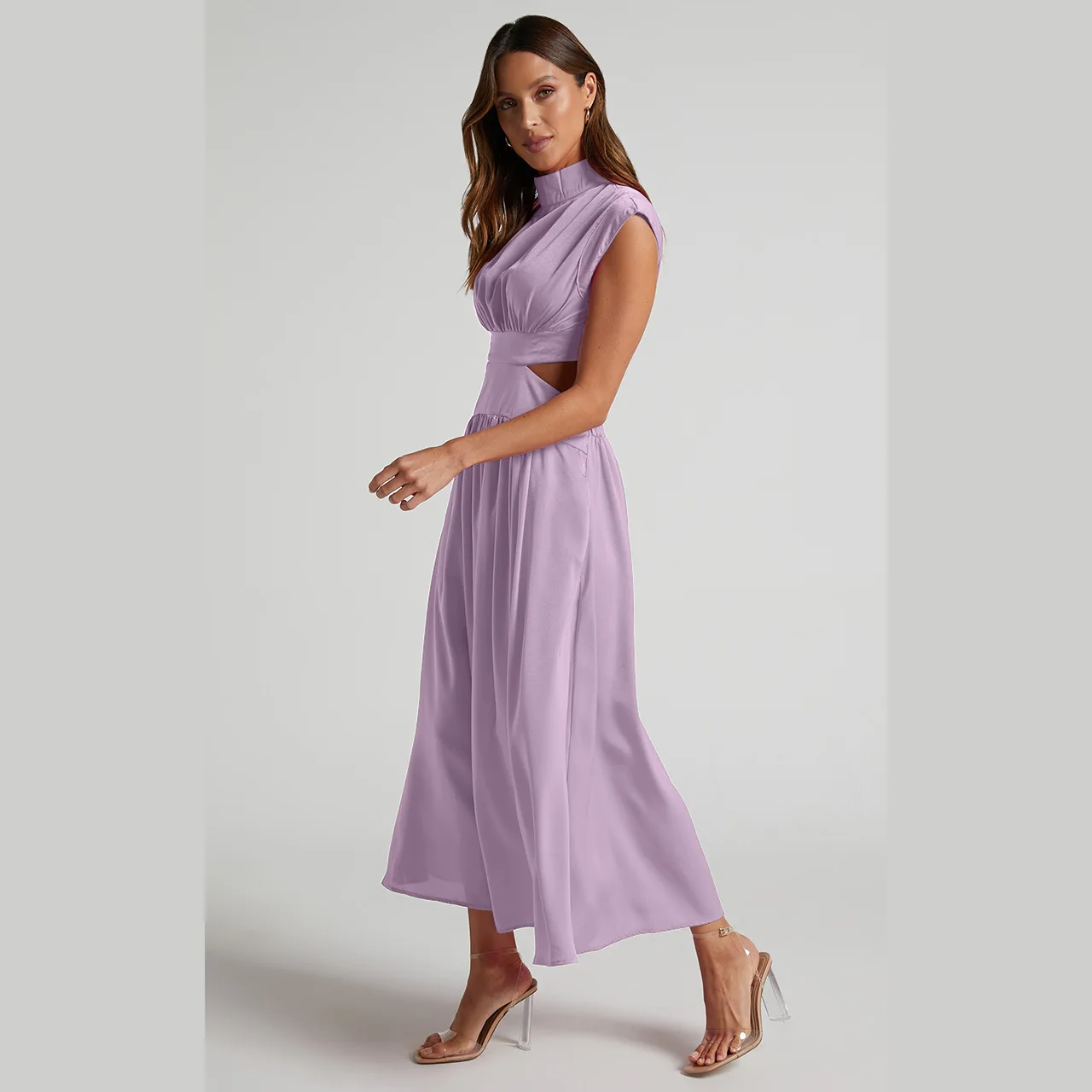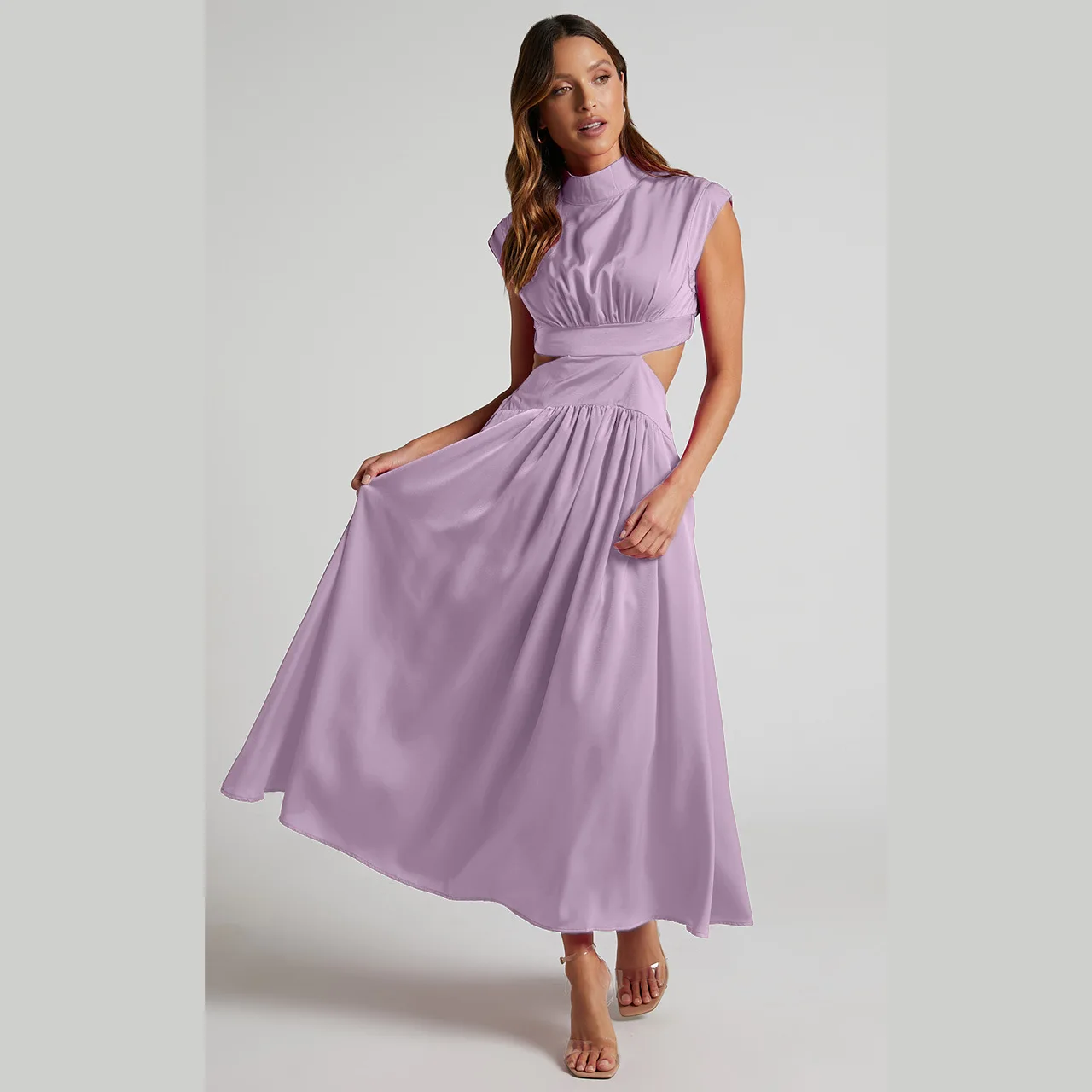 Women Dress Summer 2024 New Green Sleeveless A-LINE Backless Shirring Long Dress Trendy Elegant Maxi Dress for Women Beach