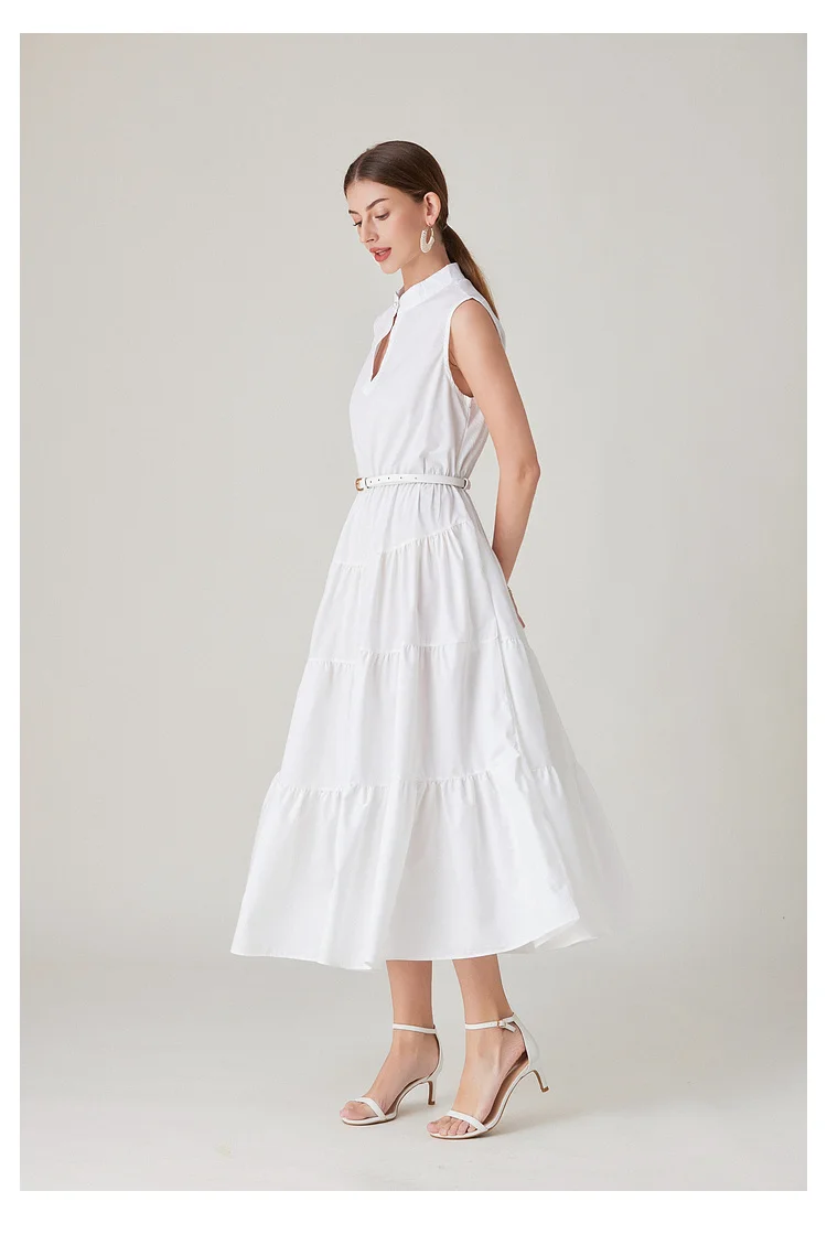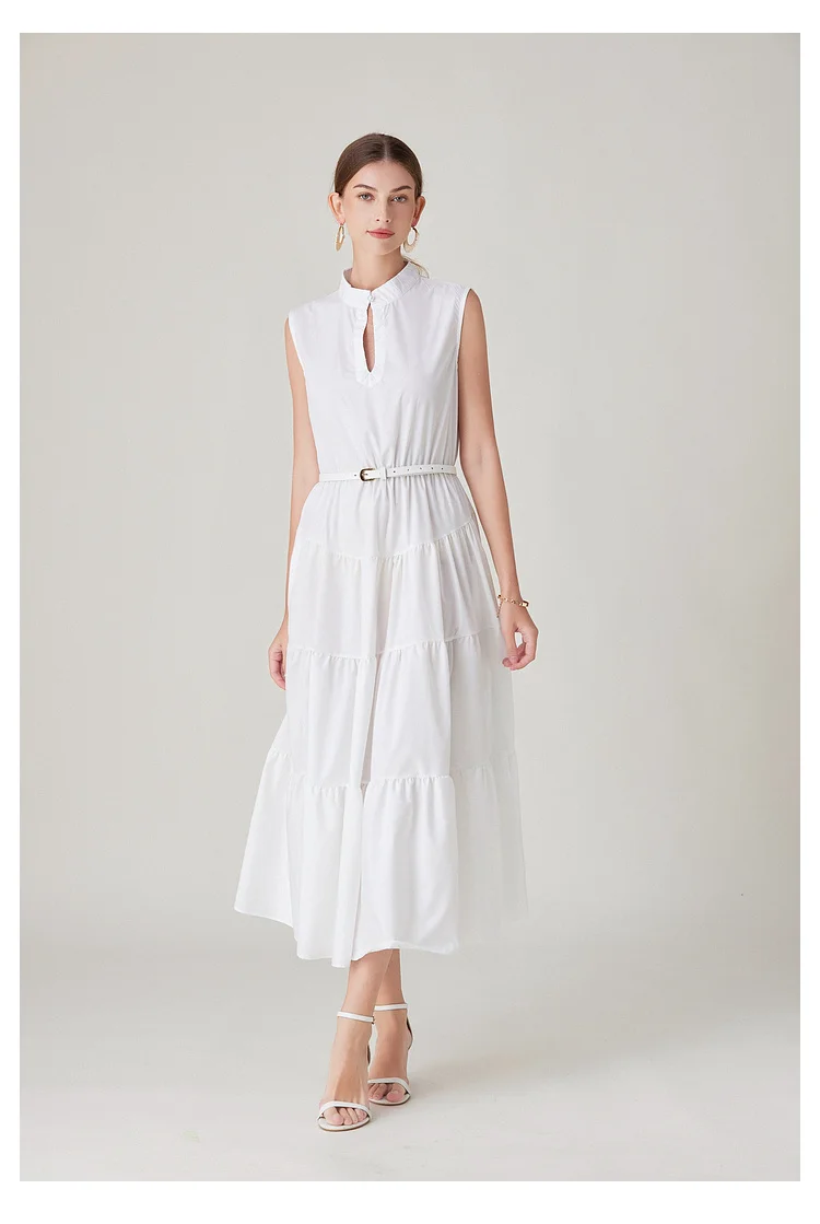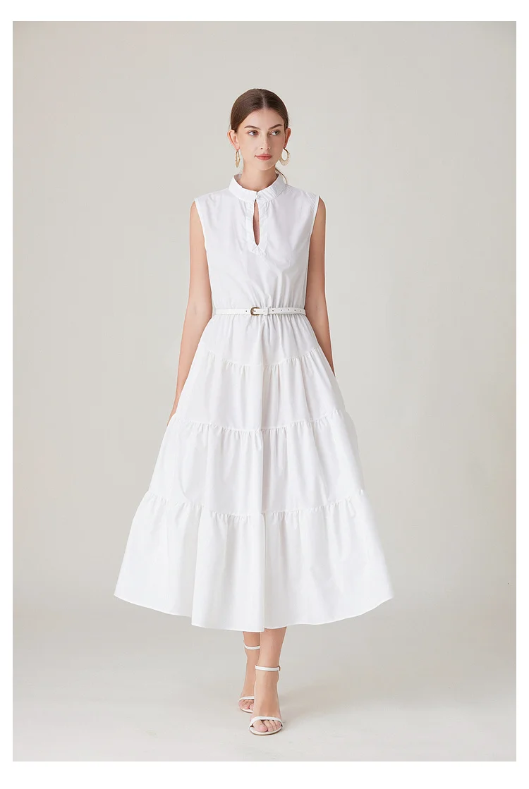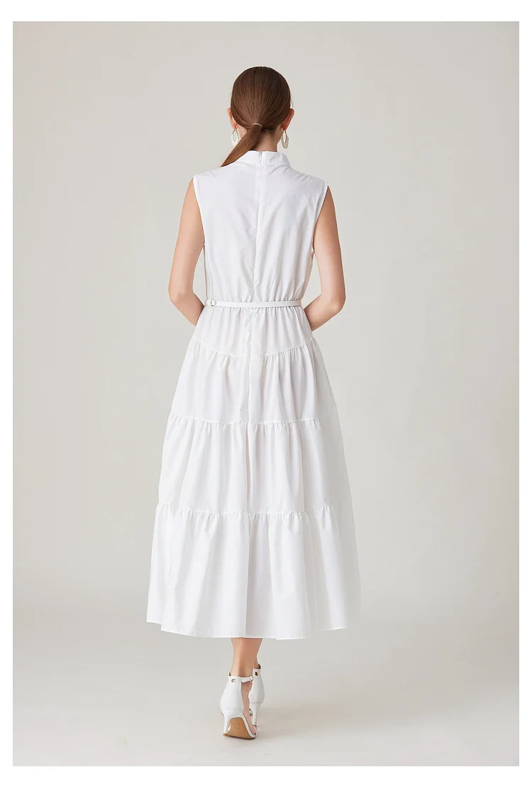 Women Sleeveless Long Dress 2024 Summer Elegant Casual Slim A-LINE White Black Dress