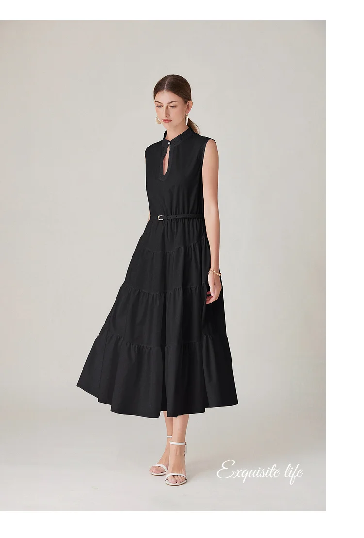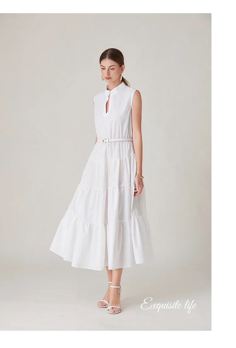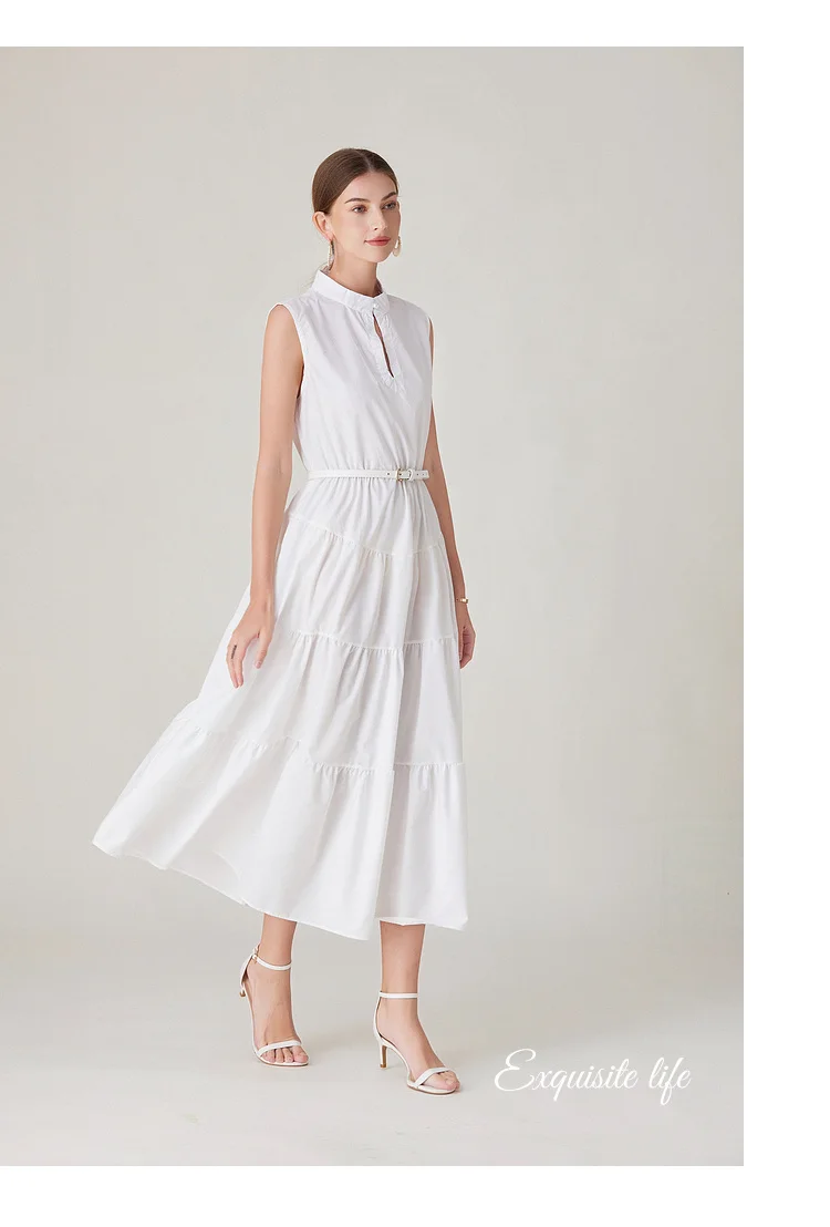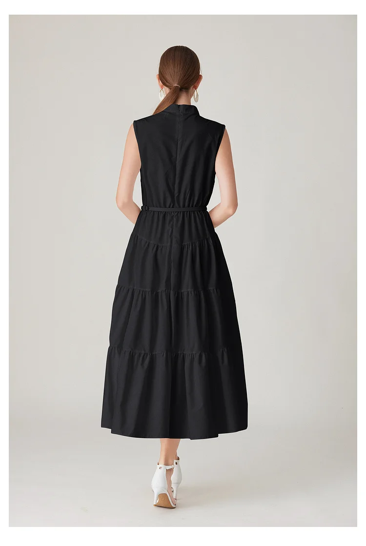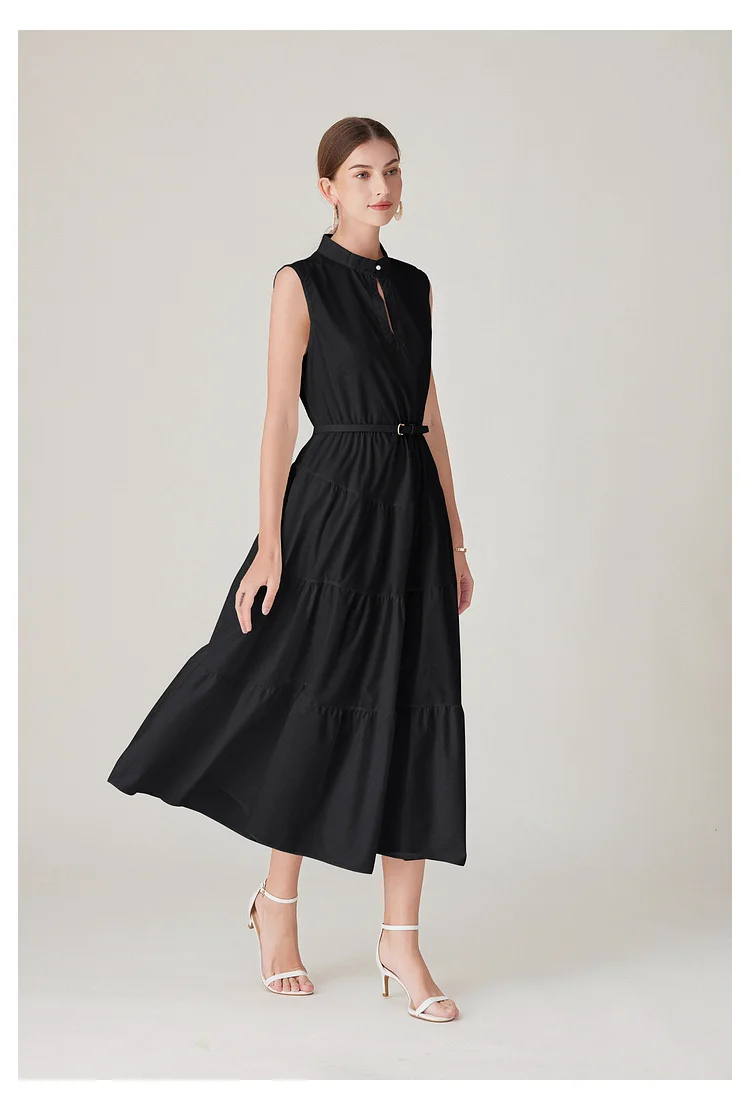 Women Sleeveless Long Dress 2024 Summer Elegant Casual Slim A-LINE White Black Dress