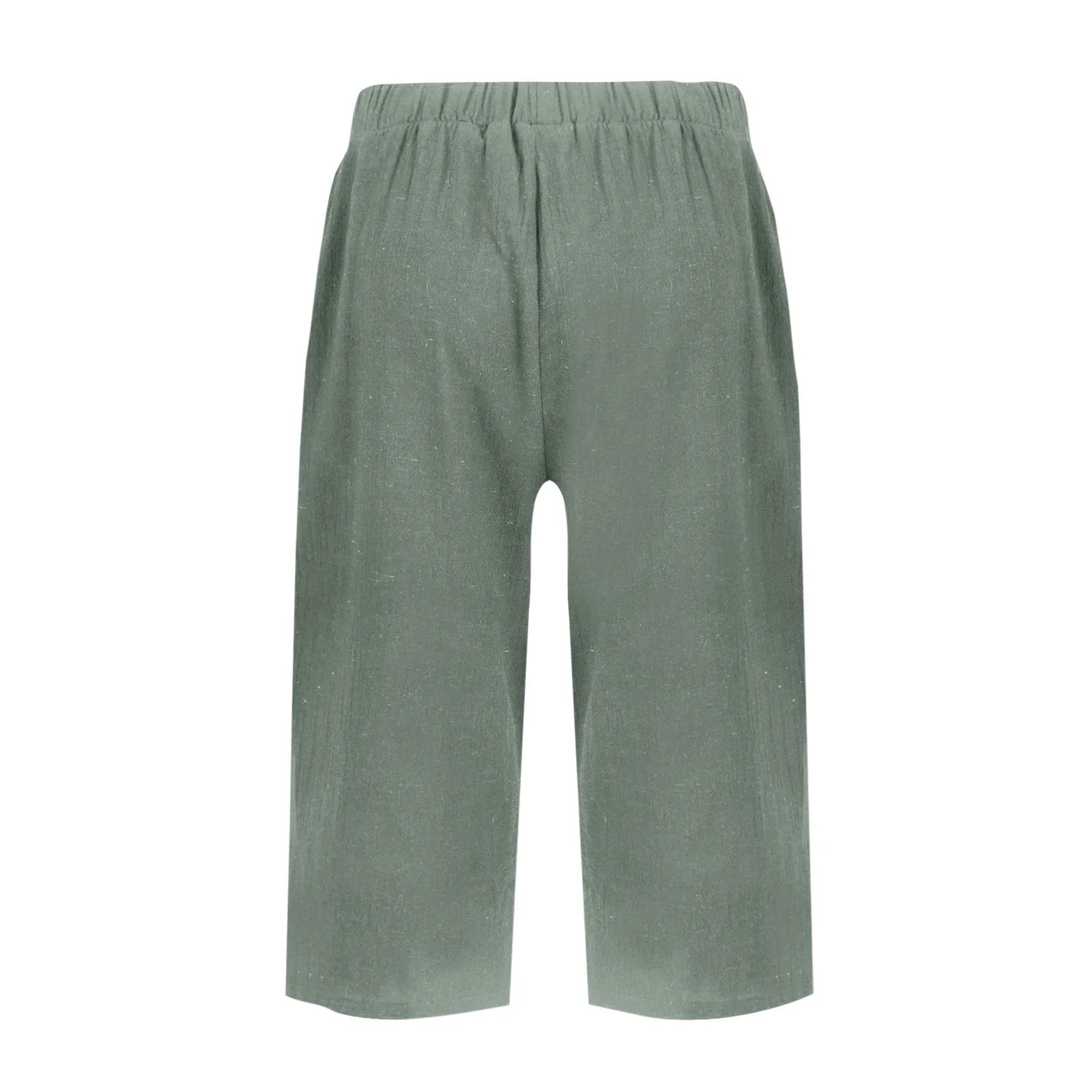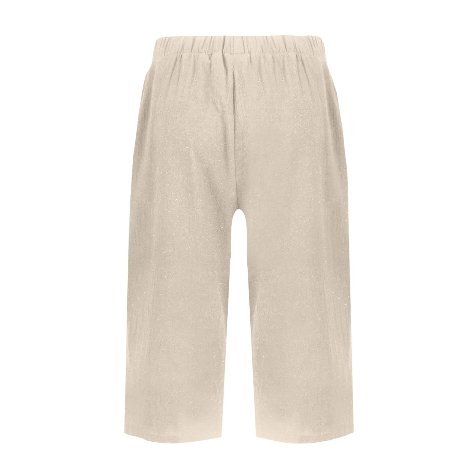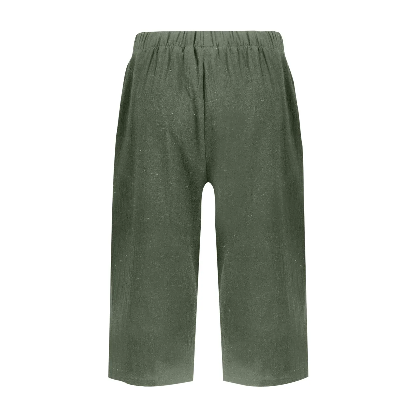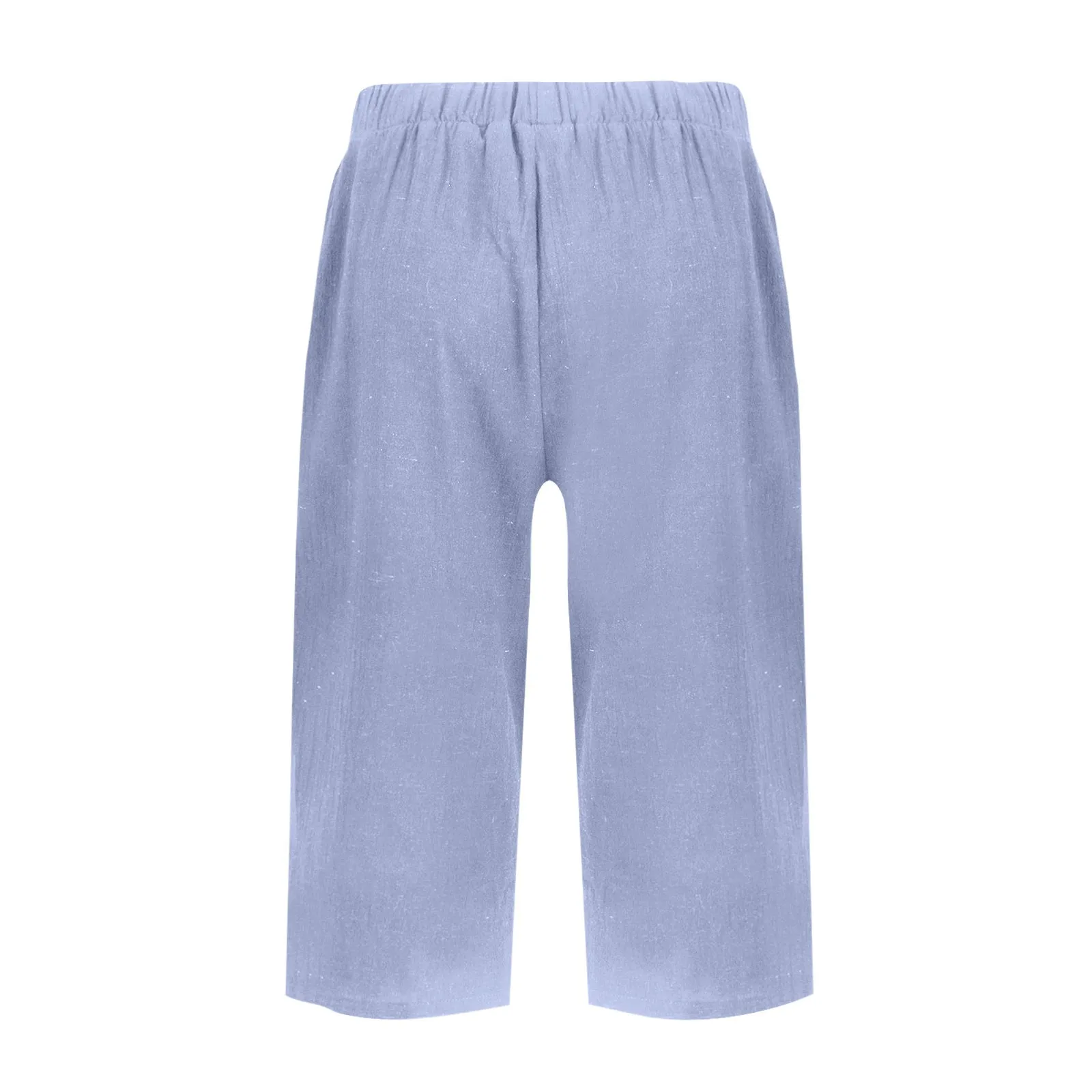 Womens Capris Cotton Linen Pants Drawstring Elastic Waist Pants Casual Cropped Trousers Daily Breeches Five Half Pants Pantalone