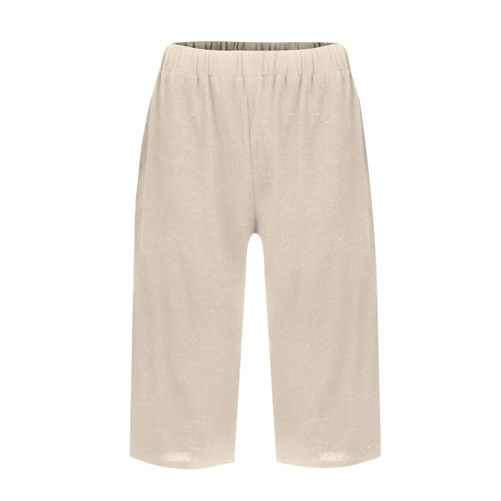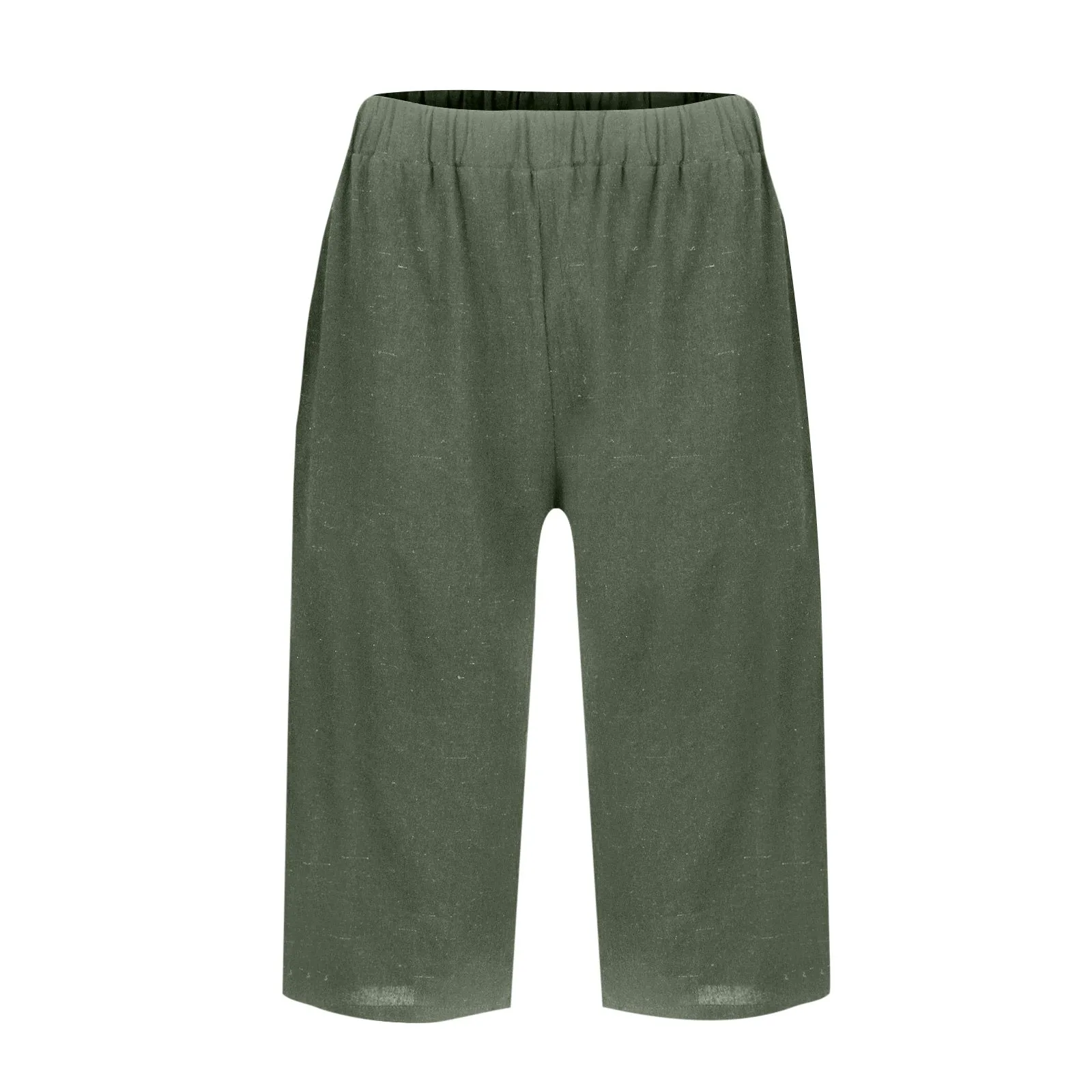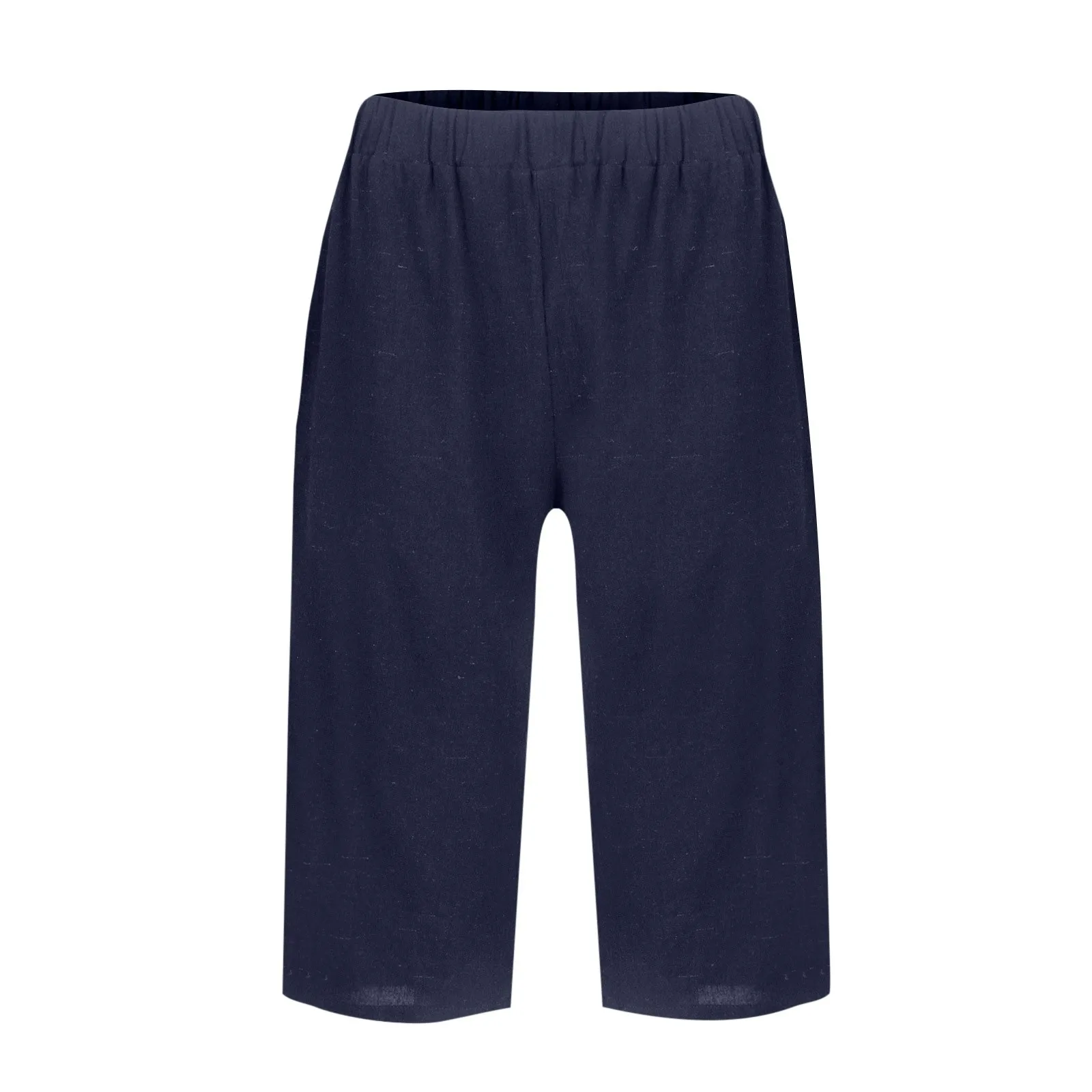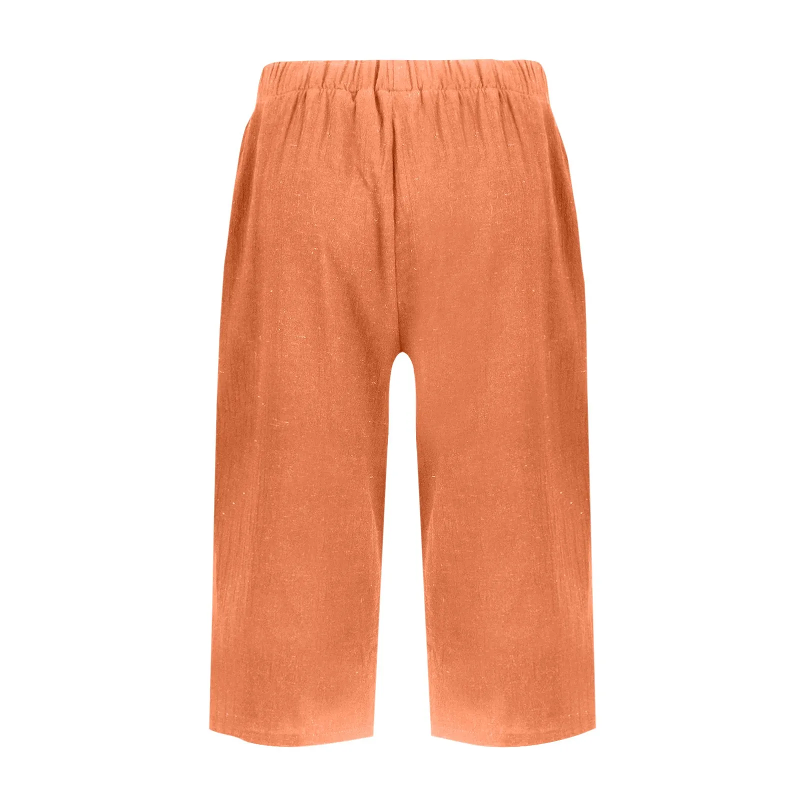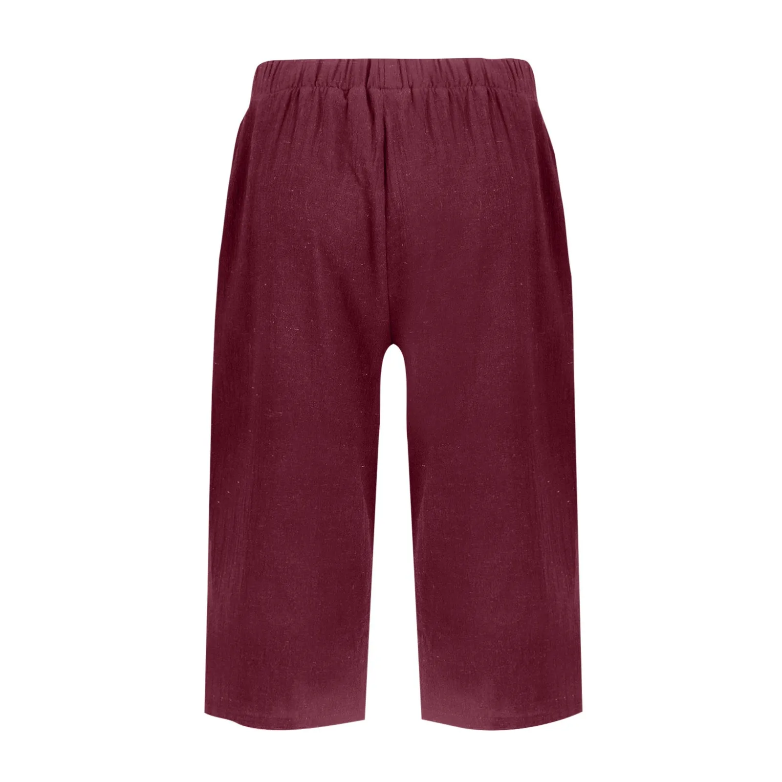 Womens Capris Cotton Linen Pants Drawstring Elastic Waist Pants Casual Cropped Trousers Daily Breeches Five Half Pants Pantalone