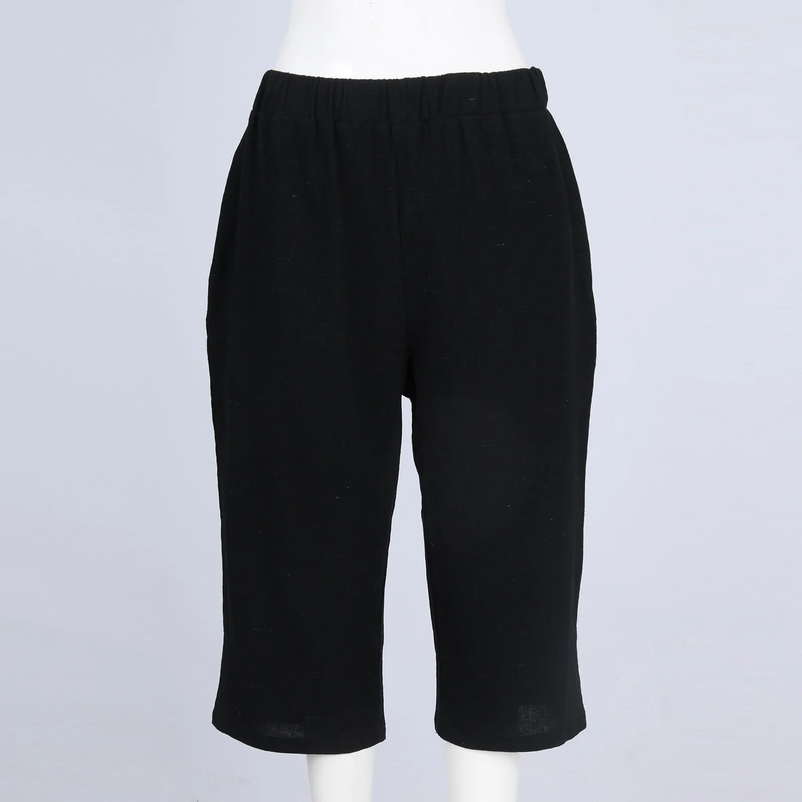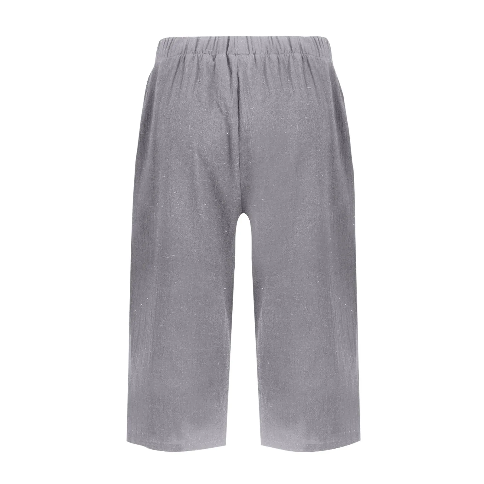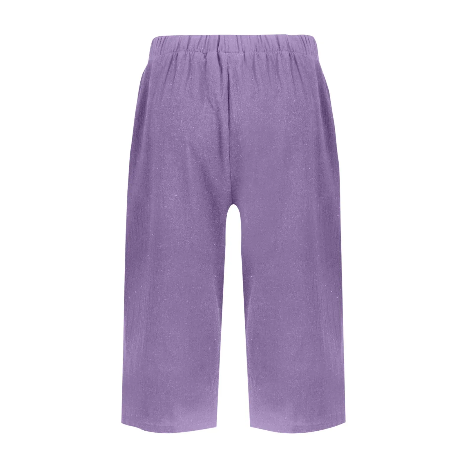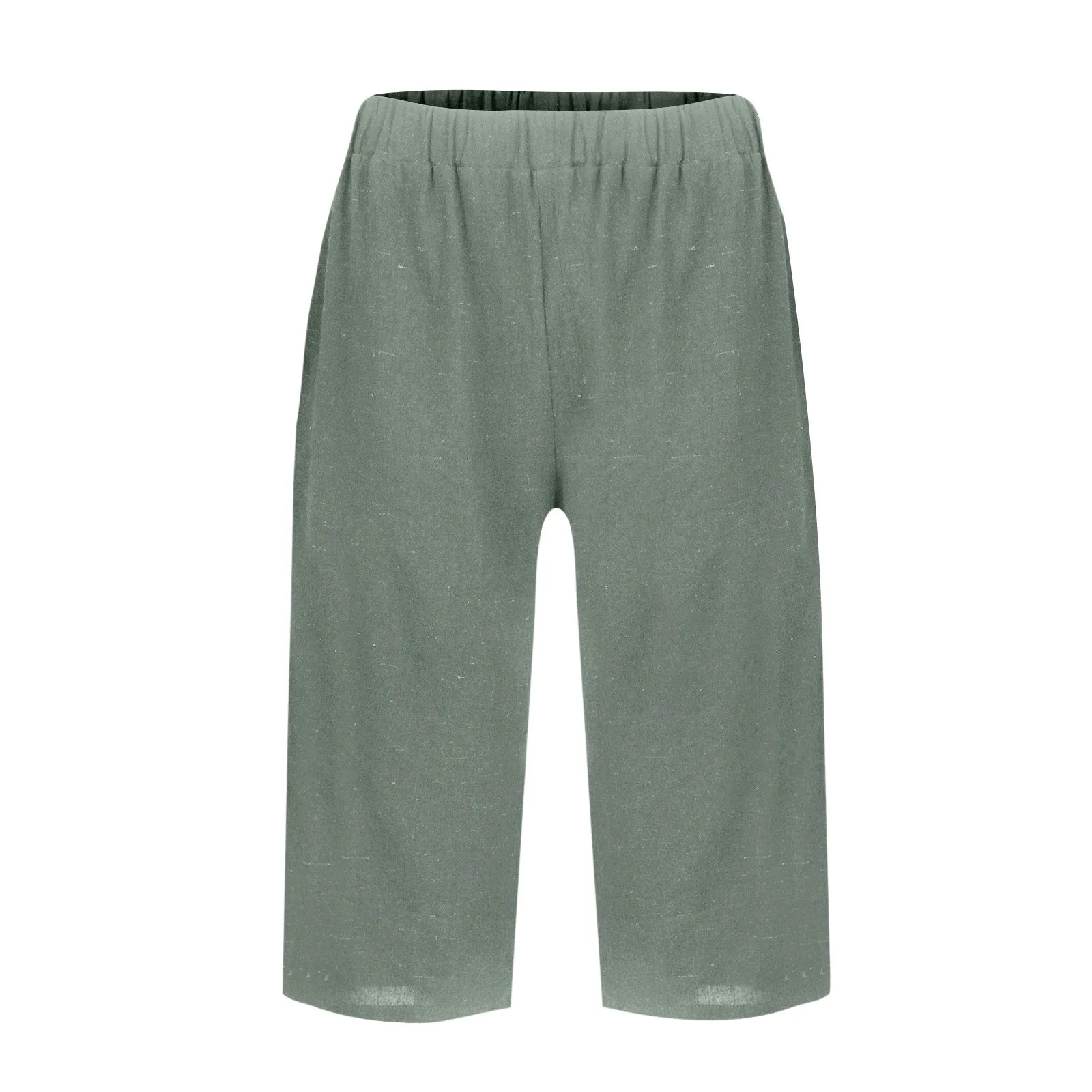 Womens Capris Cotton Linen Pants Drawstring Elastic Waist Pants Casual Cropped Trousers Daily Breeches Five Half Pants Pantalone