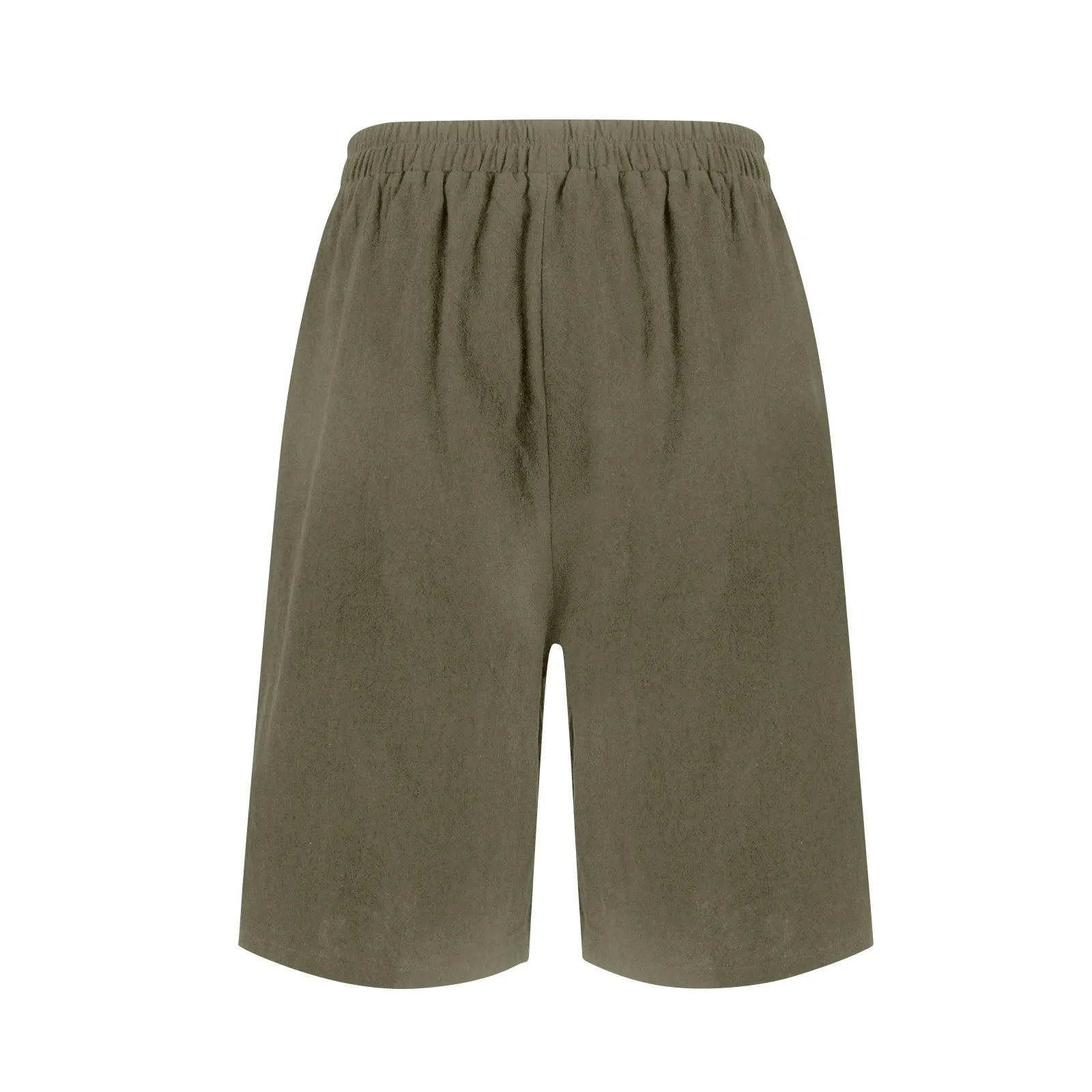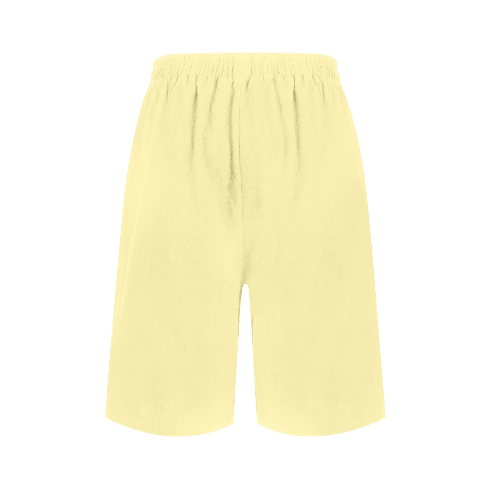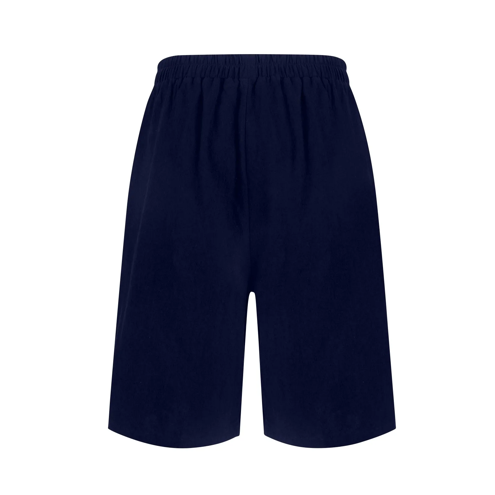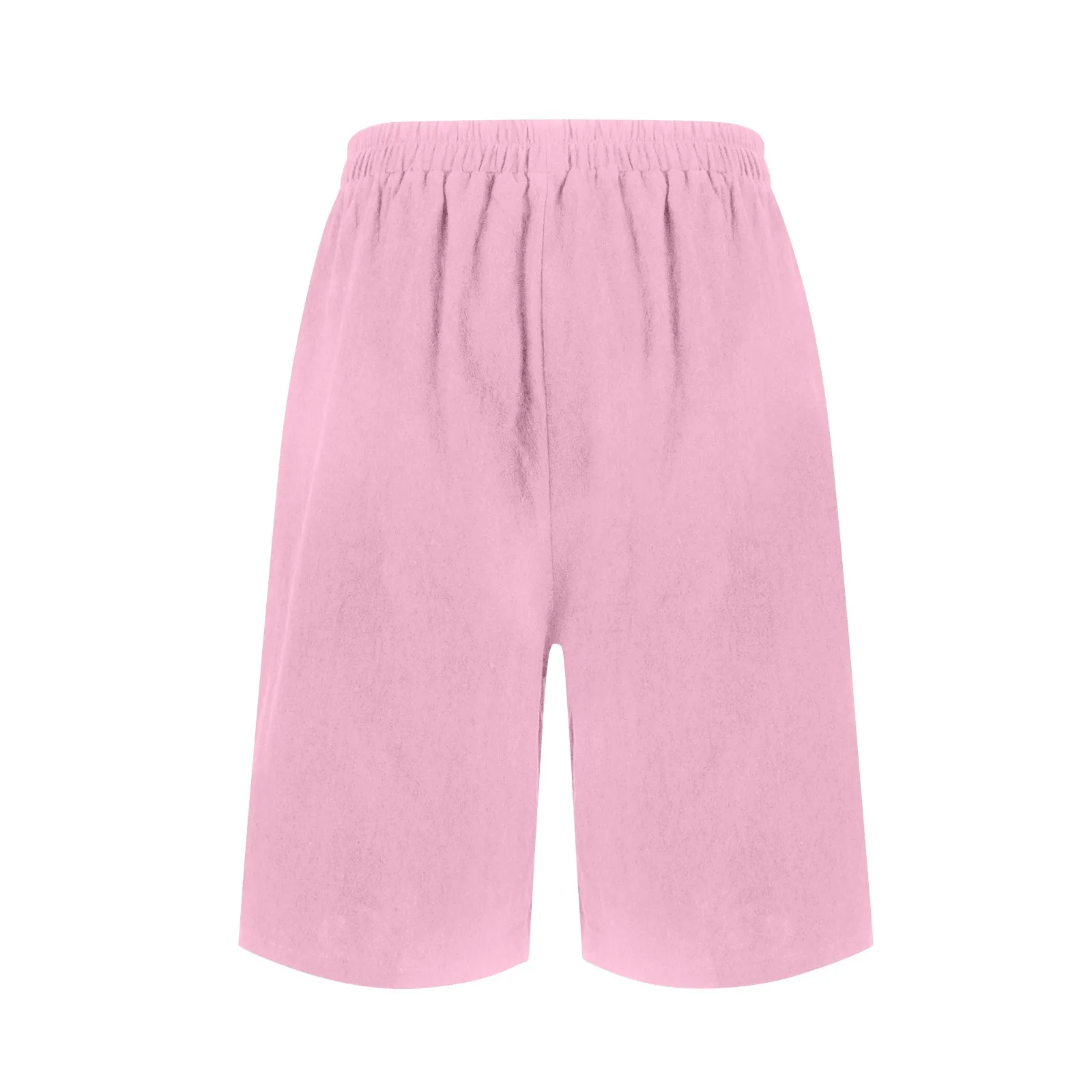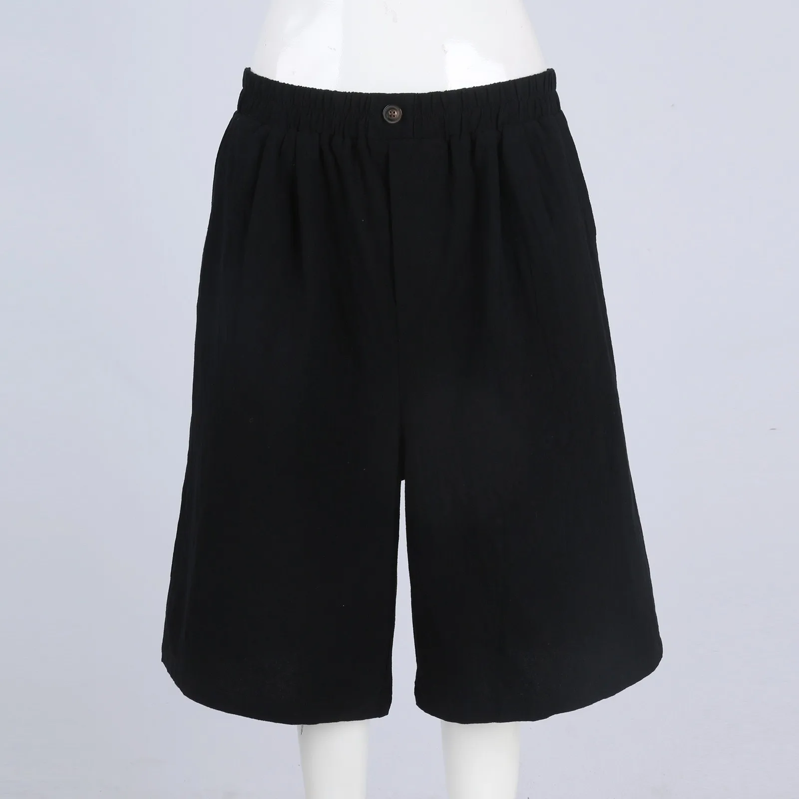 Women's Fashion Solid Color Pants Pocket Button Up Capris Loose Elastic Waist Cotton Linen Shorts
