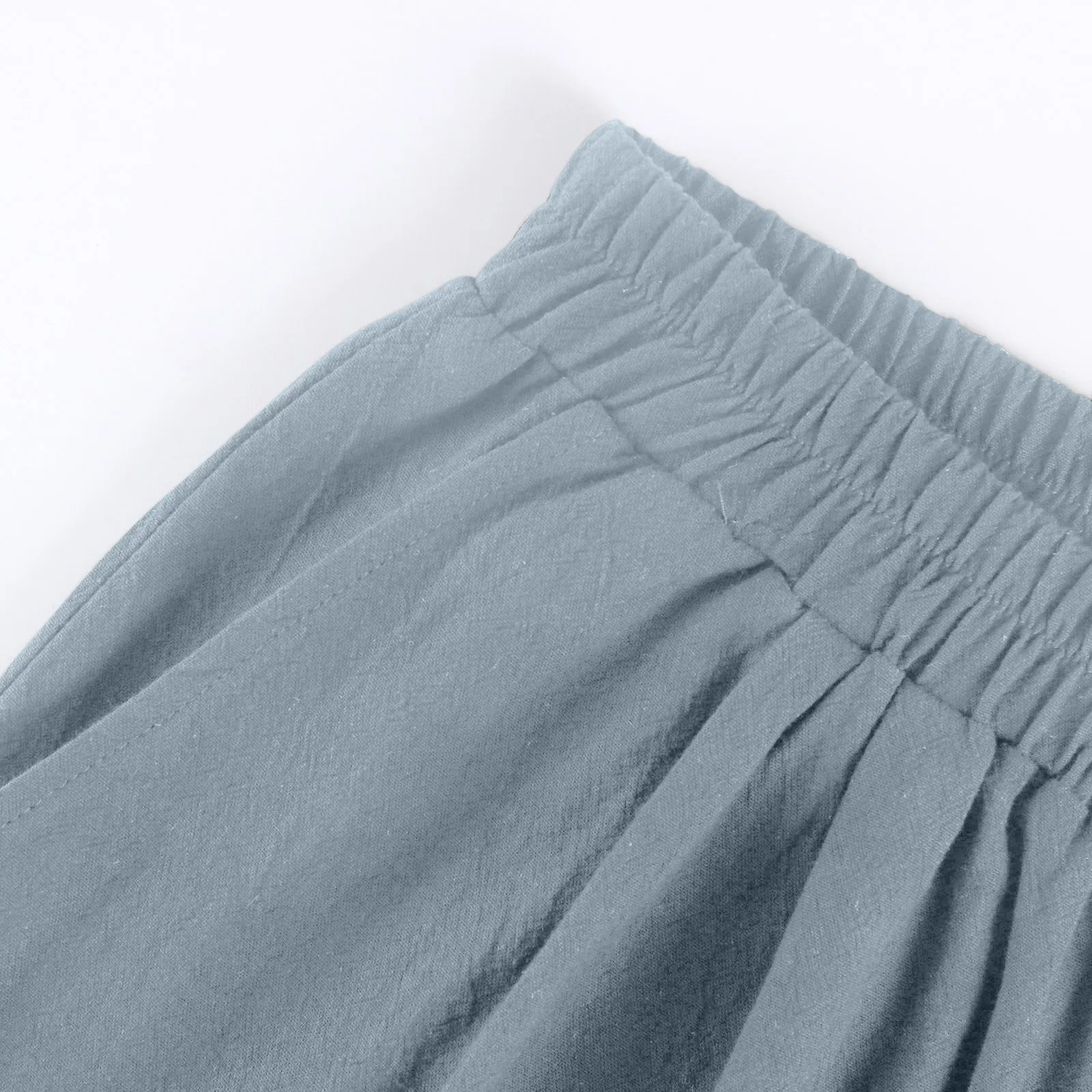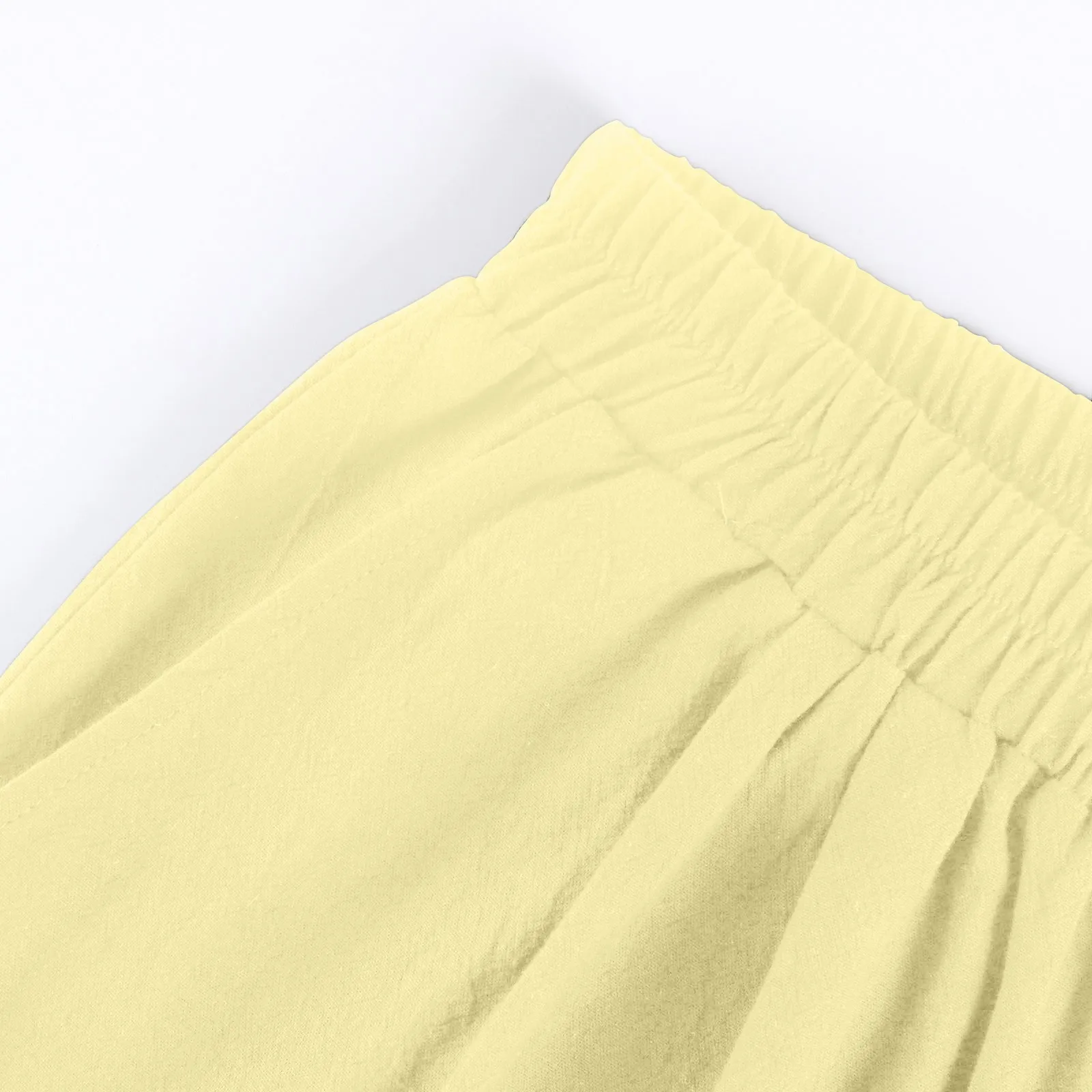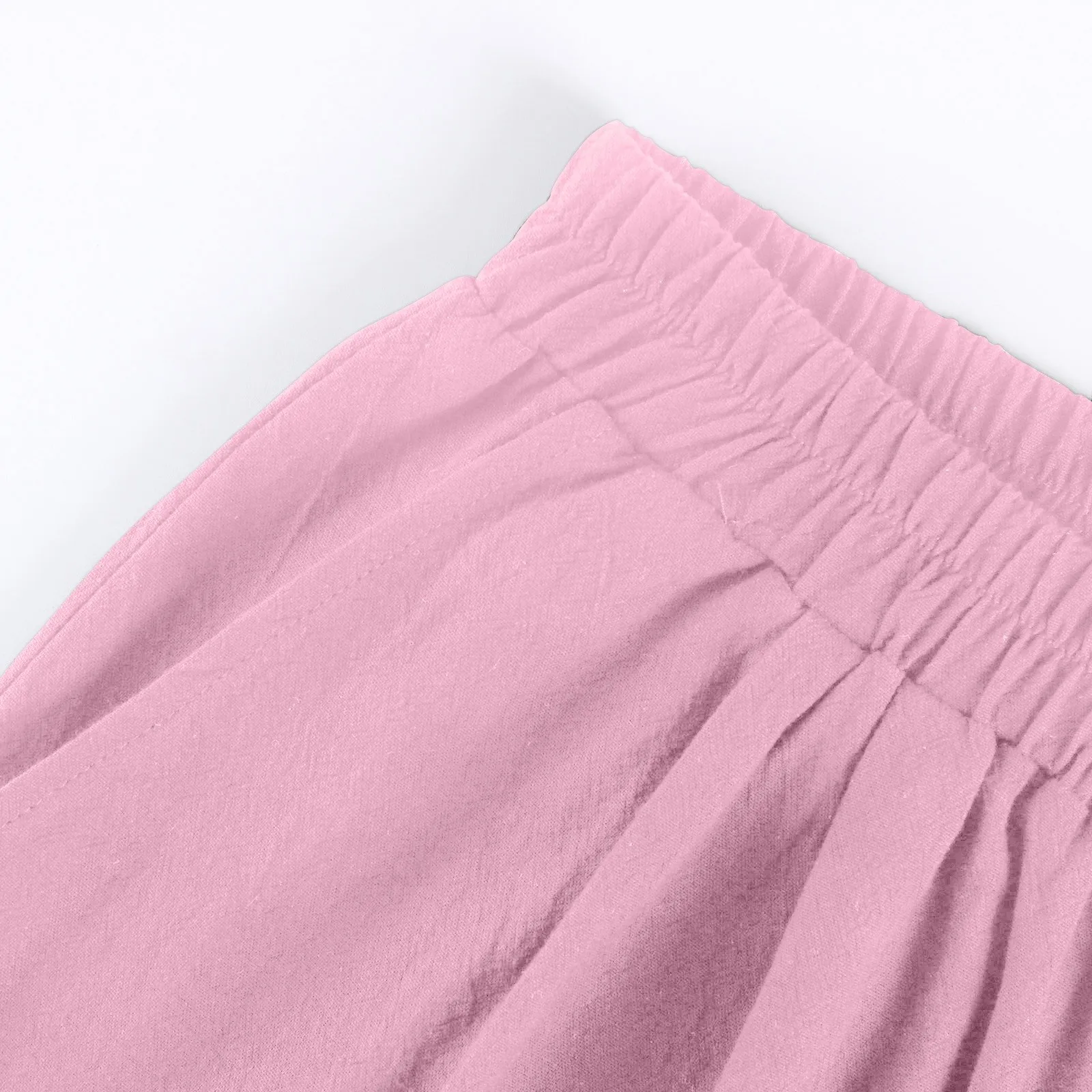 Women's Fashion Solid Color Pants Pocket Button Up Capris Loose Elastic Waist Cotton Linen Shorts Pants for Women Women’s Pants