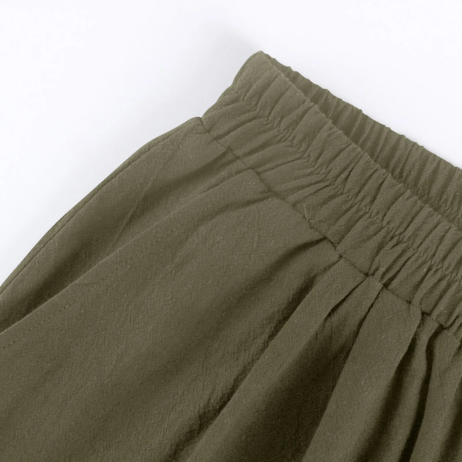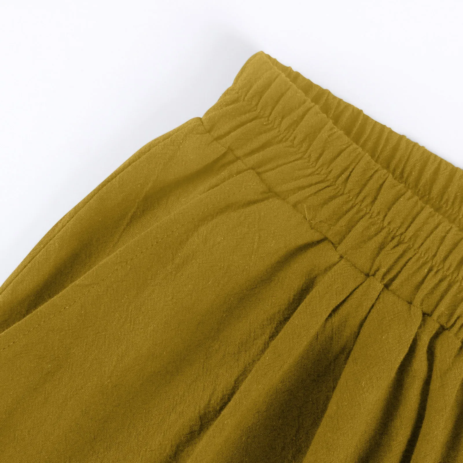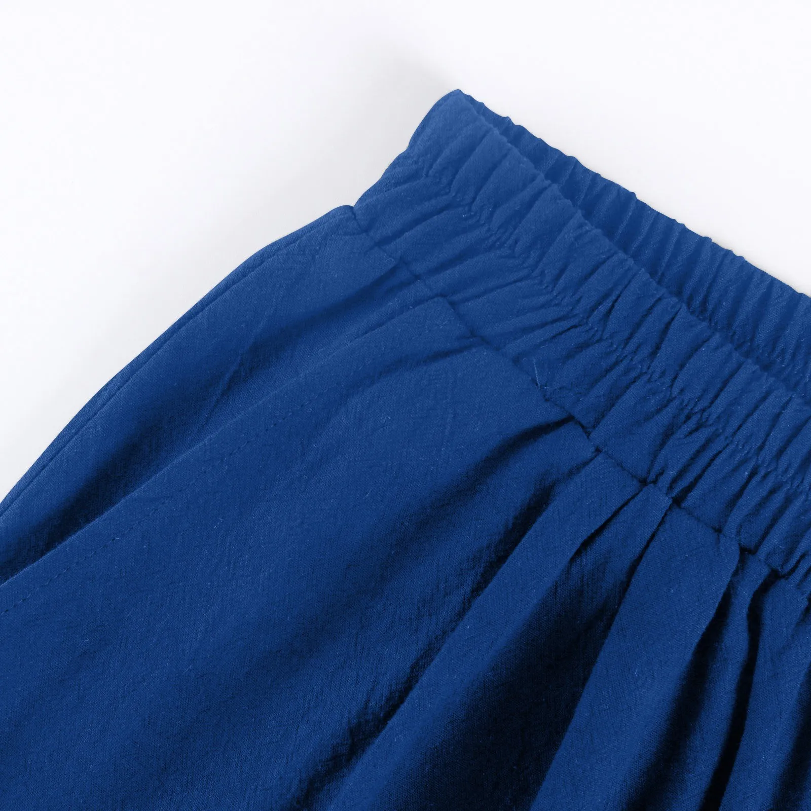 Women's Fashion Solid Color Pants Pocket Button Up Capris Loose Elastic Waist Cotton Linen Shorts Pants for Women Women’s Pants