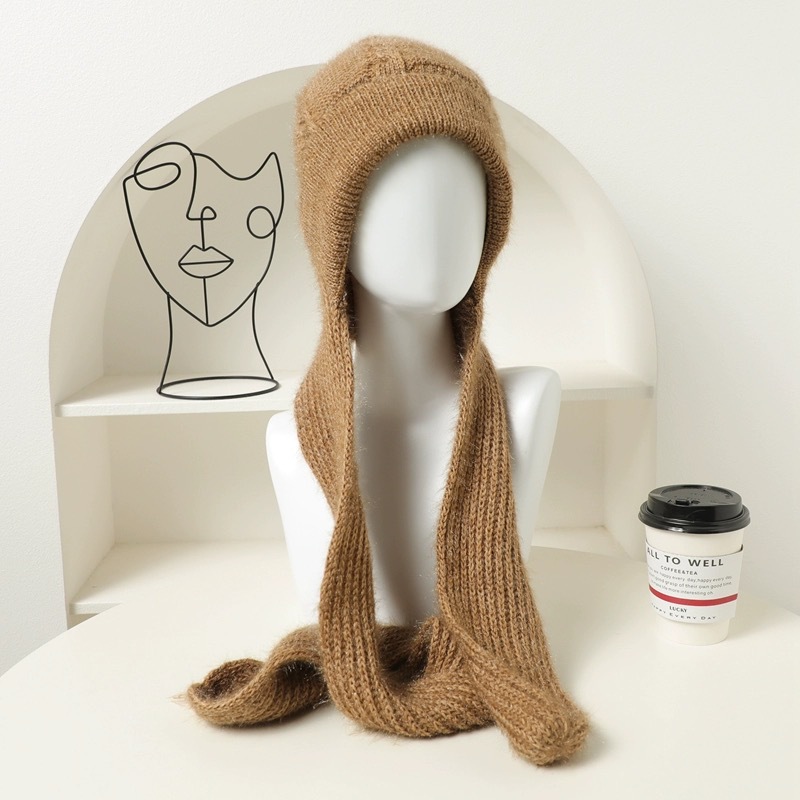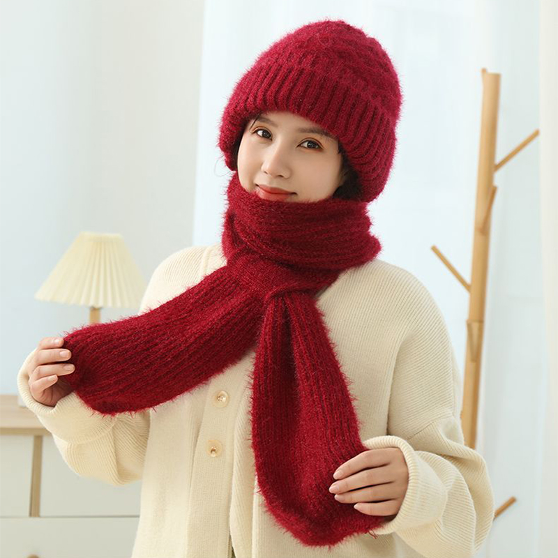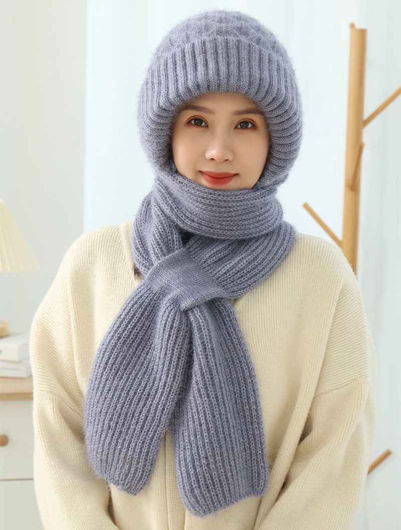 Women's Fleece-lined Scarf And Hat Winter Warm Knitted Hat Scarf