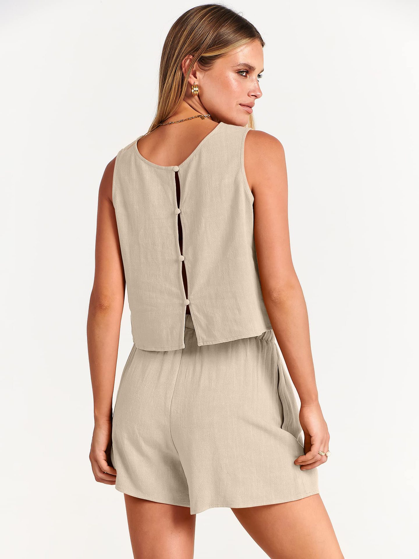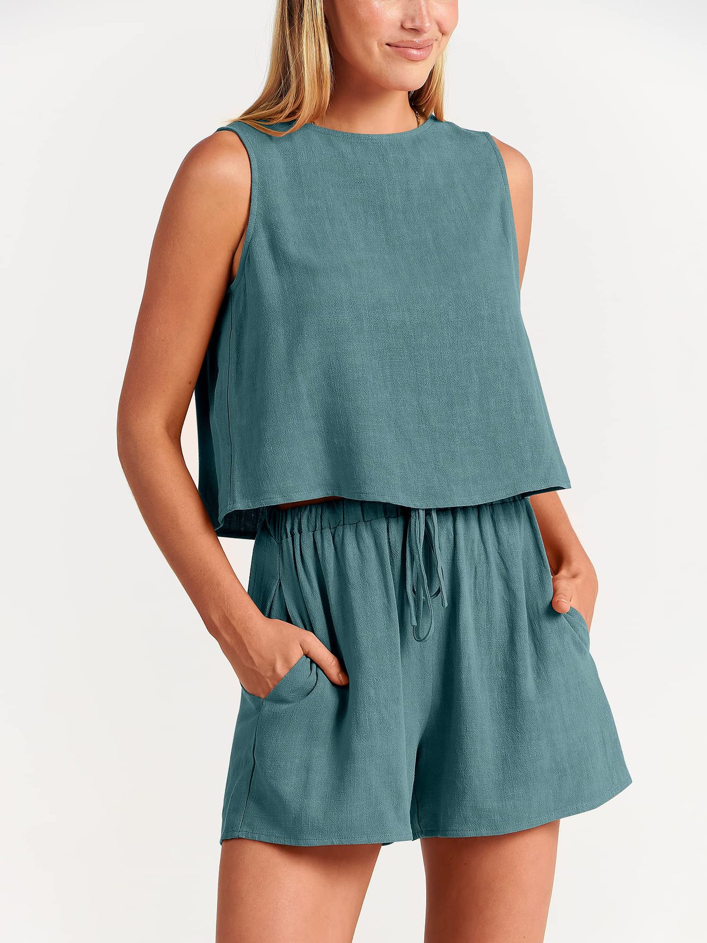 Women's Set Summer Sleeveless Tops And Drawstring Shorts Fashion Suit 2pcs